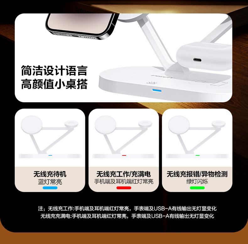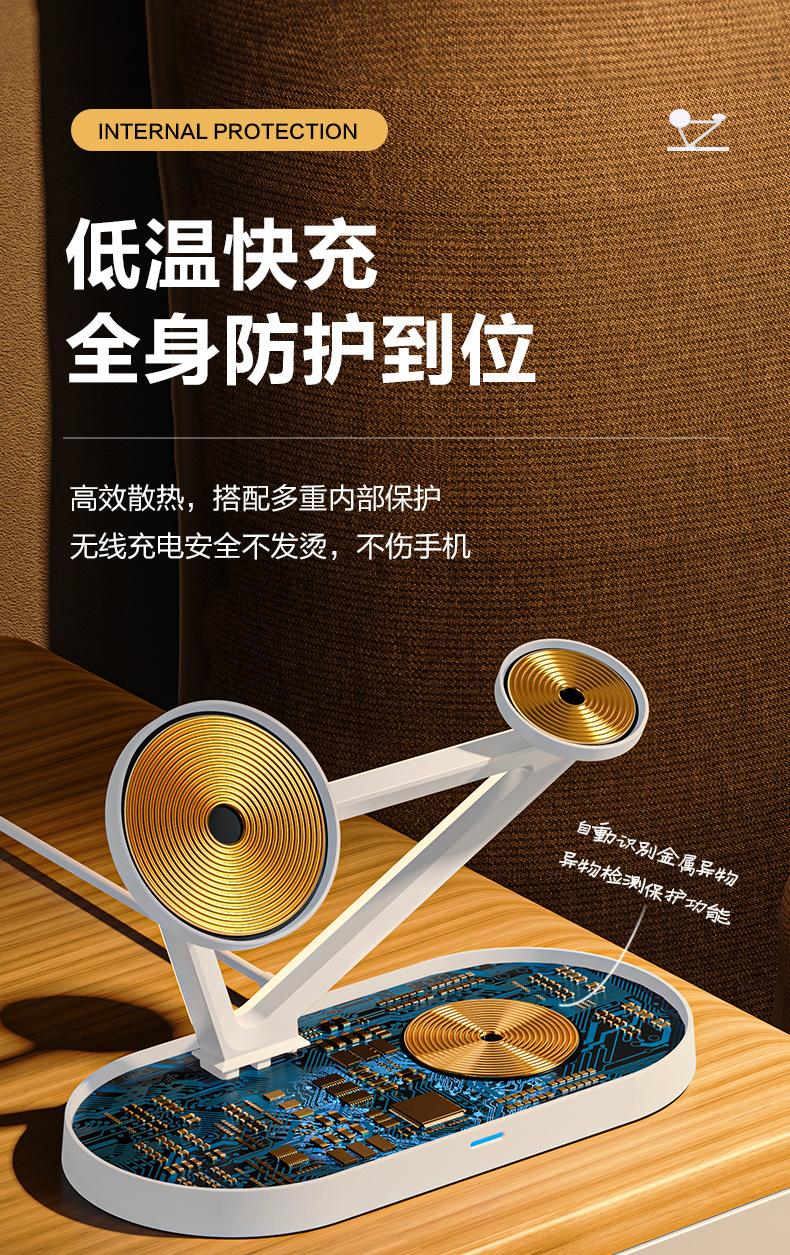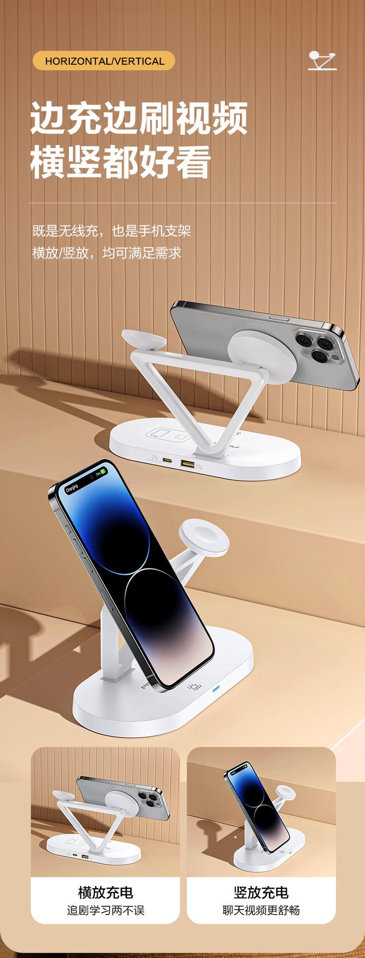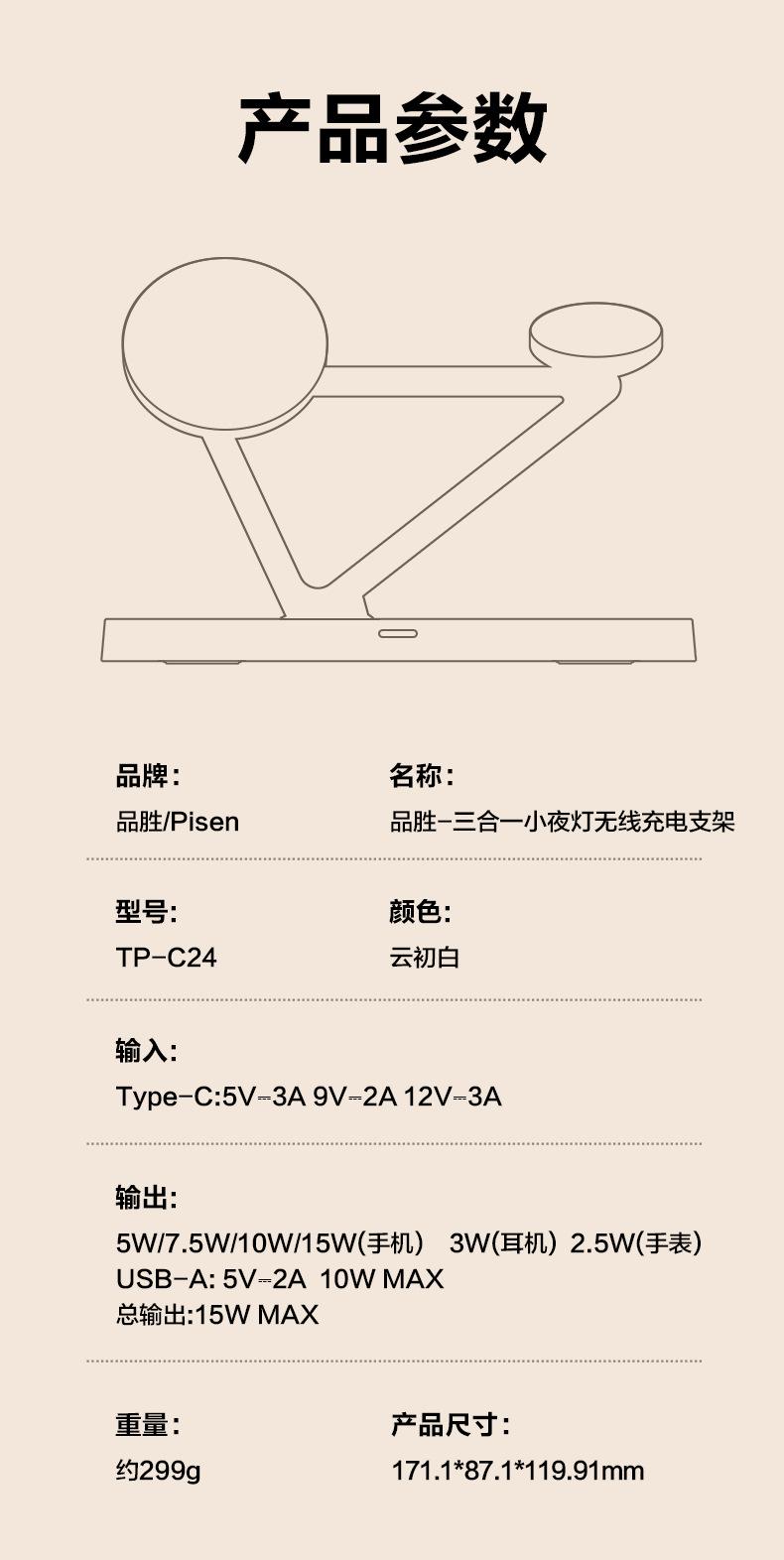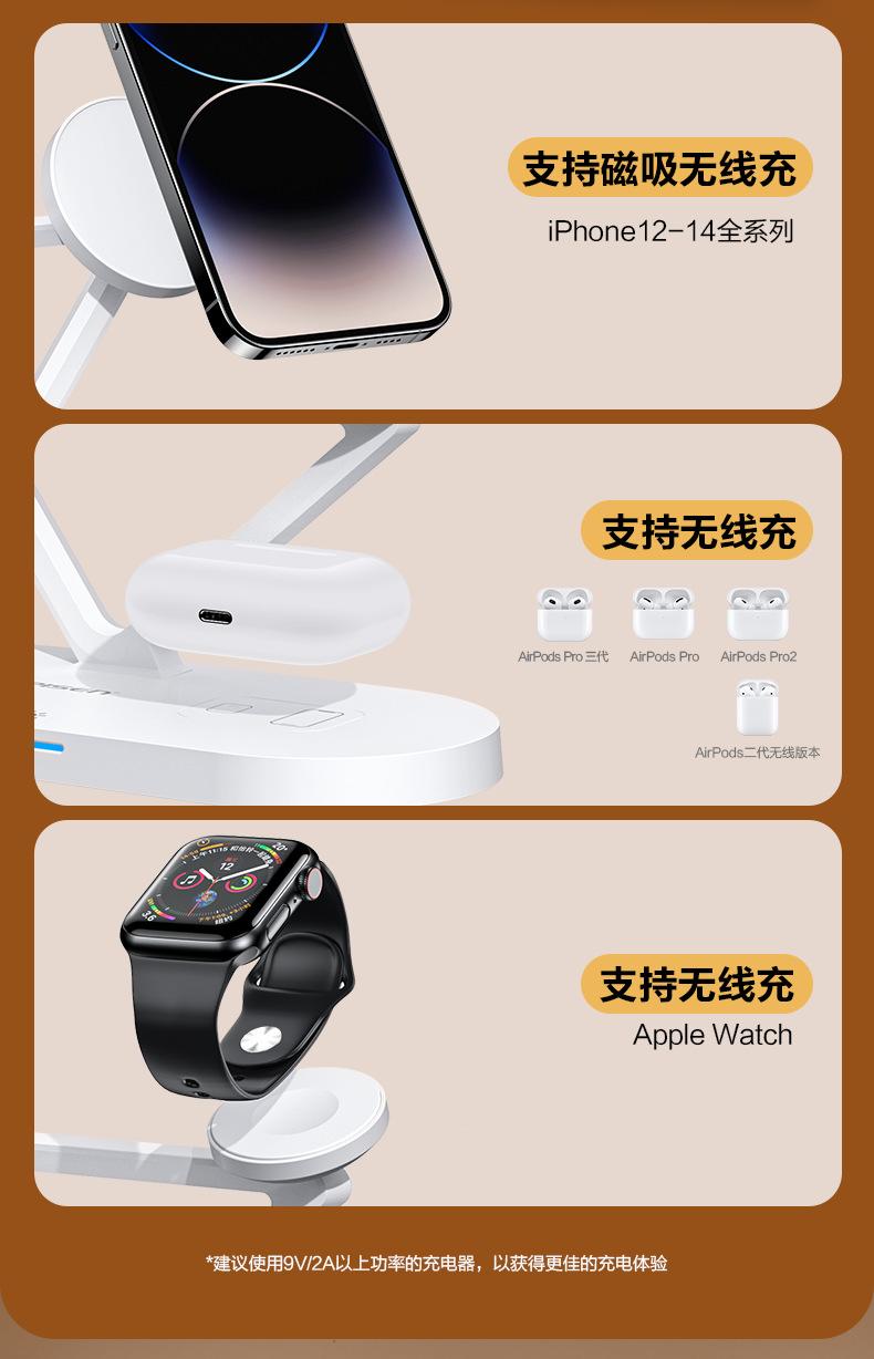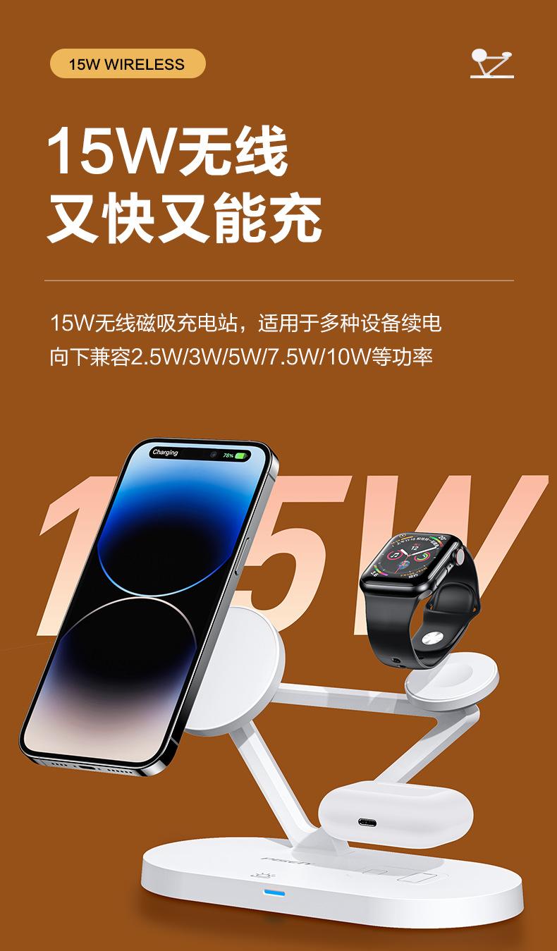 Cargador inalámbrico Pinsheng de 15 W, carga rápida magnética tres en uno para teléfono móvil Apple, reloj, auriculares, soporte de luz nocturna