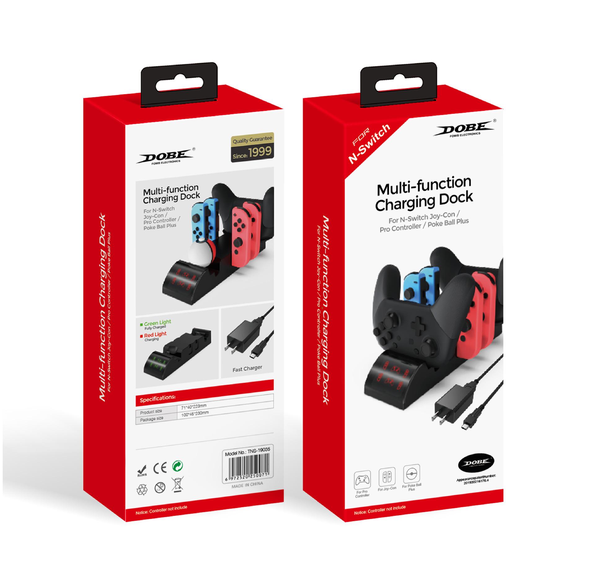 La base de carga multifunción para Switch es una base de carga utilizada para cargar los mandos pequeños Switch (JOY-Con) L/R + el mando PRO o la poké ball; puede cargar cuatro mandos pequeños Switch (JOY-Con) L/R + dos mandos PRO o dos poké balls al mismo tiempo, y las luces LED rojas y verdes se utilizan para indicar durante la carga; se utiliza la tecnología de circuito de microcontrol inteligente para gestionar la salida, y la eficiencia de conversión en la carga es alta; la decoración del producto es única y creativa, la apariencia es exquisita, y es simple de usar y fácil de entender; por lo tanto, la base de carga multifunción para Switch es una necesidad para los jugadores.