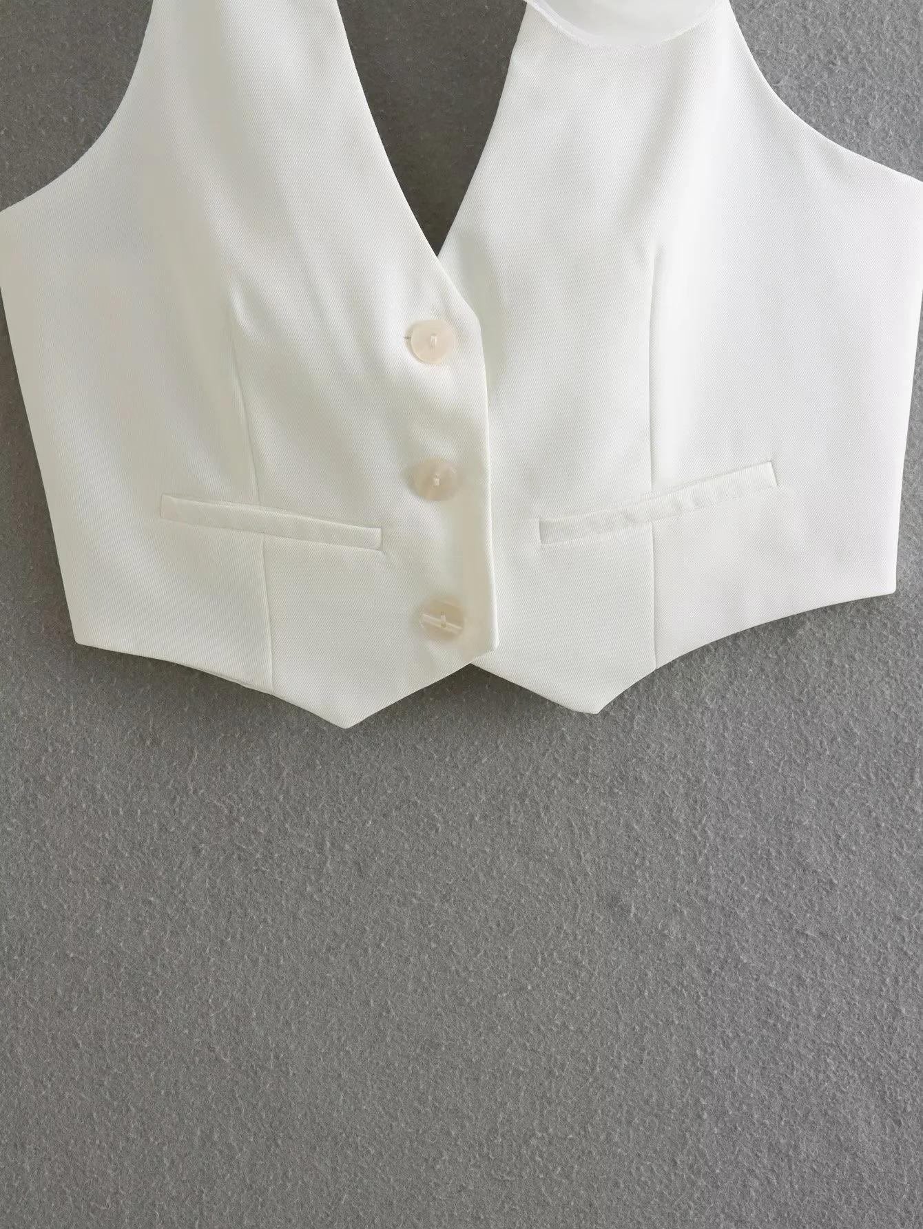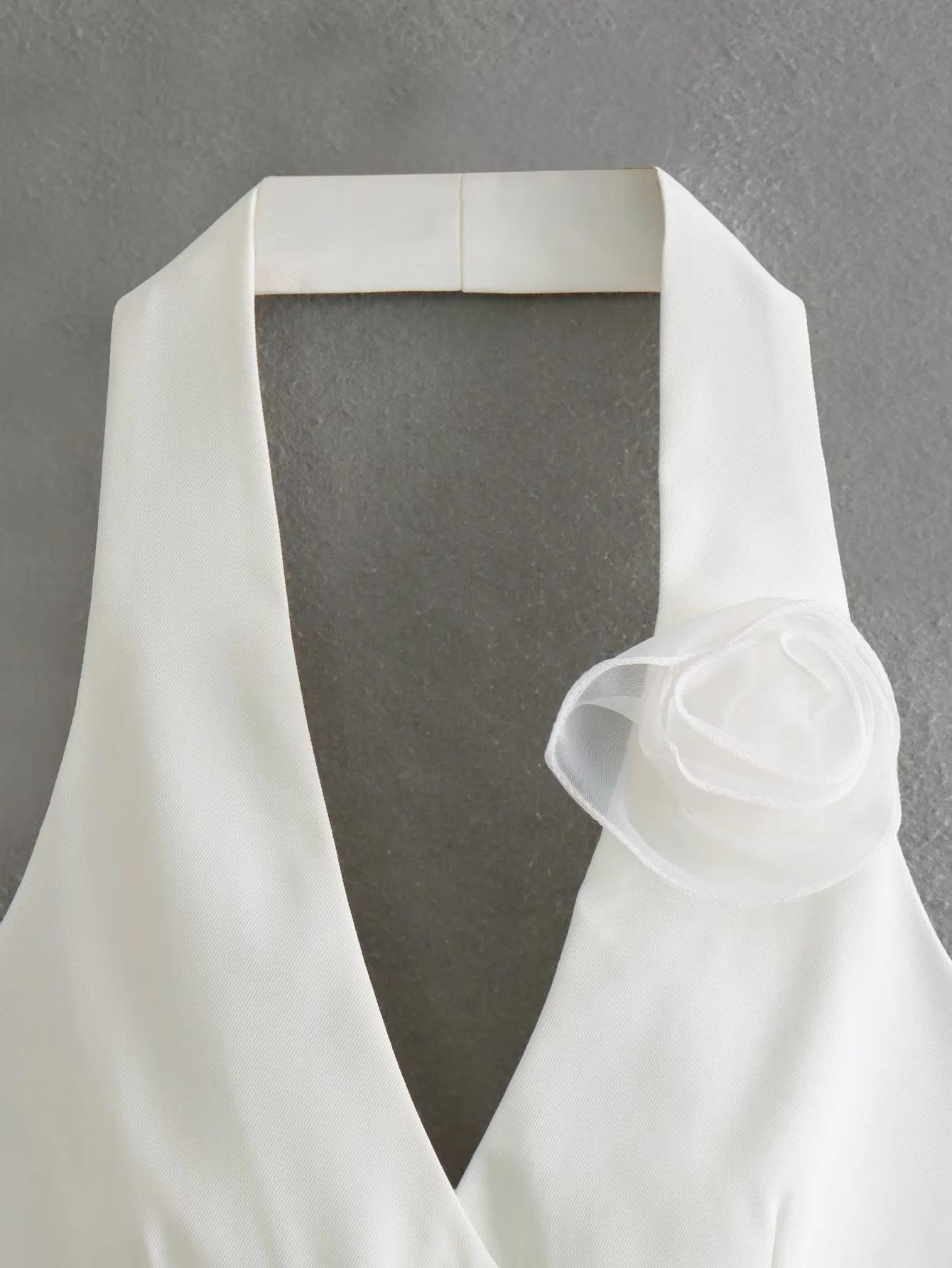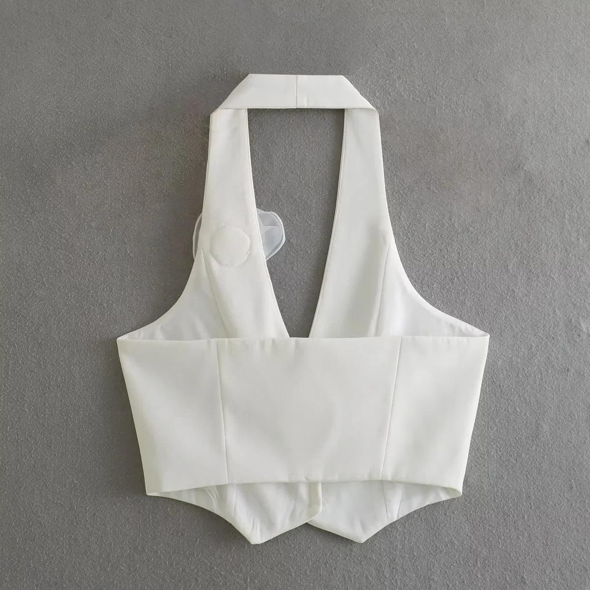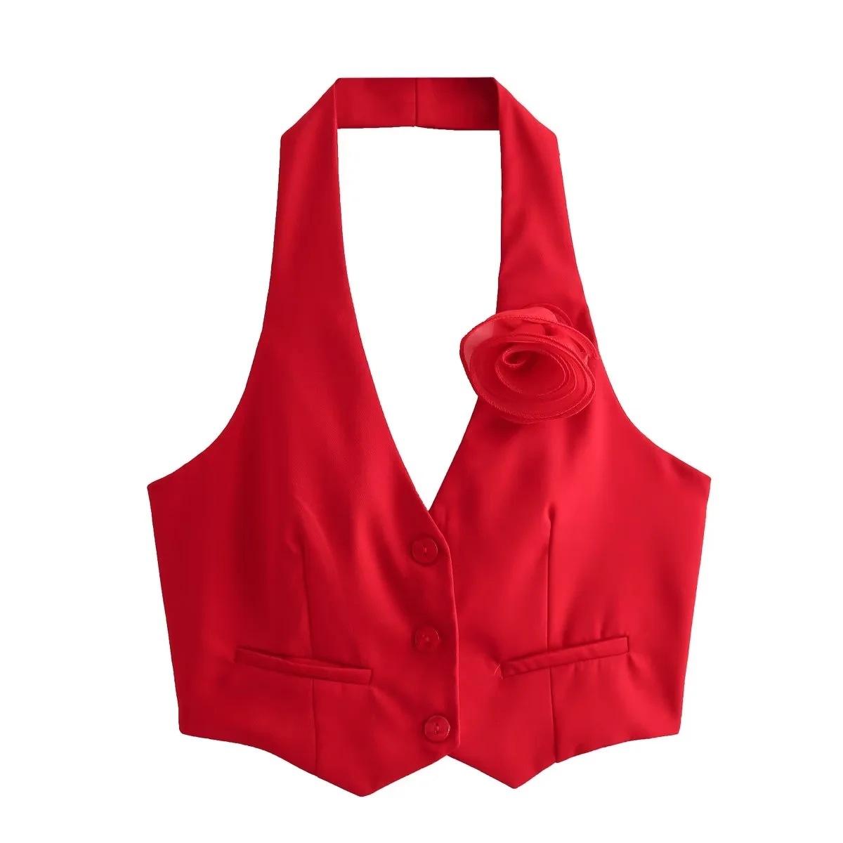 Ropa de mujer transfronteriza estilo europeo y americano al por mayor 2024 primavera nuevo color flor decorativa top halter moda chaleco sexy
