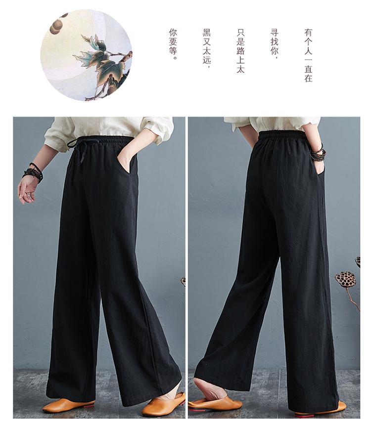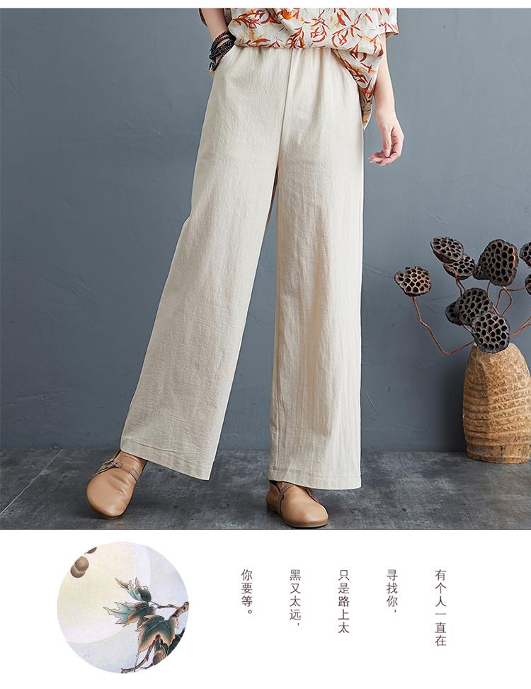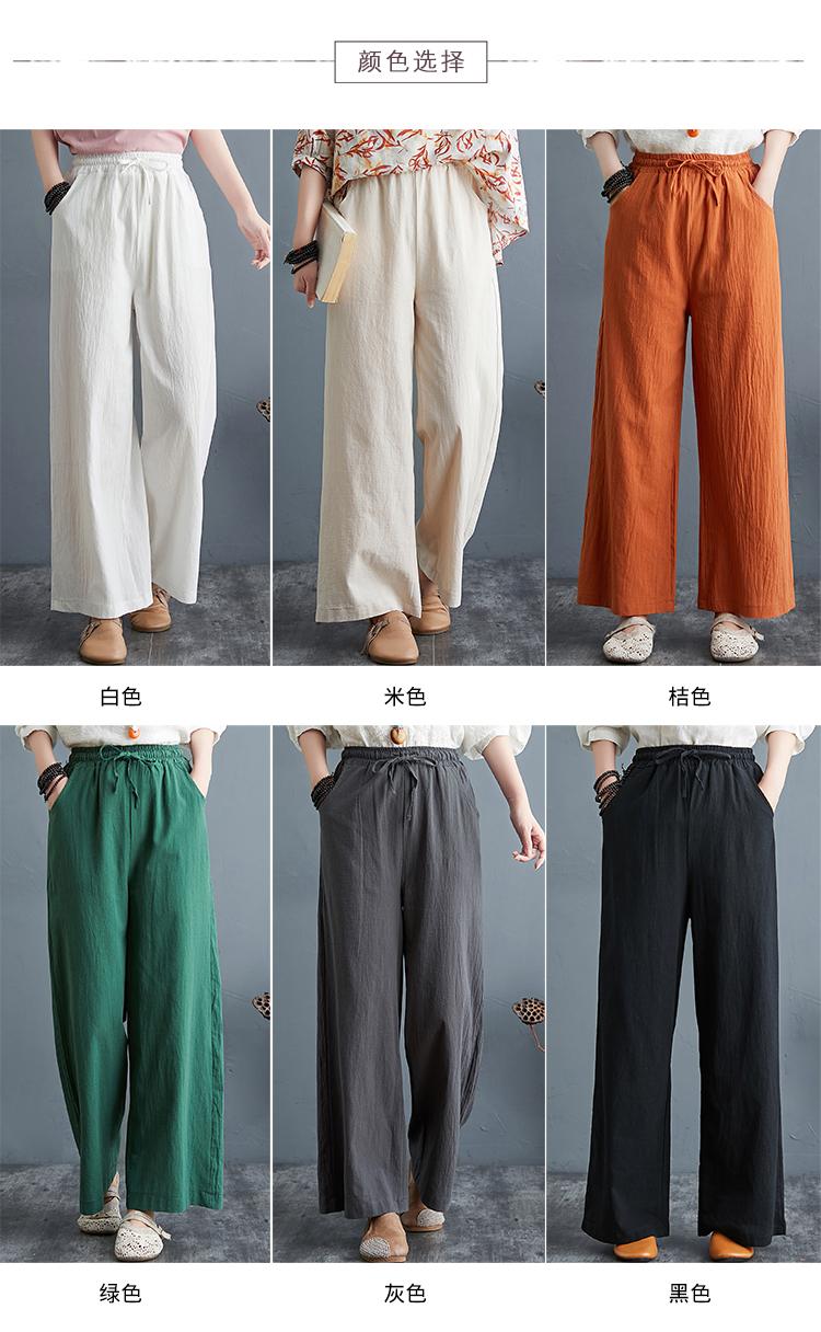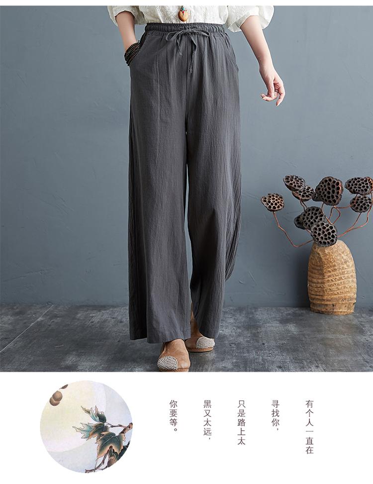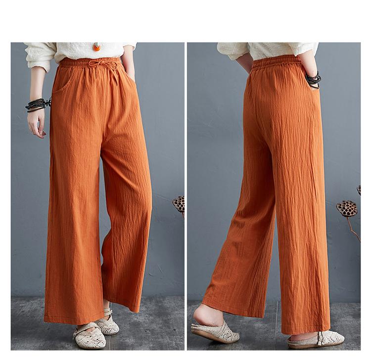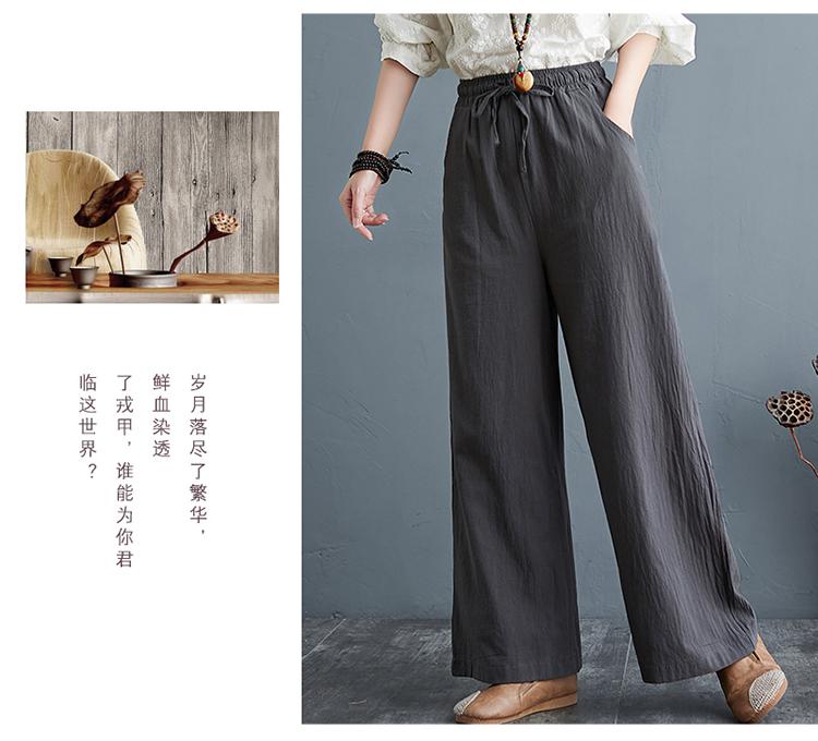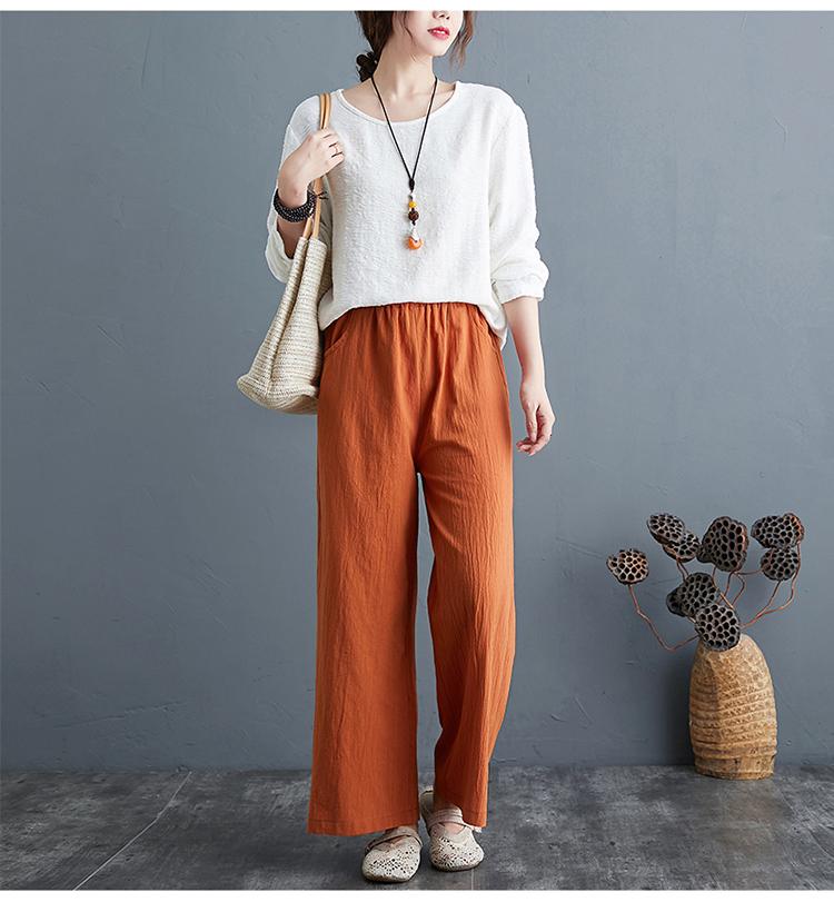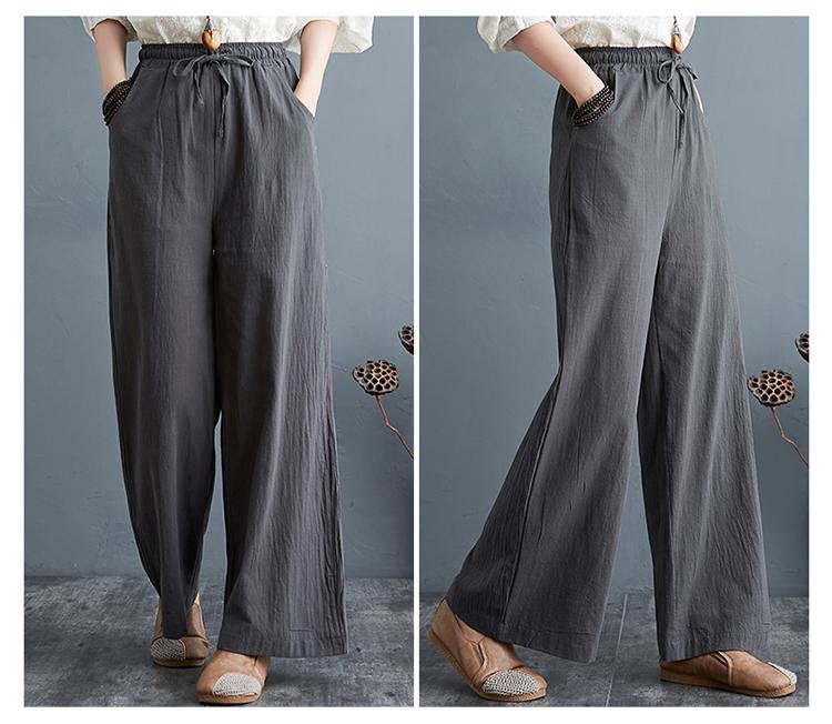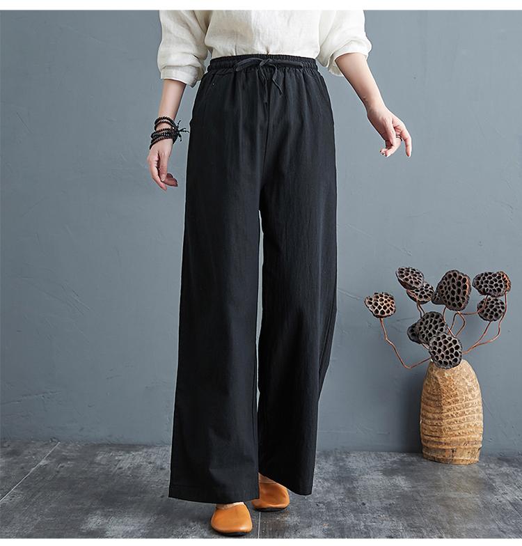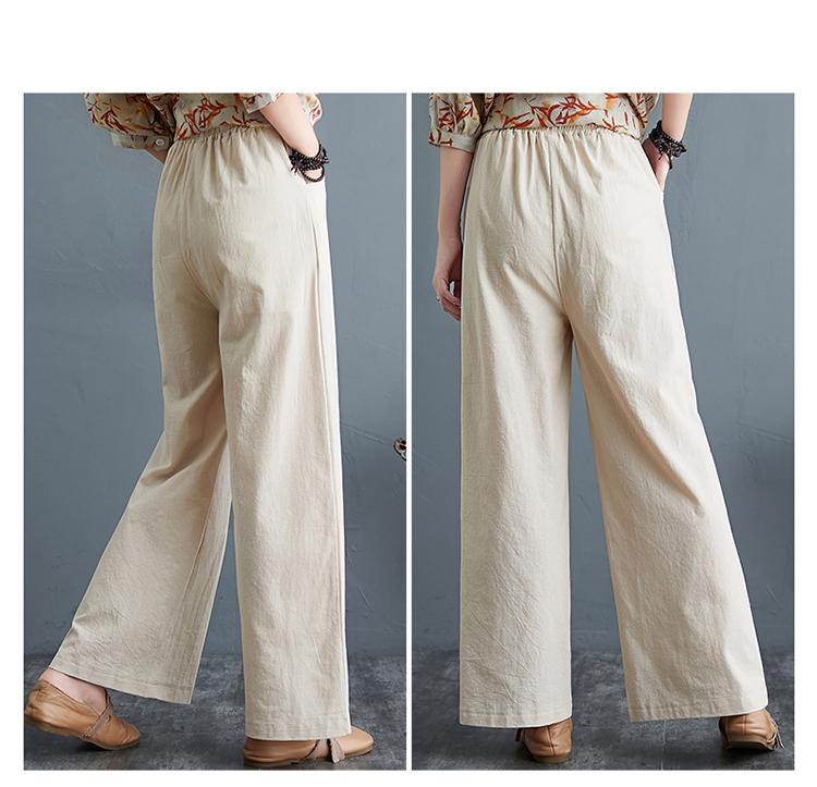 Pantalones de mujer de algodón y lino artísticos de primavera y verano de tiro real, pantalones holgados de pierna ancha de talla grande, pantalones de cintura alta, pantalones rectos, pantalones de lino