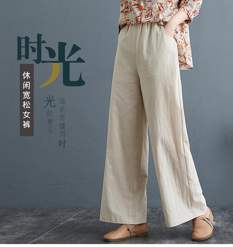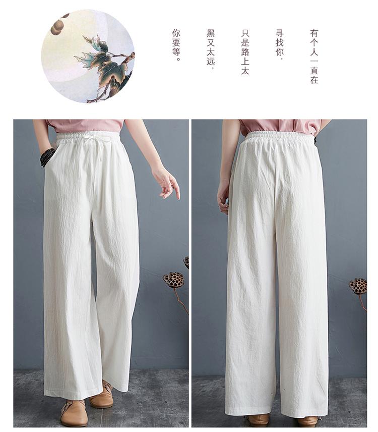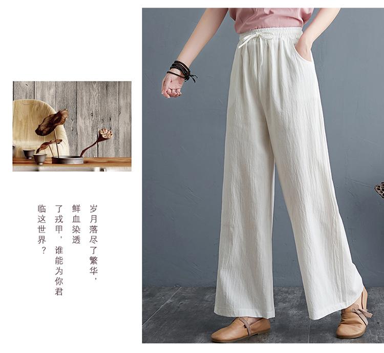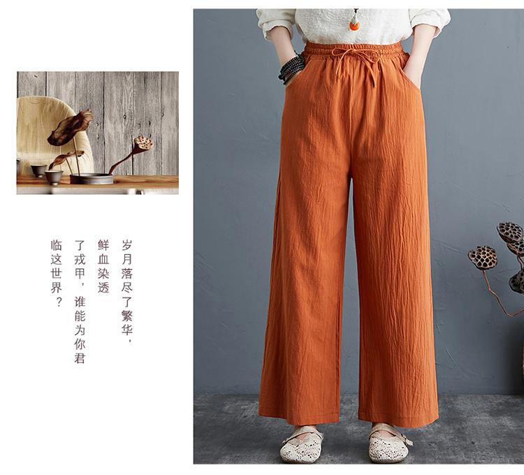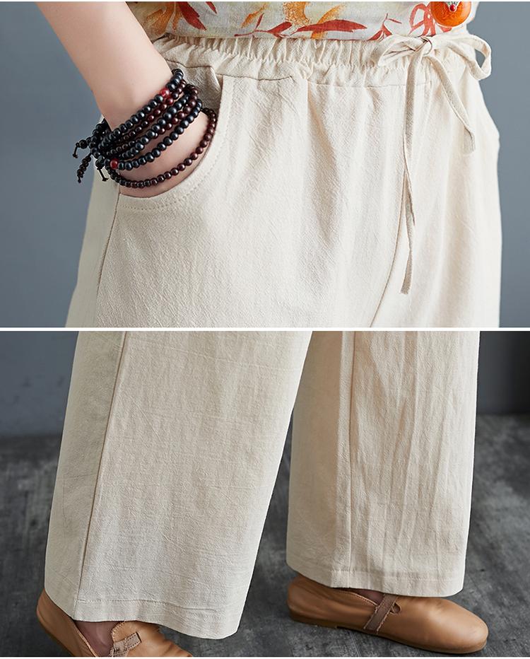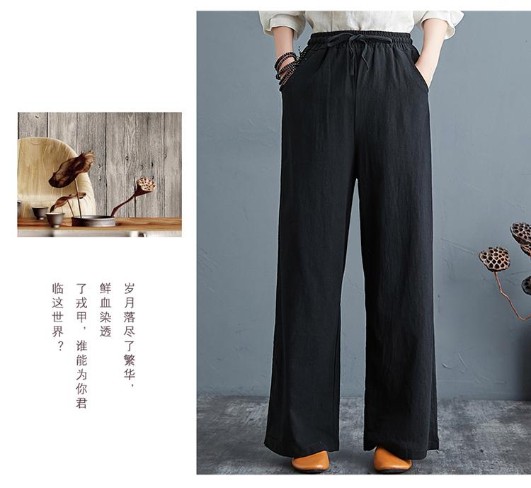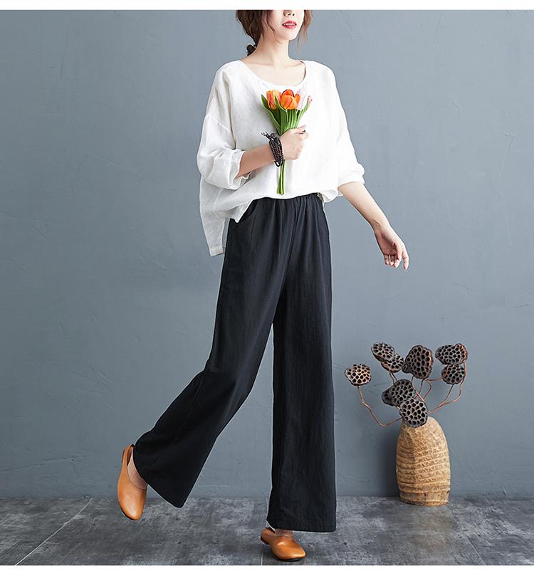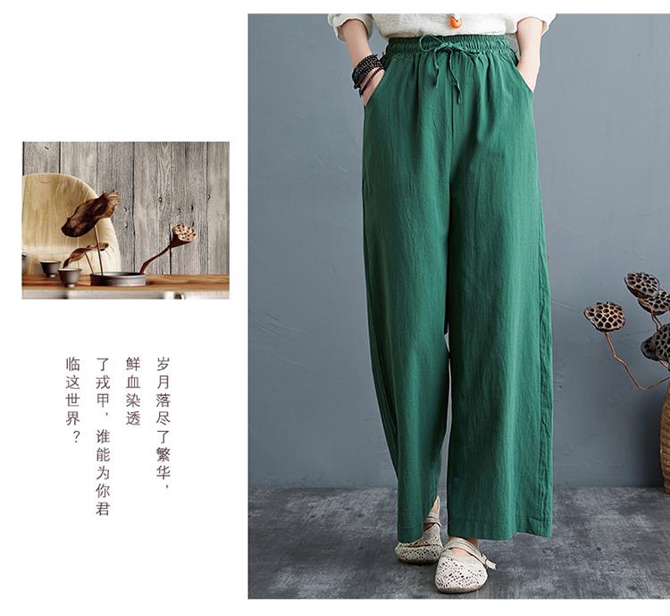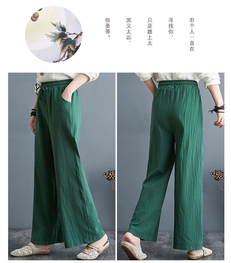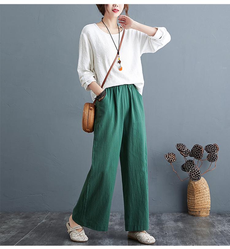Pantalones de mujer de algodón y lino artísticos de primavera y verano de tiro real, pantalones holgados de pierna ancha de talla grande, pantalones de cintura alta, pantalones rectos, pantalones de lino