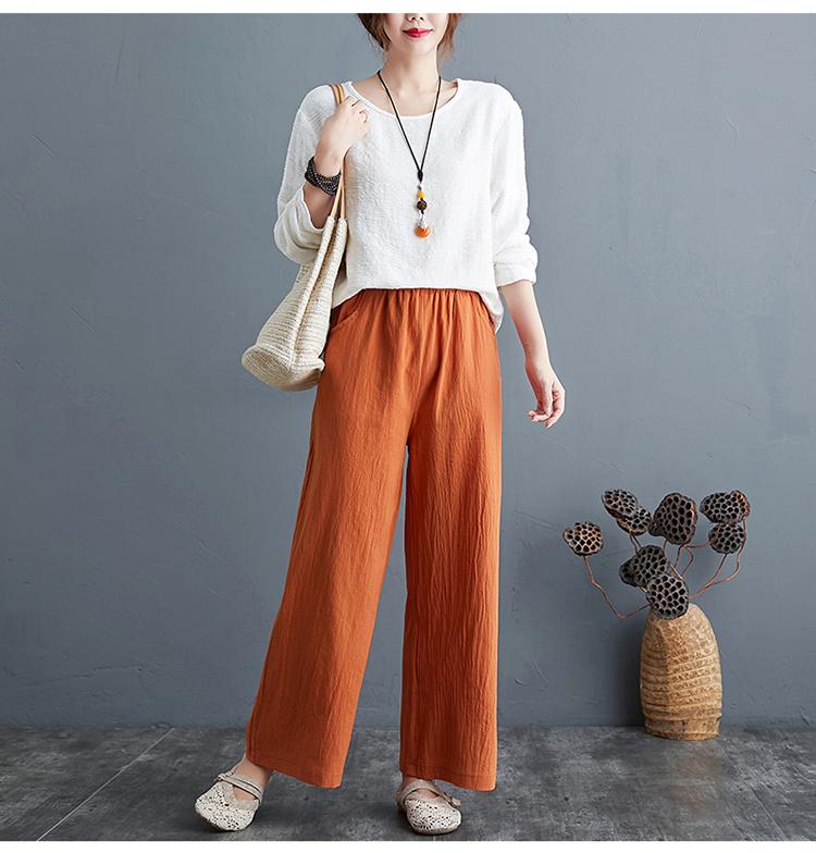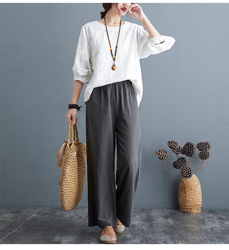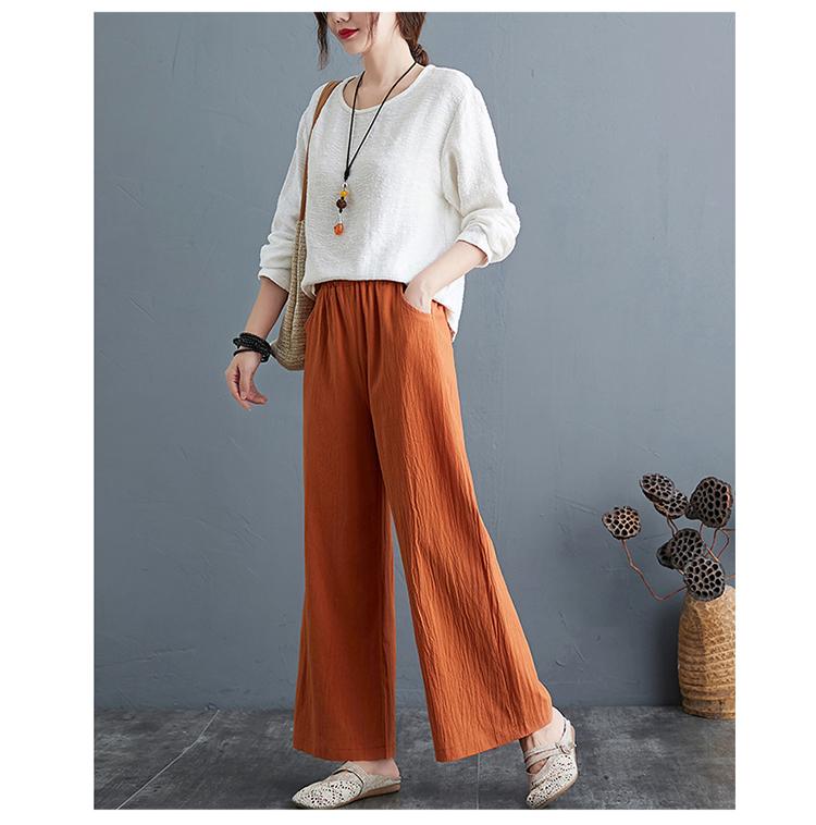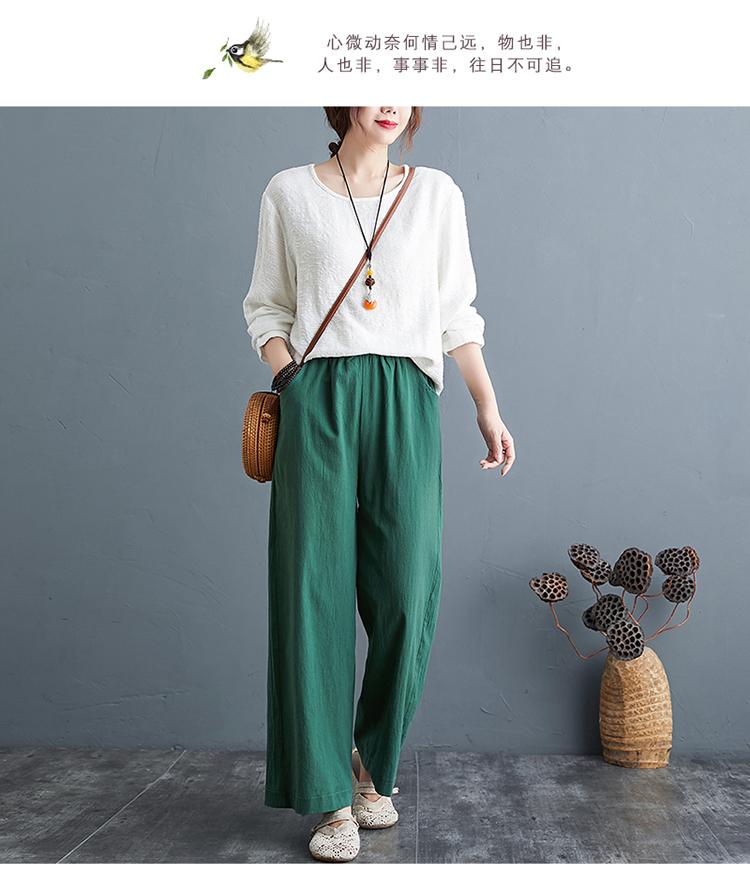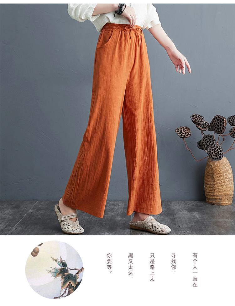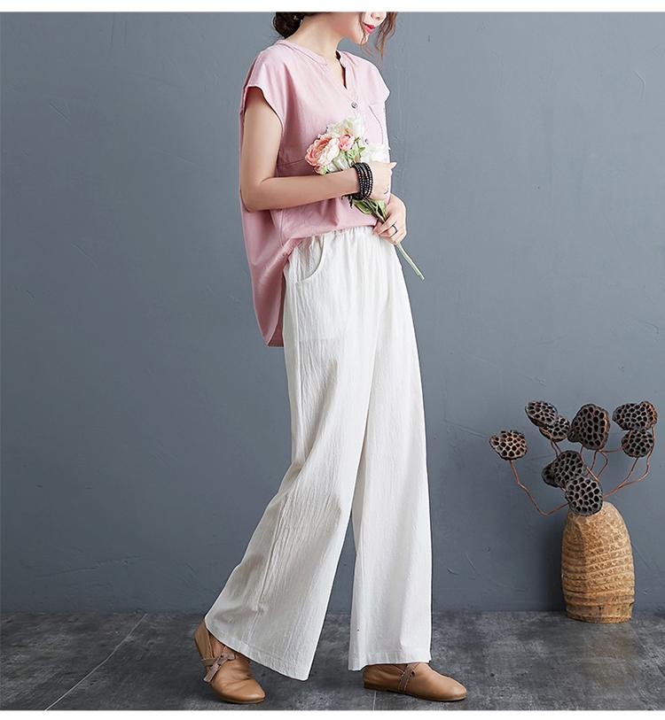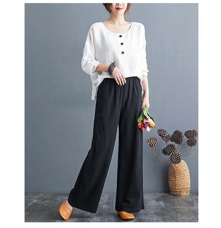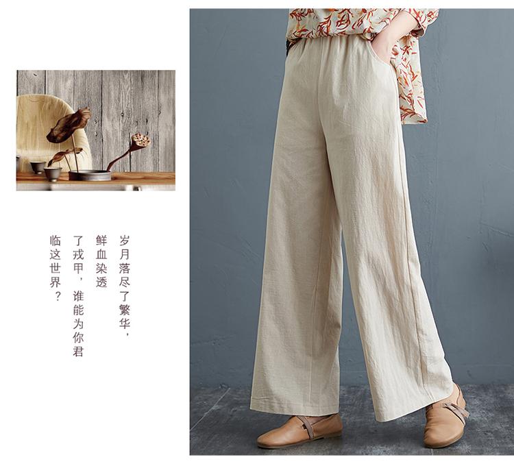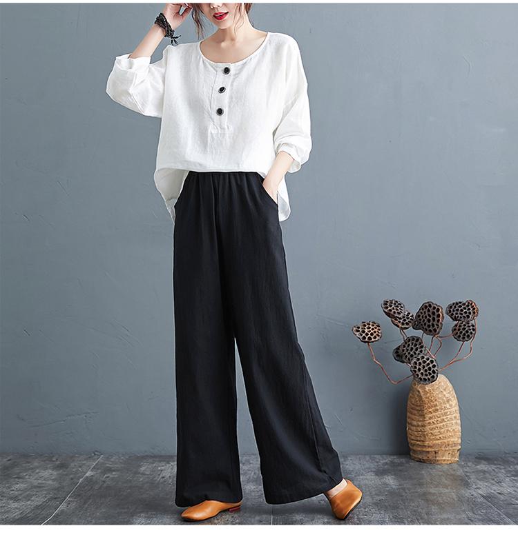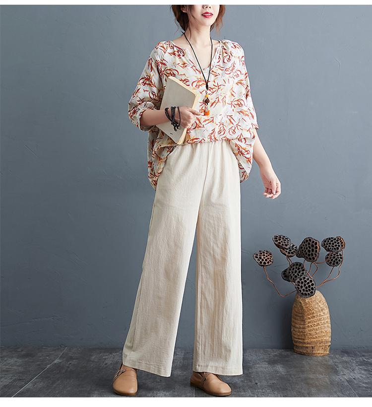 Pantalones de mujer de algodón y lino artísticos de primavera y verano de tiro real, pantalones holgados de pierna ancha de talla grande, pantalones de cintura alta, pantalones rectos, pantalones de lino
