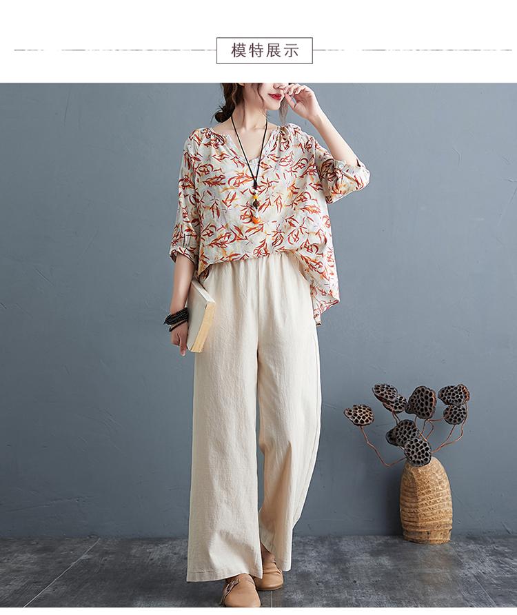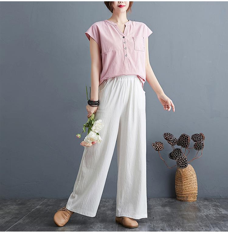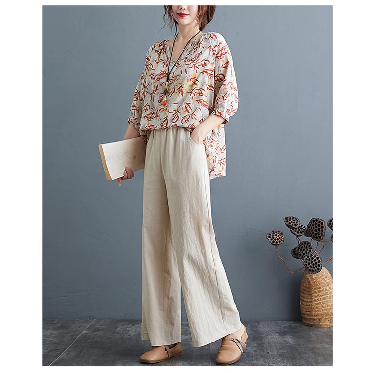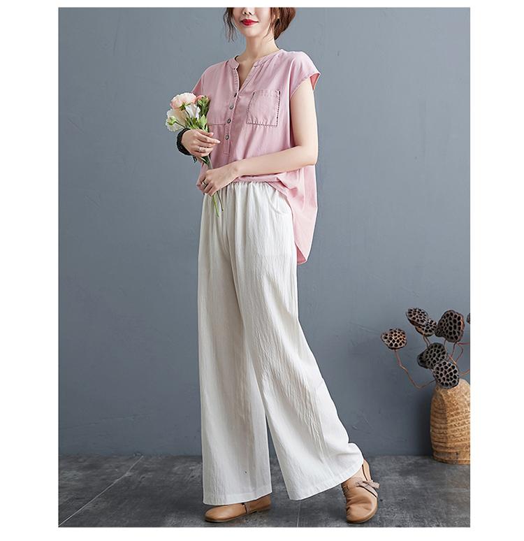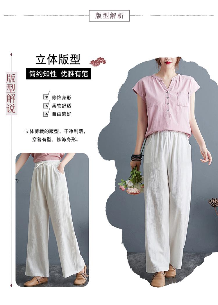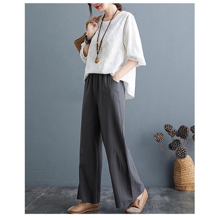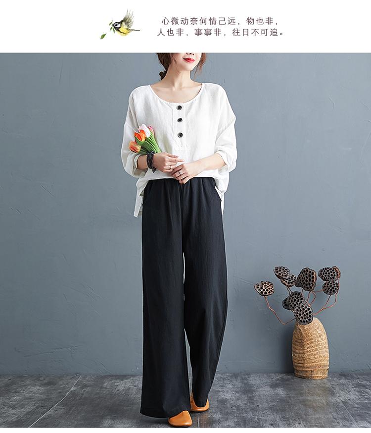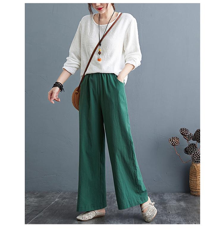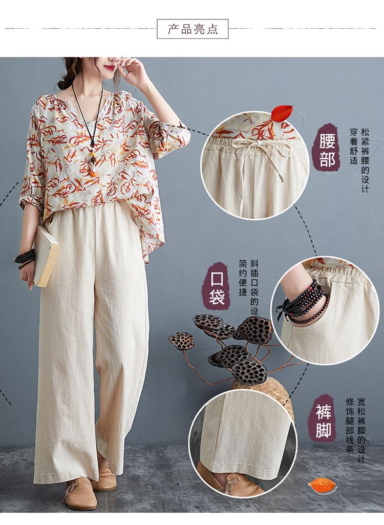 Pantalones de mujer de algodón y lino artísticos de primavera y verano de tiro real, pantalones holgados de pierna ancha de talla grande, pantalones de cintura alta, pantalones rectos, pantalones de lino