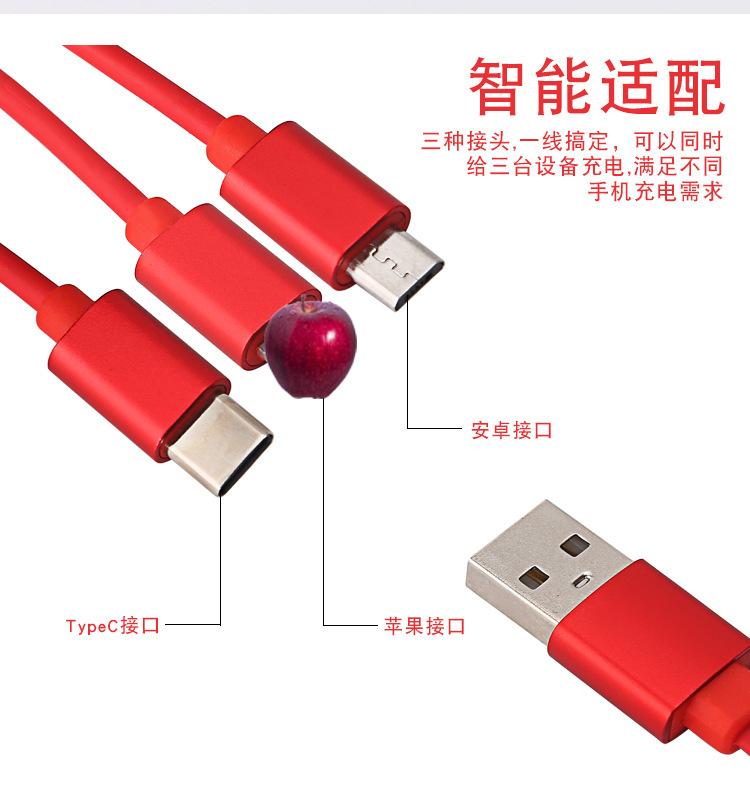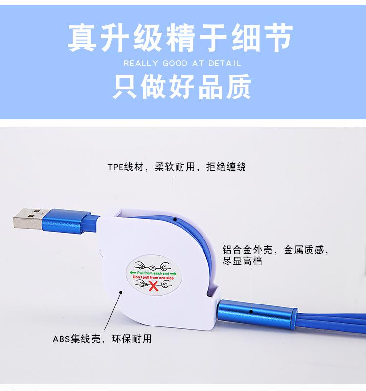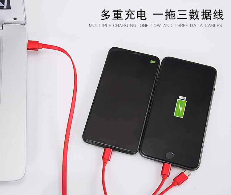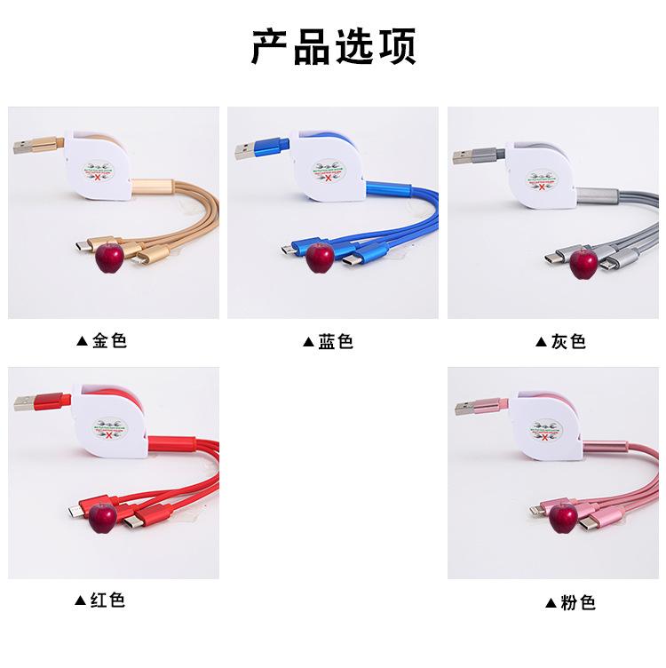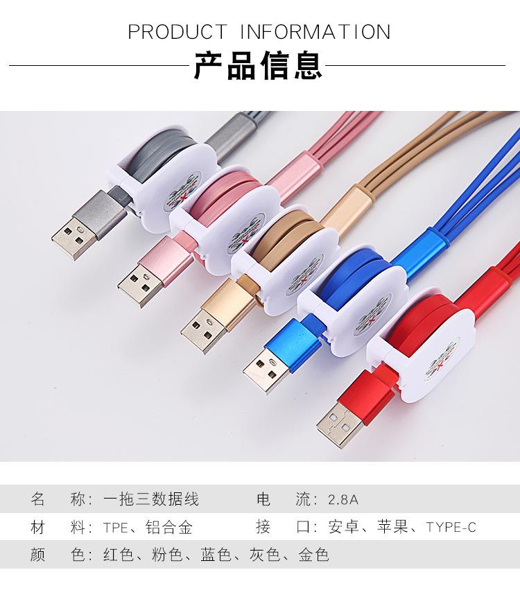 Tres en uno telescópico datos creativo regalo de empresa impresión carga rápida de teléfono móvil uno a tres línea de carga fabricantes spot