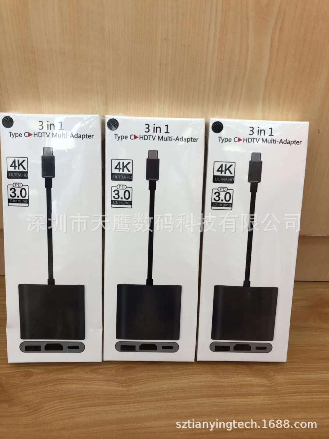 3 en 1 Multipuertos Proyecto Tipo C a Adaptador HDMI 1080 P 4K Adaptador HDMI a Conmutador USBC Convertidor HDMI Tipo C Hub