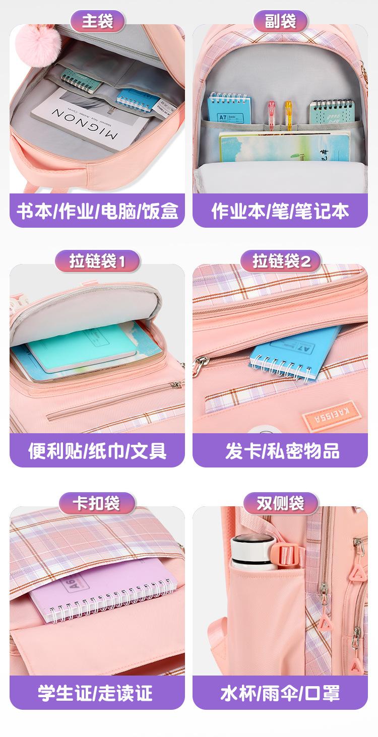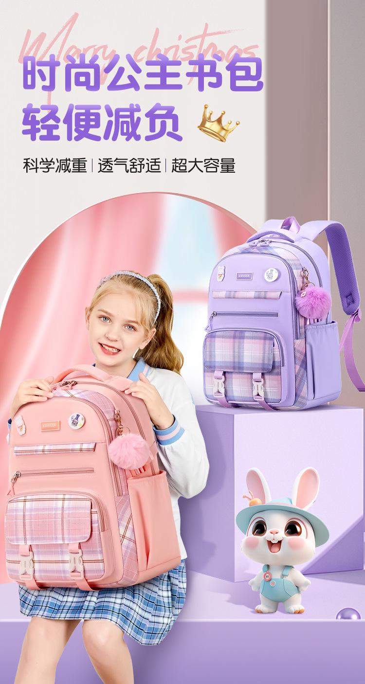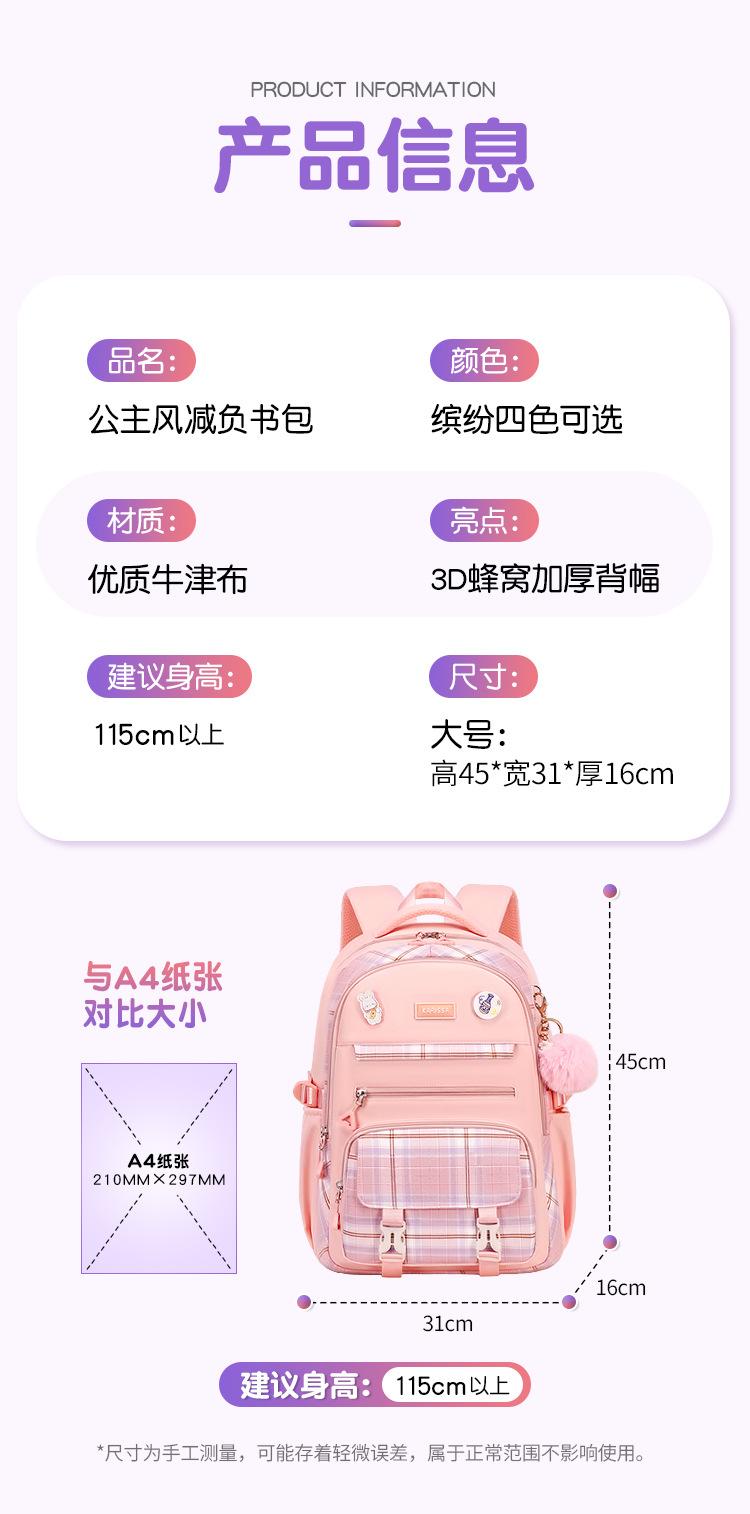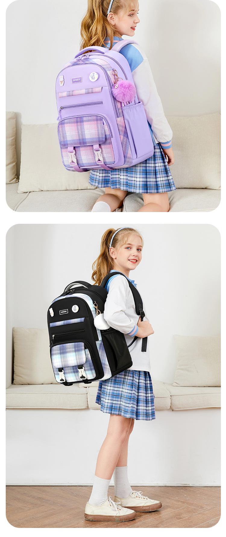 2025 Nueva Mochila Escolar Primaria para Niños a Cuadros Grados 1-3-6 Mochila de Tela Oxford Mochila Ligera Niñas