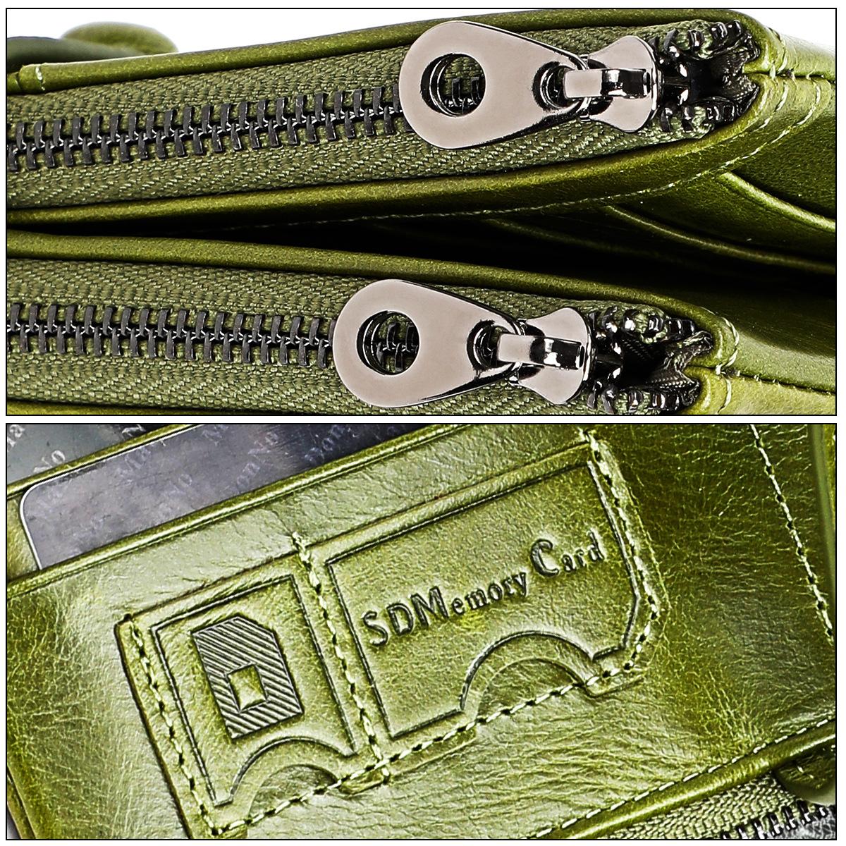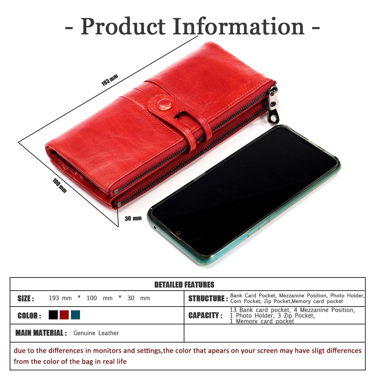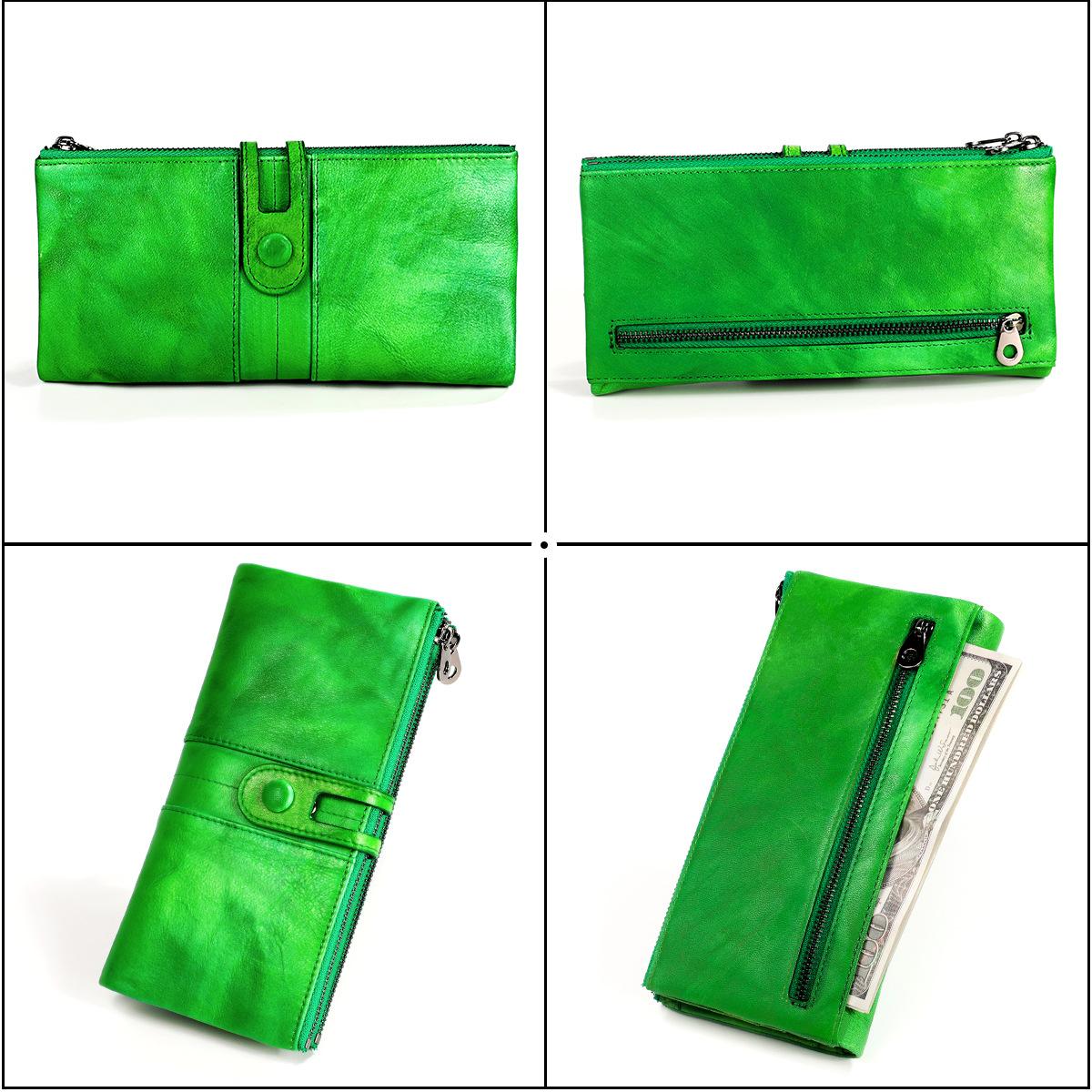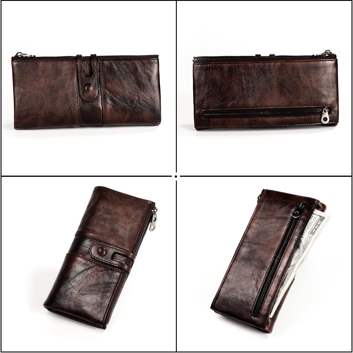 Cartera de cuero genuino para mujer, nueva cartera de cuero genuino con cremallera larga de comercio exterior de fábrica, bolso de mano informal retro de piel de vaca de capa superior para mujer¥68