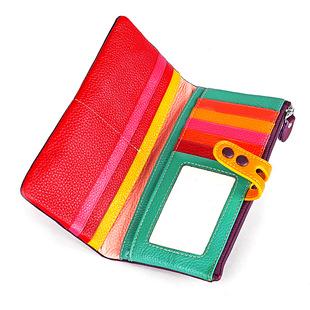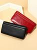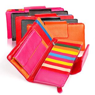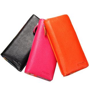 Cartera pequeña de piel auténtica con cremallera larga para mujer, bolso de mano de gran capacidad, de origen europeo y americano, de colores vivos¥45