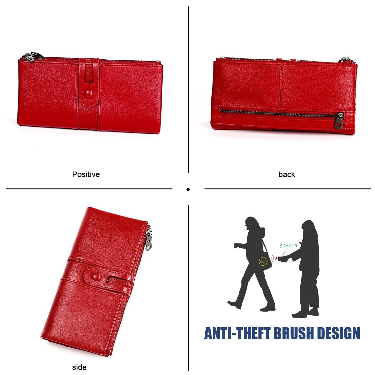 Nuevo producto de comercio exterior, billetera para mujer, bolso largo, RFID, anti-escaneo, cuero genuino, versión coreana, billetera para mujer¥21.5