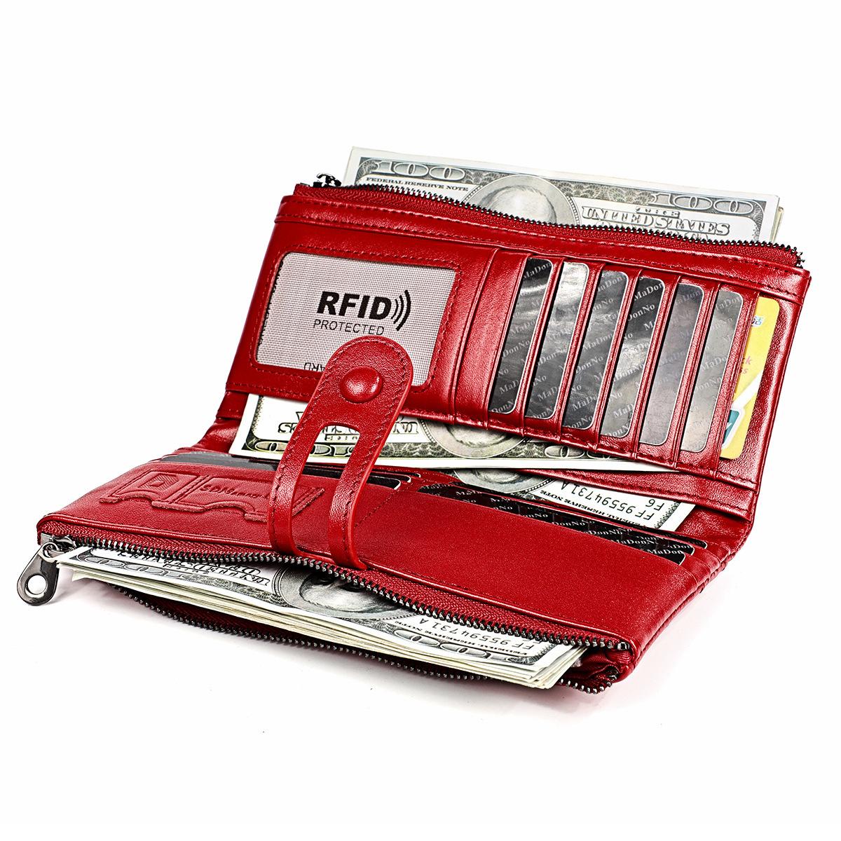 Cartera de mujer de cuero genuino anti-RFID de capa superior 2018, versión coreana larga, billetera de piel de vaca encerada con ranura para múltiples tarjetas para mujer¥59