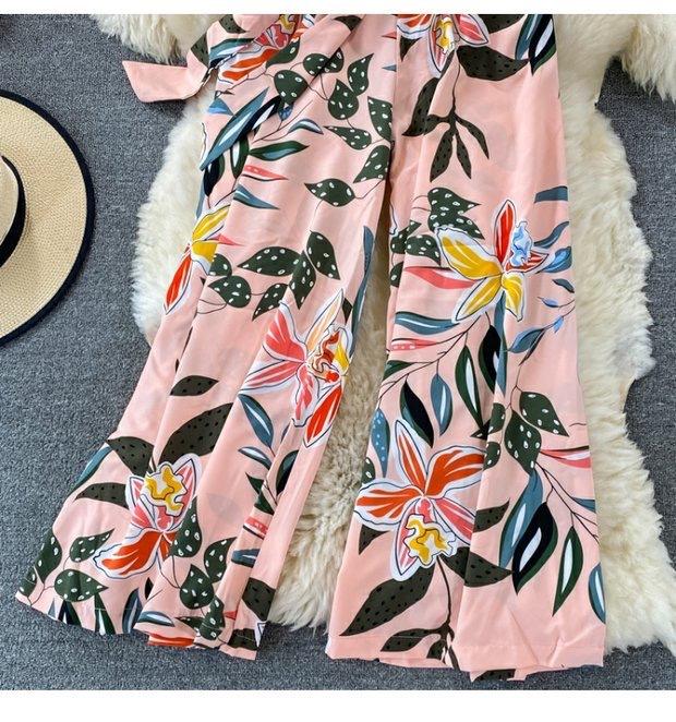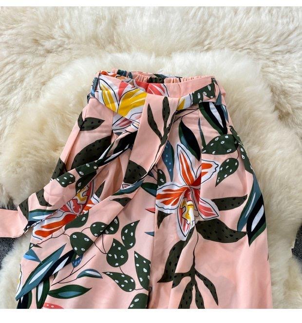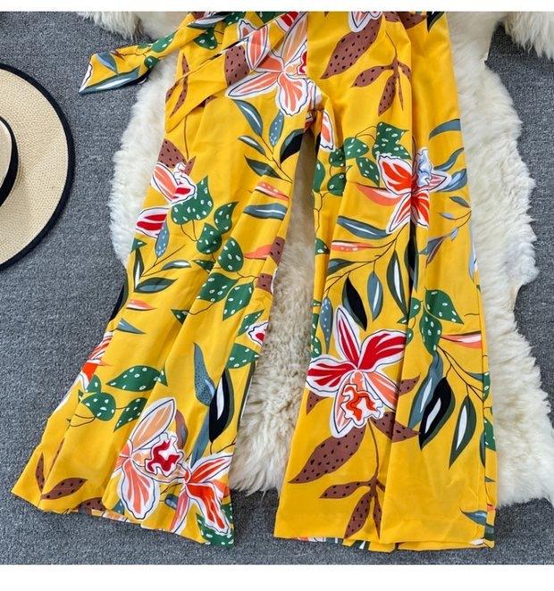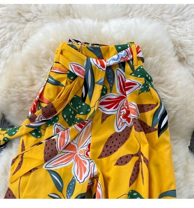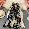 Pantalones de pierna ancha versátiles, adelgazantes, de cintura alta, con estampado de estilo vacacional, nuevos de verano, con cintura elástica, pantalones casuales