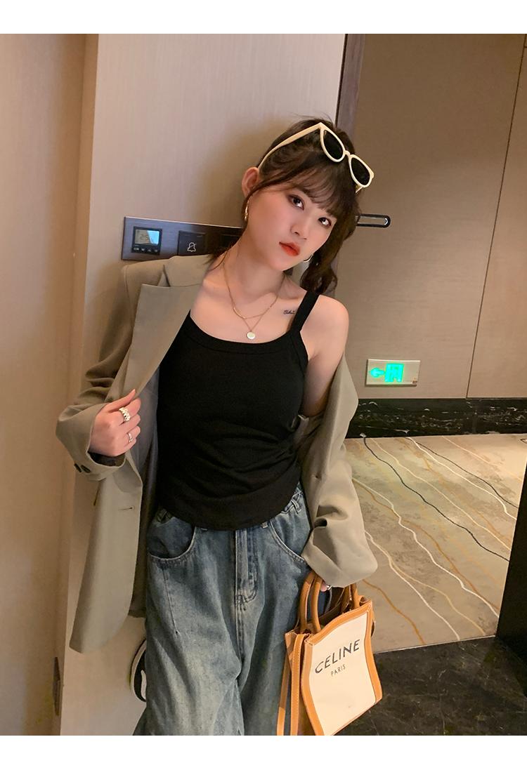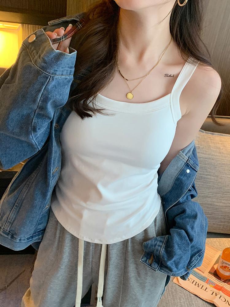 Sujetador de tirantes sexy de color sólido, todo en uno, chaleco interior ajustado de verano para mujer, prenda exterior adelgazante, sin mangas, base superior