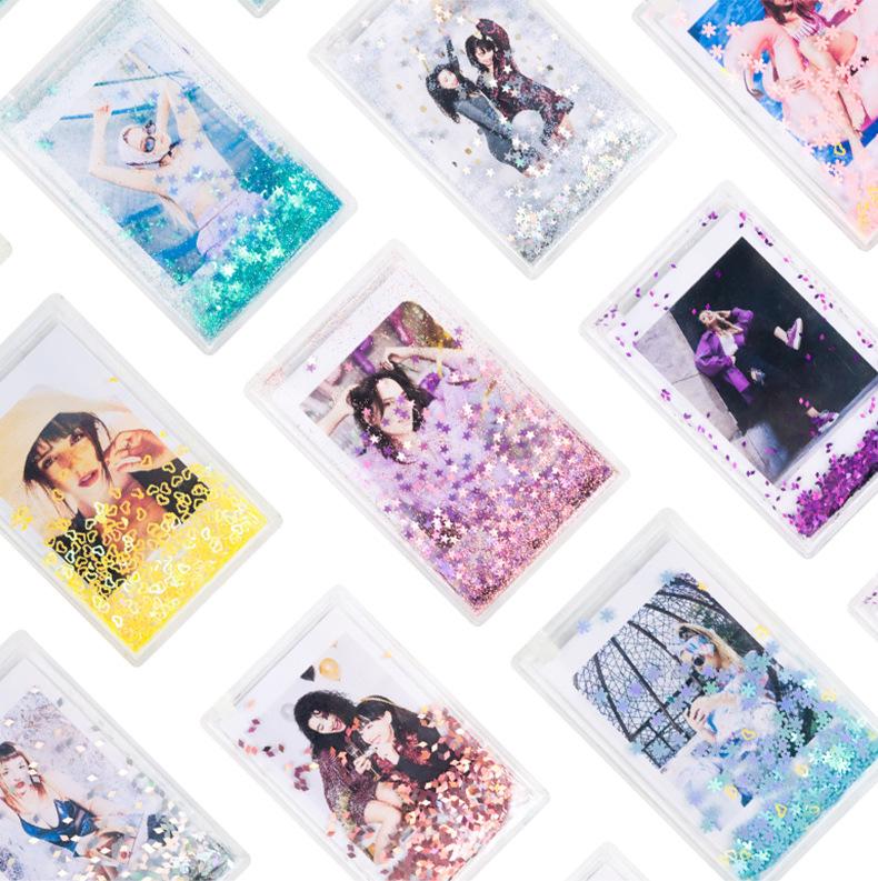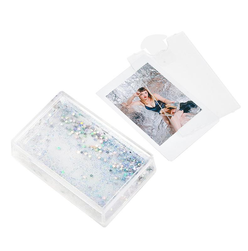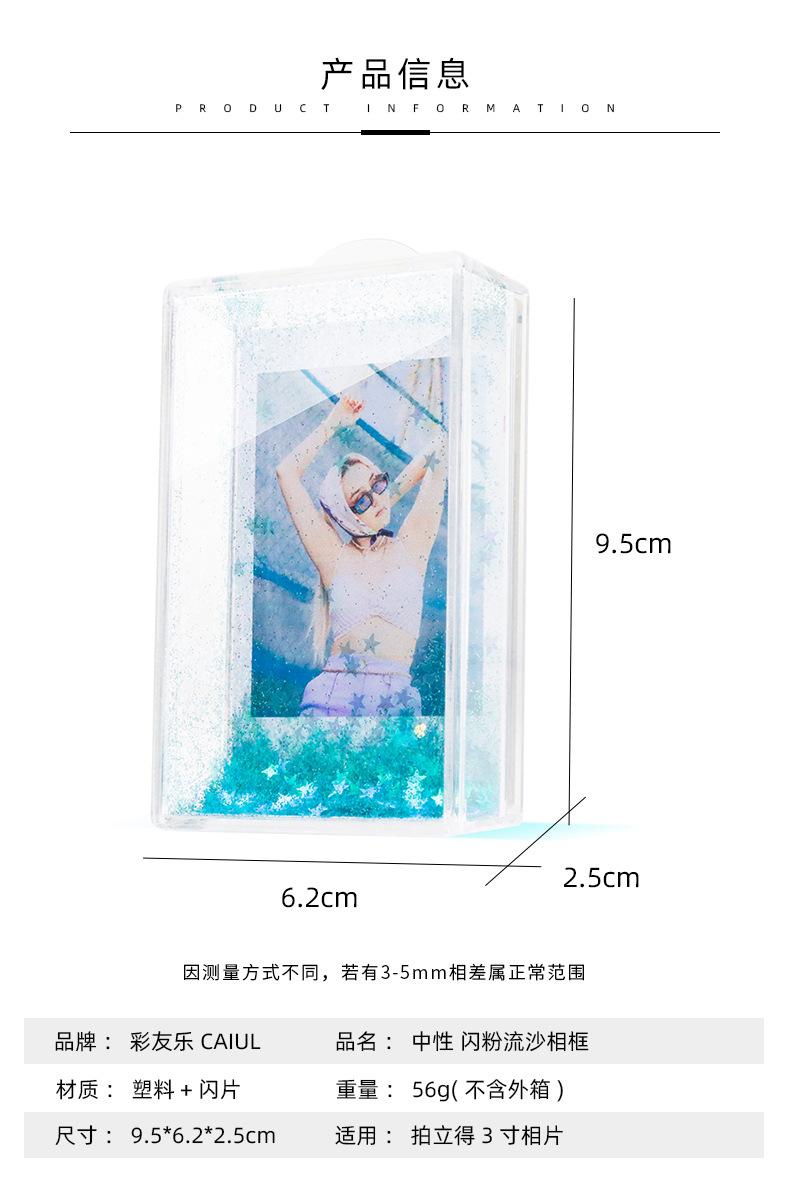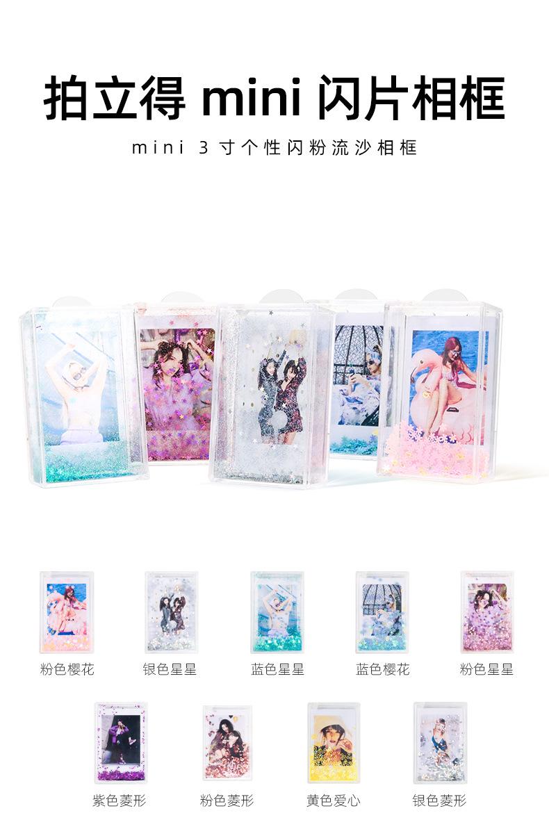 CAIUL Adecuado para papel fotográfico Polaroid mini Marco de fotos de arena movediza con brillo de 3 pulgadas Marco de fotos de escenario creativo