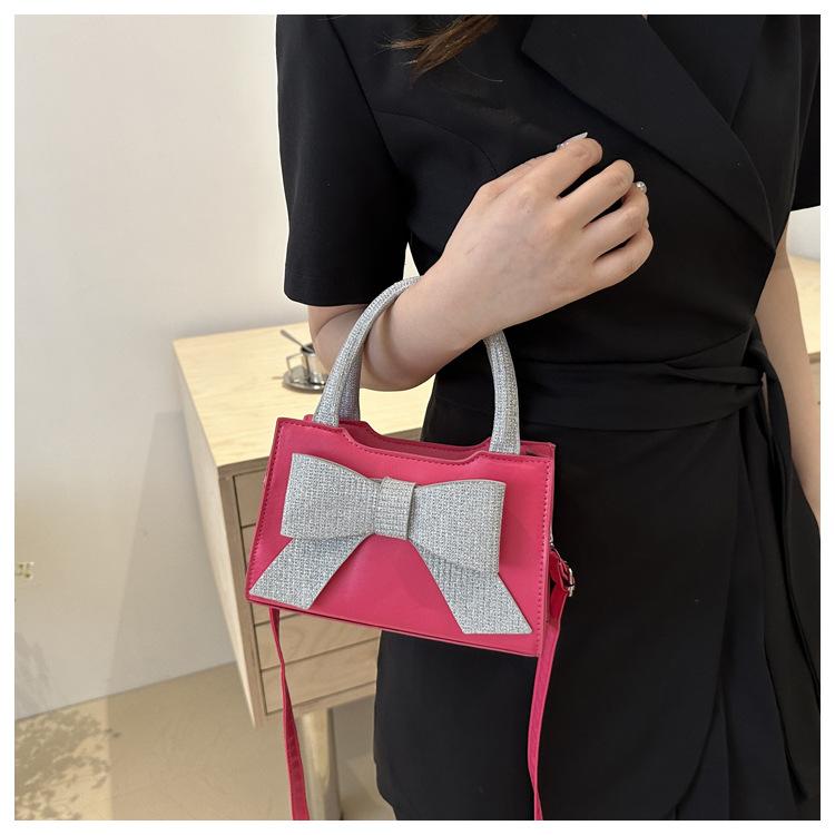 Bolso de mano estilo coreano con lazo, pequeño, con contraste de colores, para mujer, 2024, con nueva textura, bandolera de hombro.
