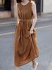 Vestido de cintura con cordones de encaje de tacto avanzado 2024 temporada de verano nuevo jersey de cuello redondo Vestido A