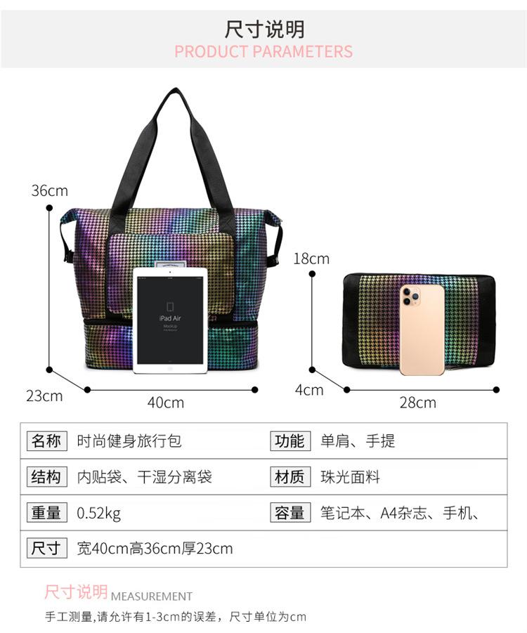 Bolsa de Viaje Bolso Grande para Mujer para Viajes Cortos al Aire Libre Viaje de Negocios Bolsa de Equipaje Separación Seca y Húmeda Bolsa Deportiva de Fitness Bolso de Bandolera
