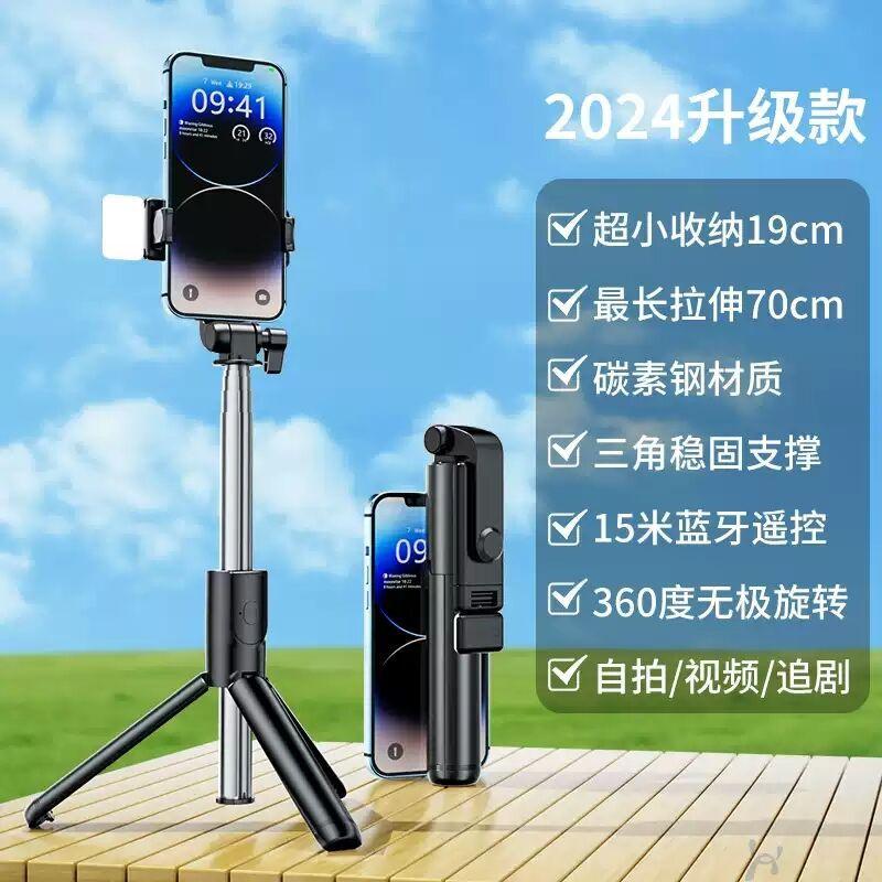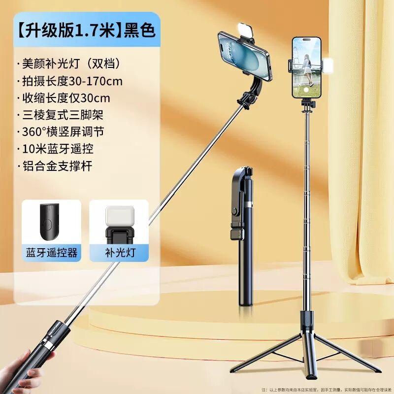 With beauty lamp 020 selfie stick-100cm upgrade [black] one-piece folding + stable tripod support