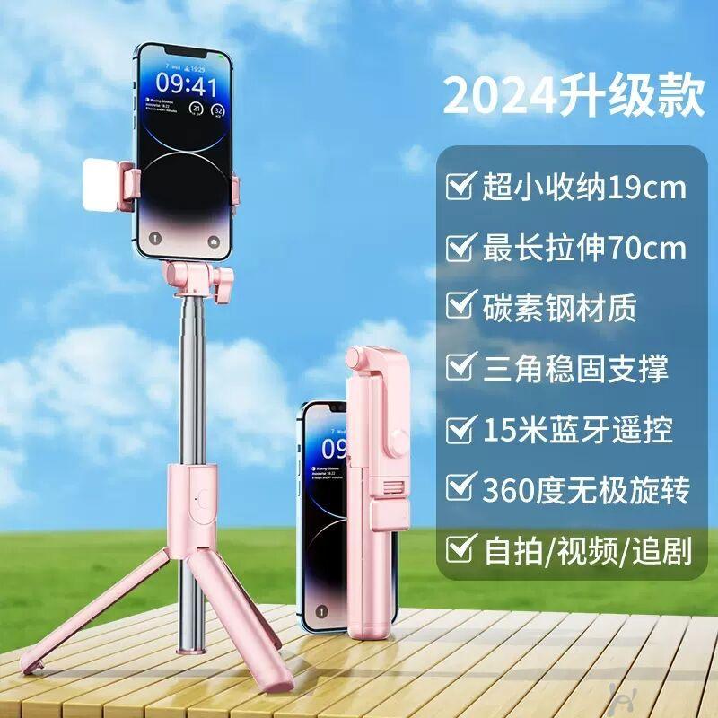 With beauty lamp 020 selfie stick-100cm upgraded [pink] one-piece folding + stable tripod support