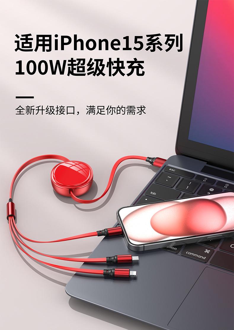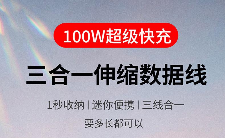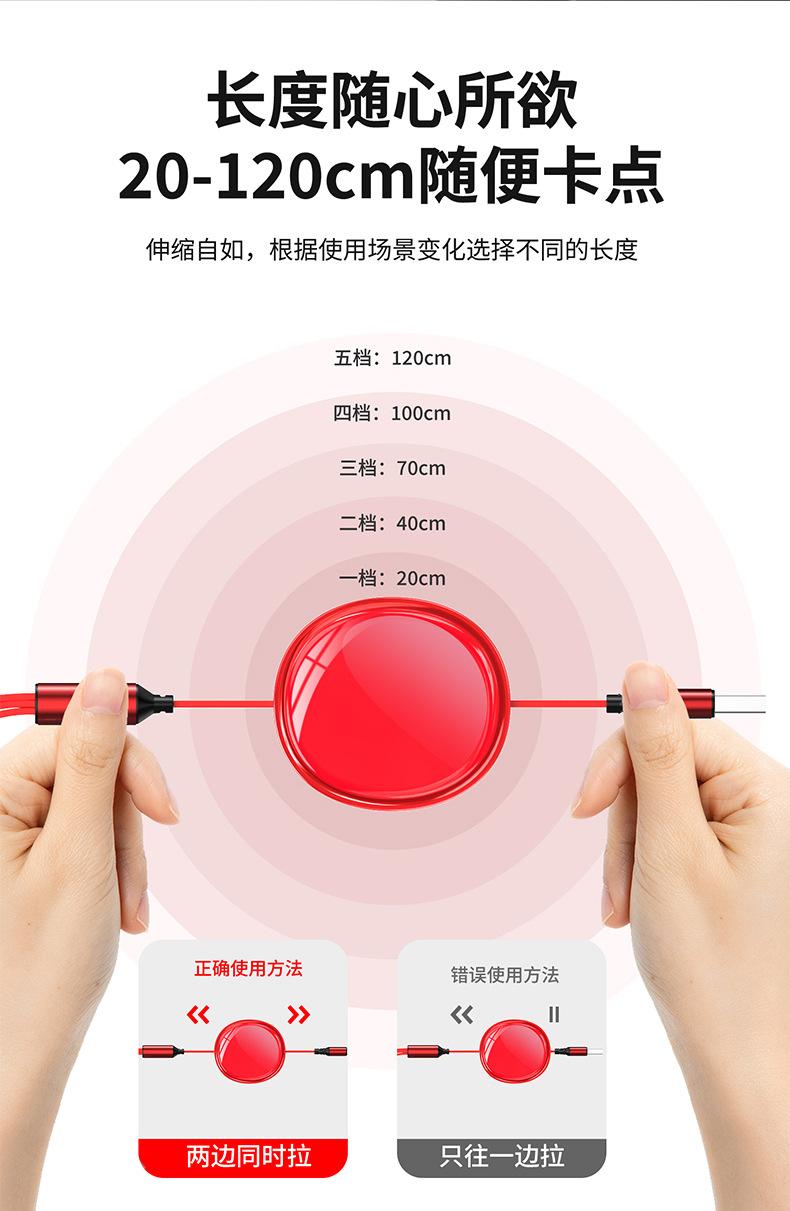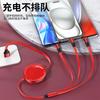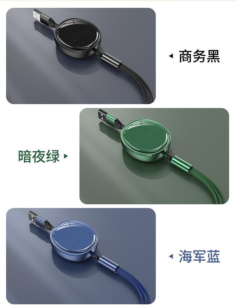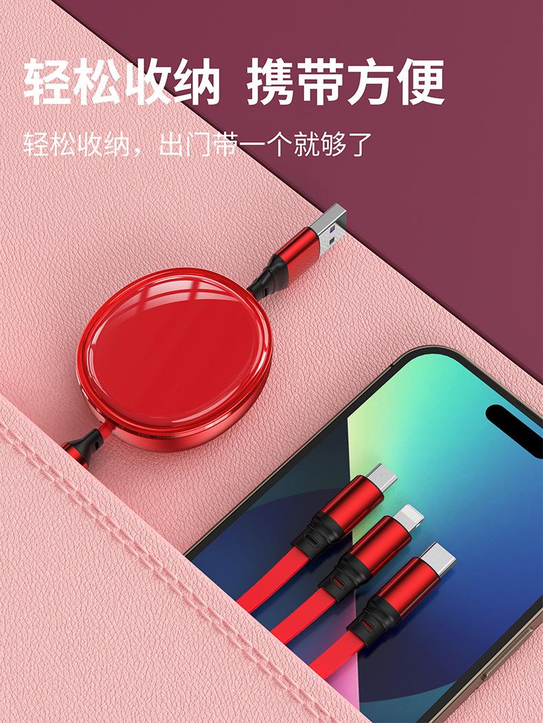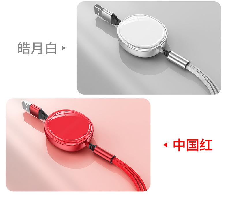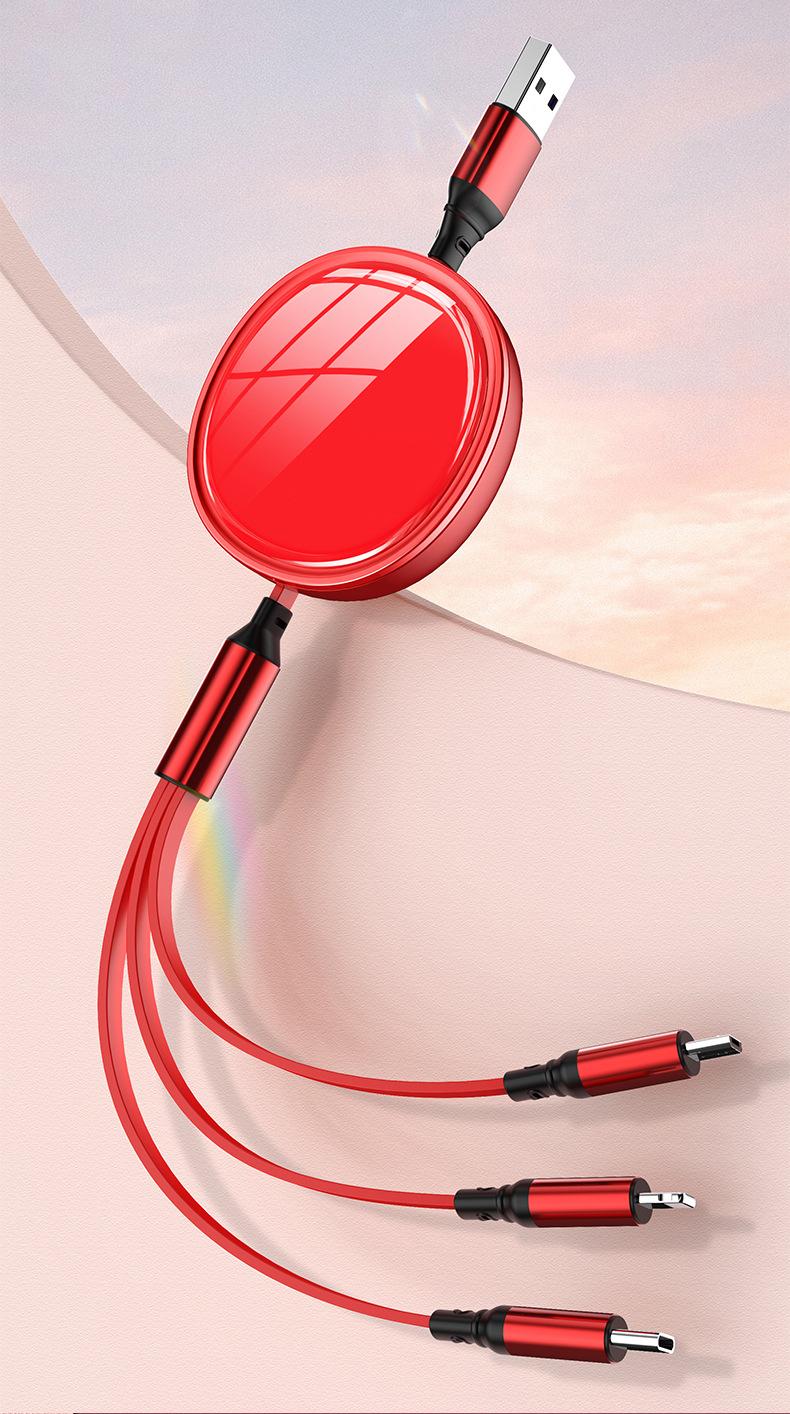 Cable de datos telescópico de carga rápida con superficie ovalada brillante de alto brillo tipo almacenamiento tres en uno línea de carga regalo de impresión
