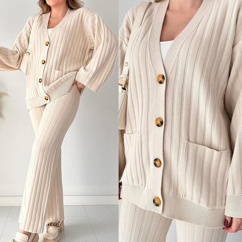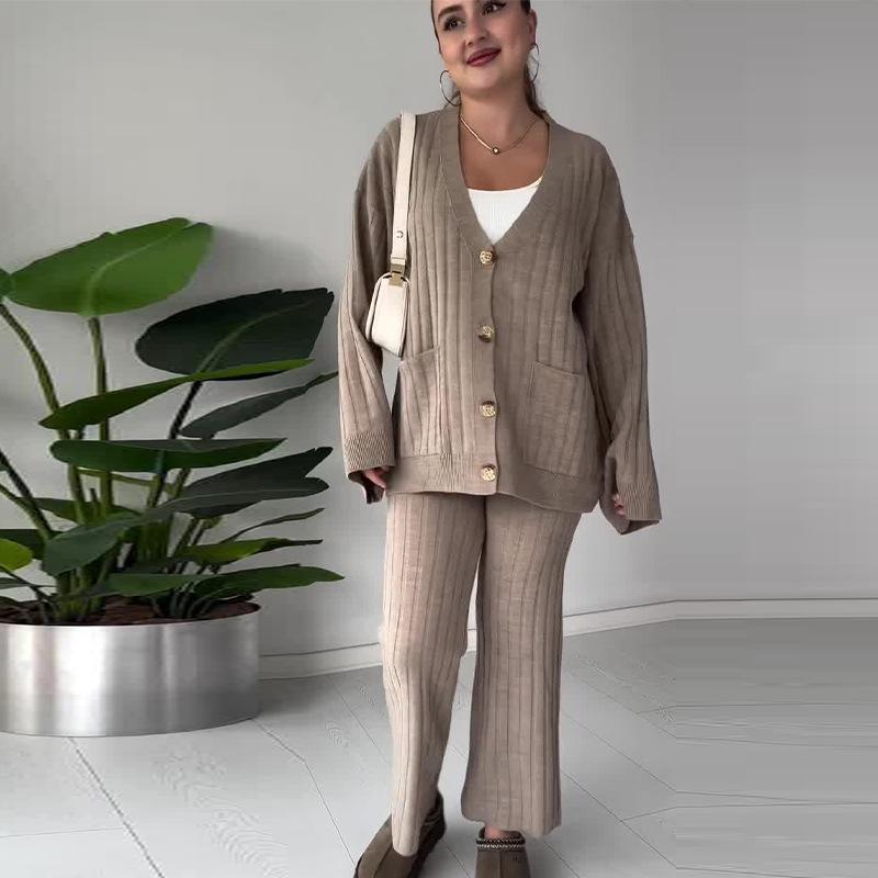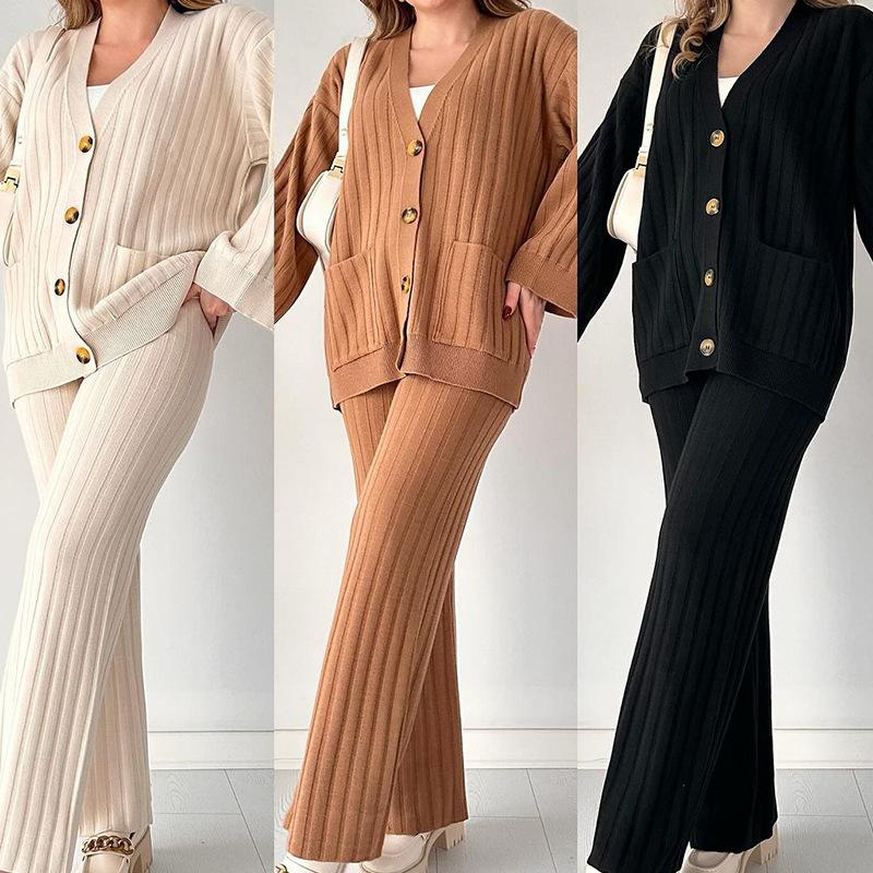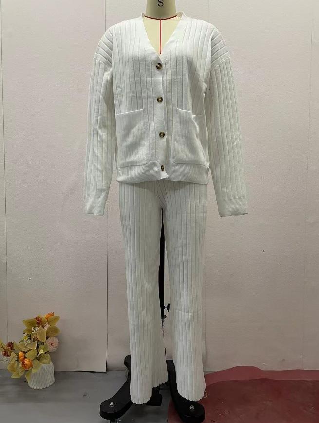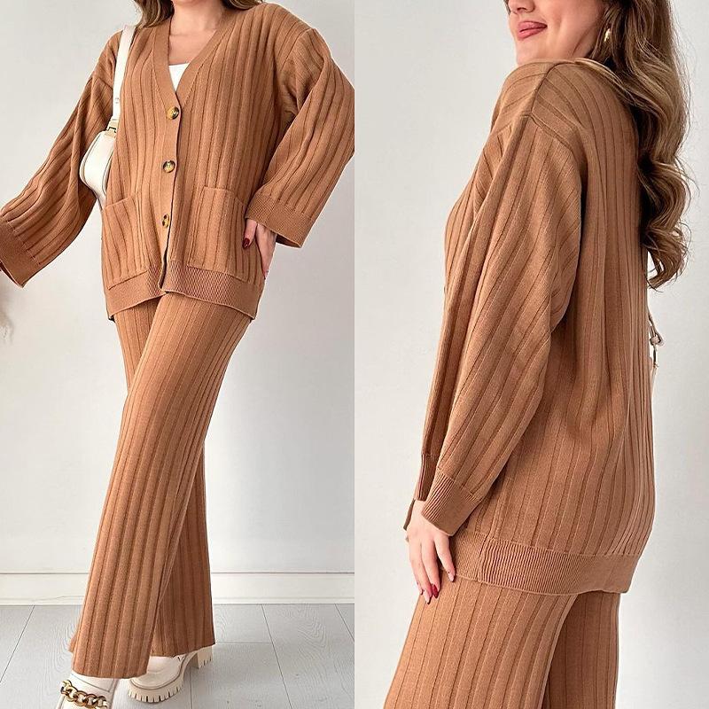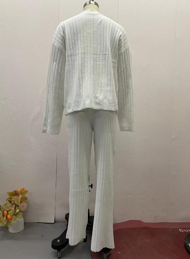 Otoño 2023 nuevo conjunto de dos piezas versátil de suéter suelto de color sólido de moda transfronteriza de Amazon europea y americana para mujer