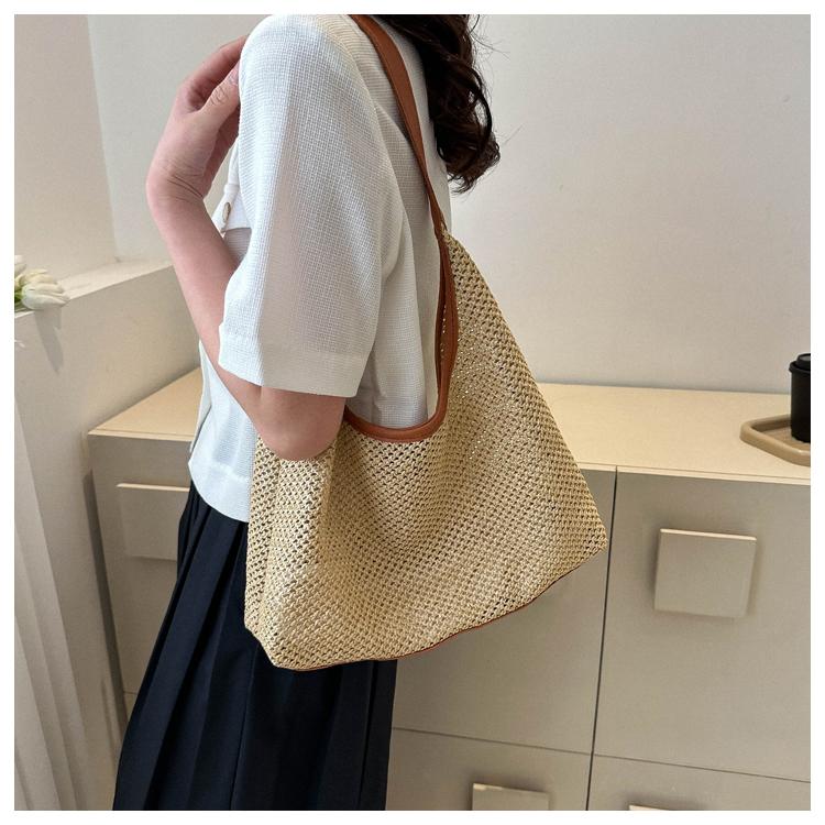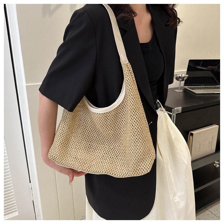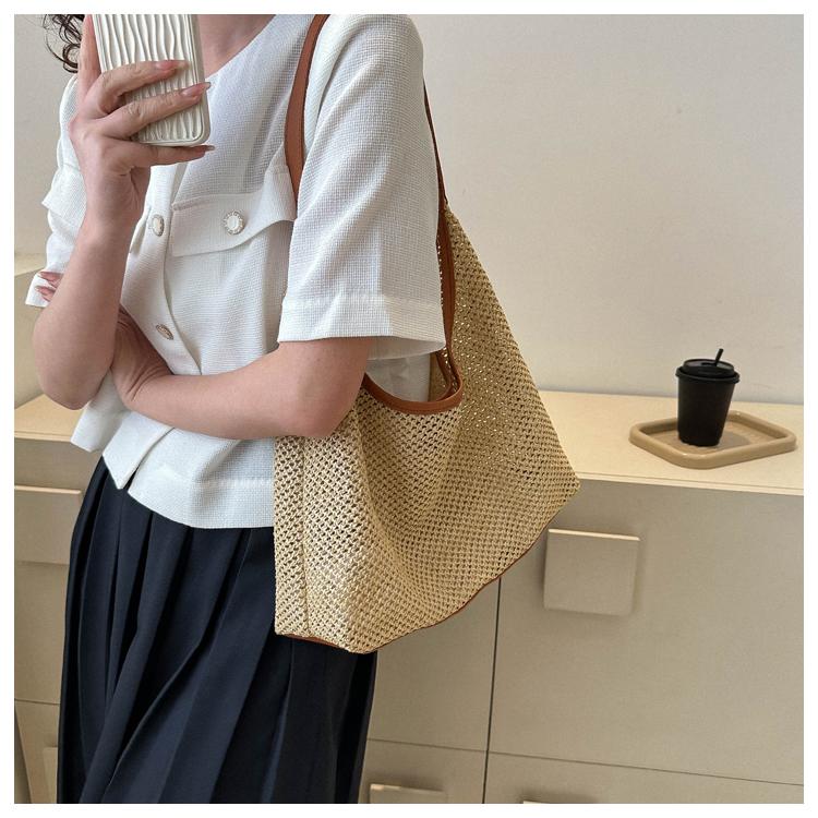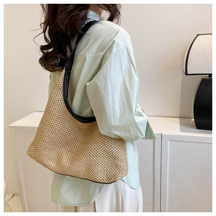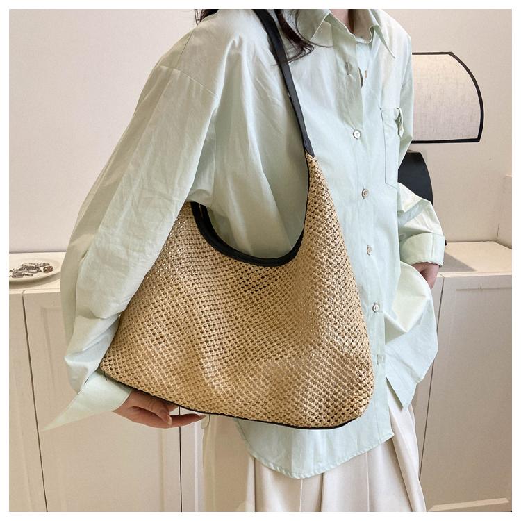 Bolso de mano tejido de verano para mujer, popular, estilo occidental, bandolera de paja para playa y viajes.