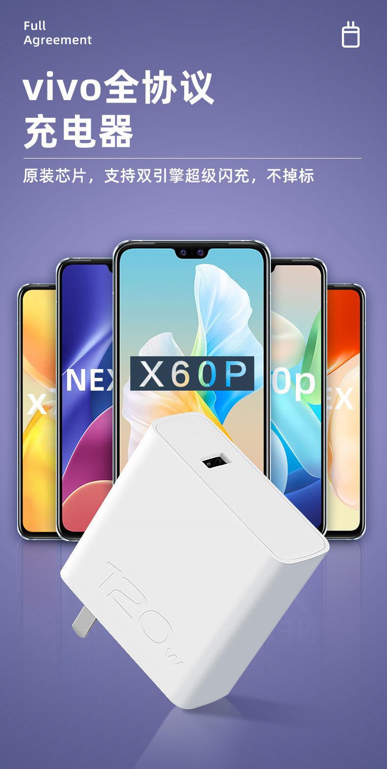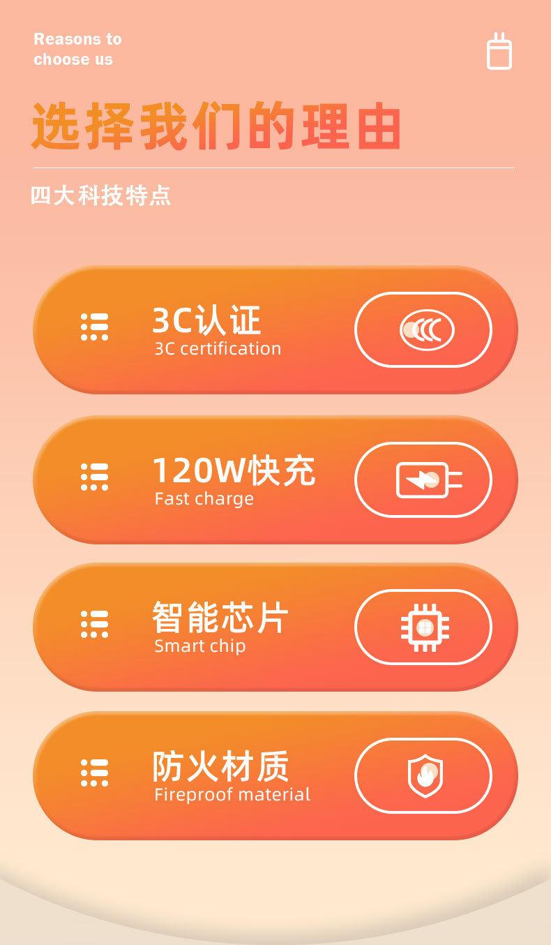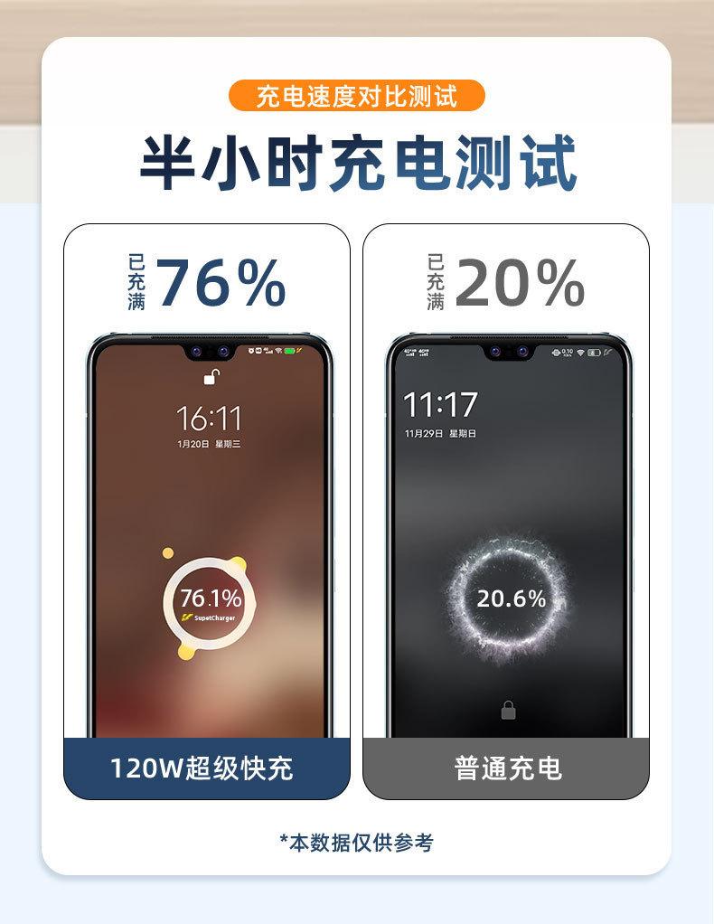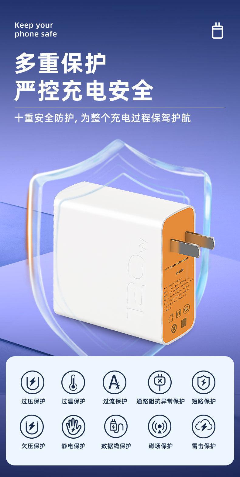 Adecuado para carga súper flash de 120W Adecuado para cargador de teléfono móvil de carga rápida de doble motor vivo traje de cable de datos cabeza