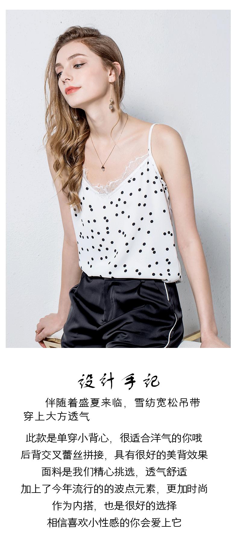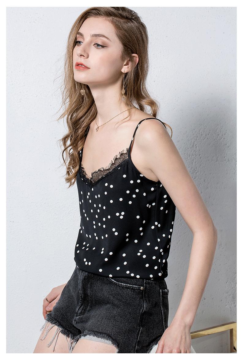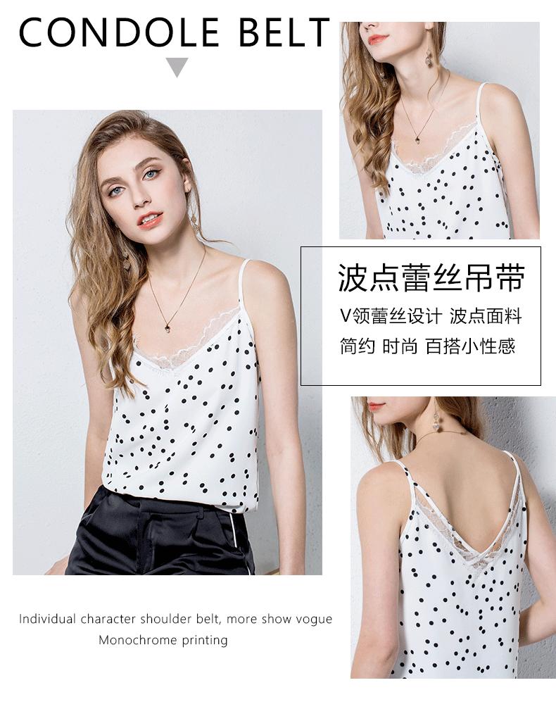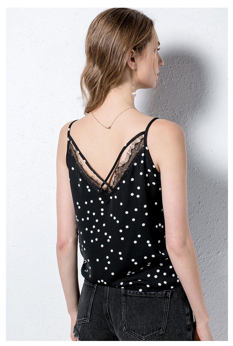 Camisola de verano con cuello en V para mujer, chaleco de lunares con espalda hermosa, prenda exterior sexy de encaje de gasa, top interior suelto de celebridades de Internet
