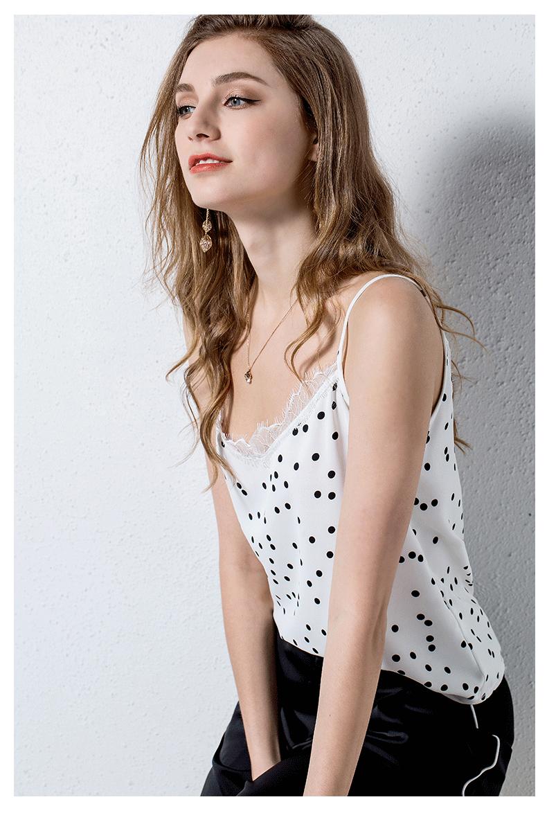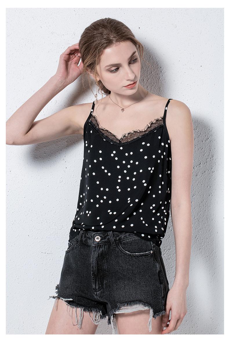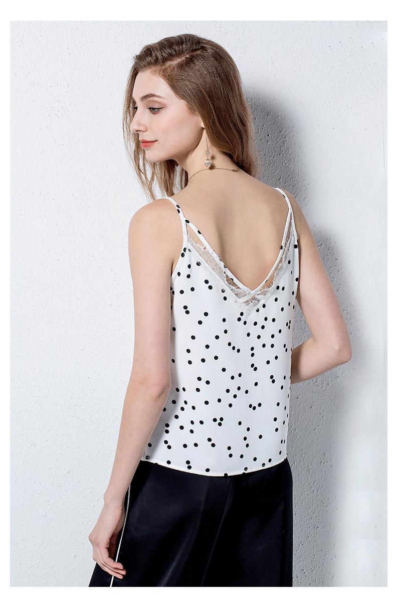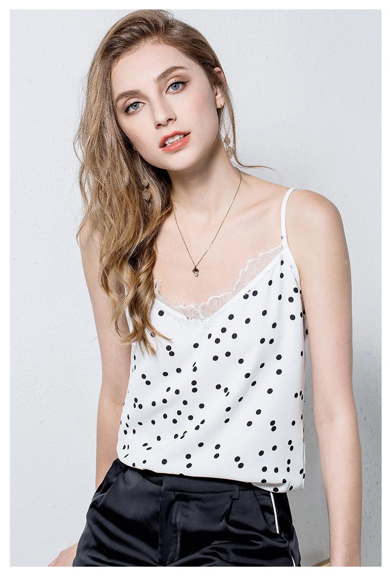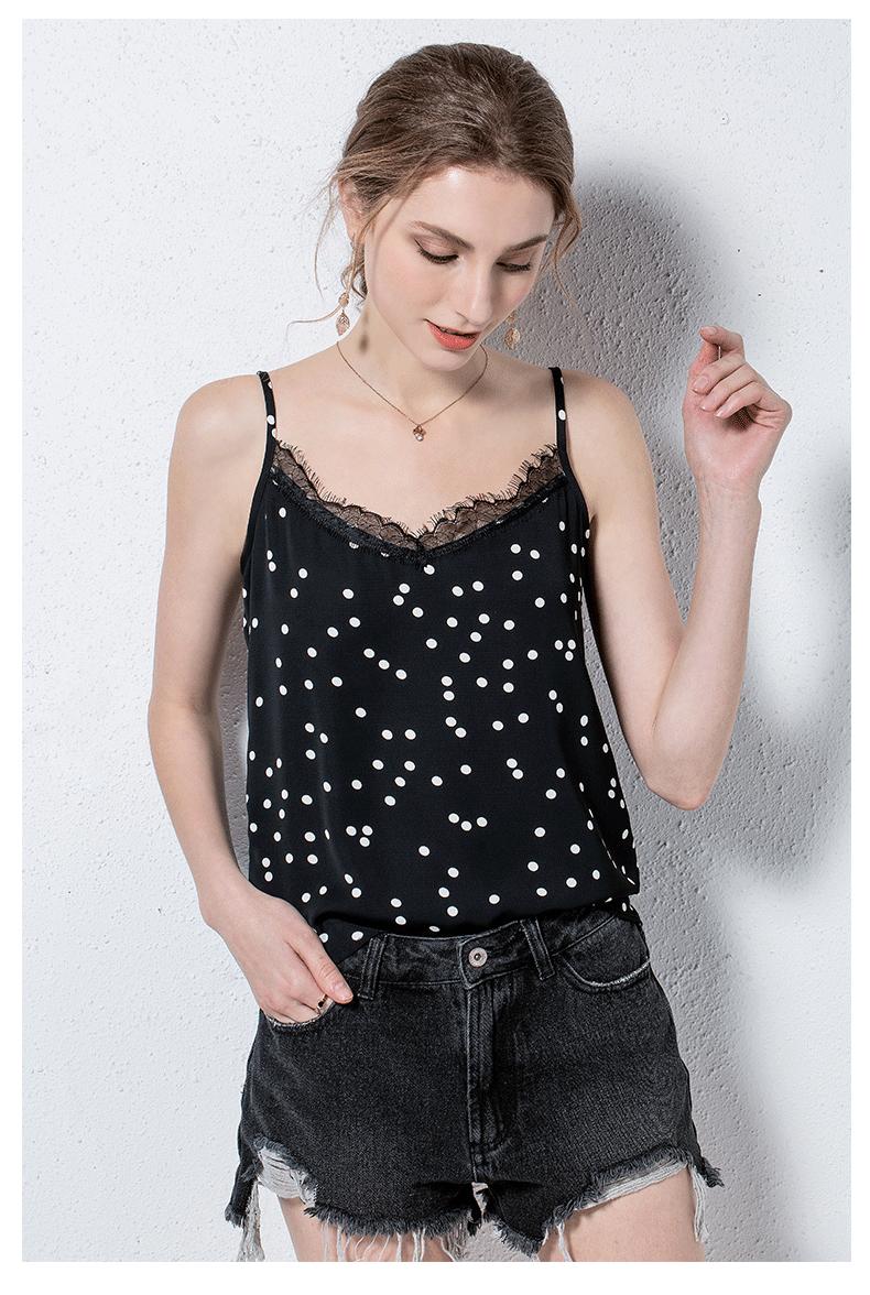 Camisola de verano con cuello en V para mujer, chaleco de lunares con espalda hermosa, prenda exterior sexy de encaje de gasa, top interior suelto de celebridades de Internet