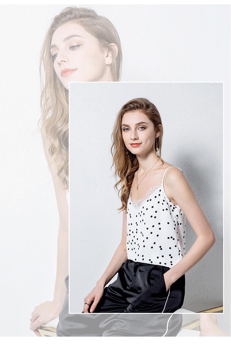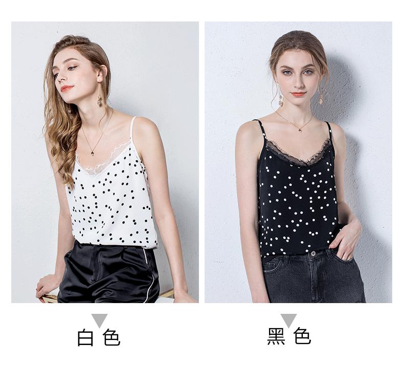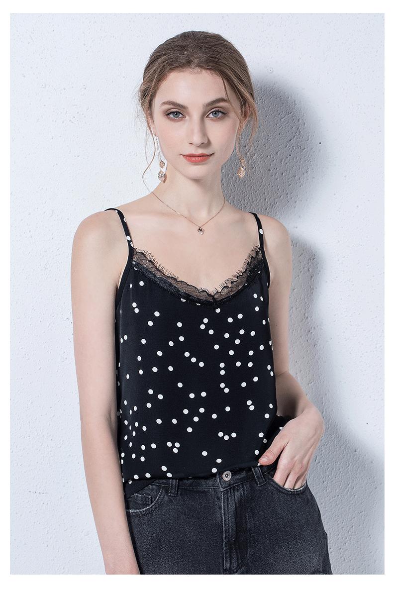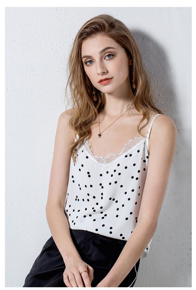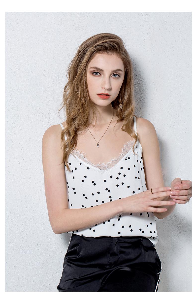 Camisola de verano con cuello en V para mujer, chaleco de lunares con espalda hermosa, prenda exterior sexy de encaje de gasa, top interior suelto de celebridades de Internet
