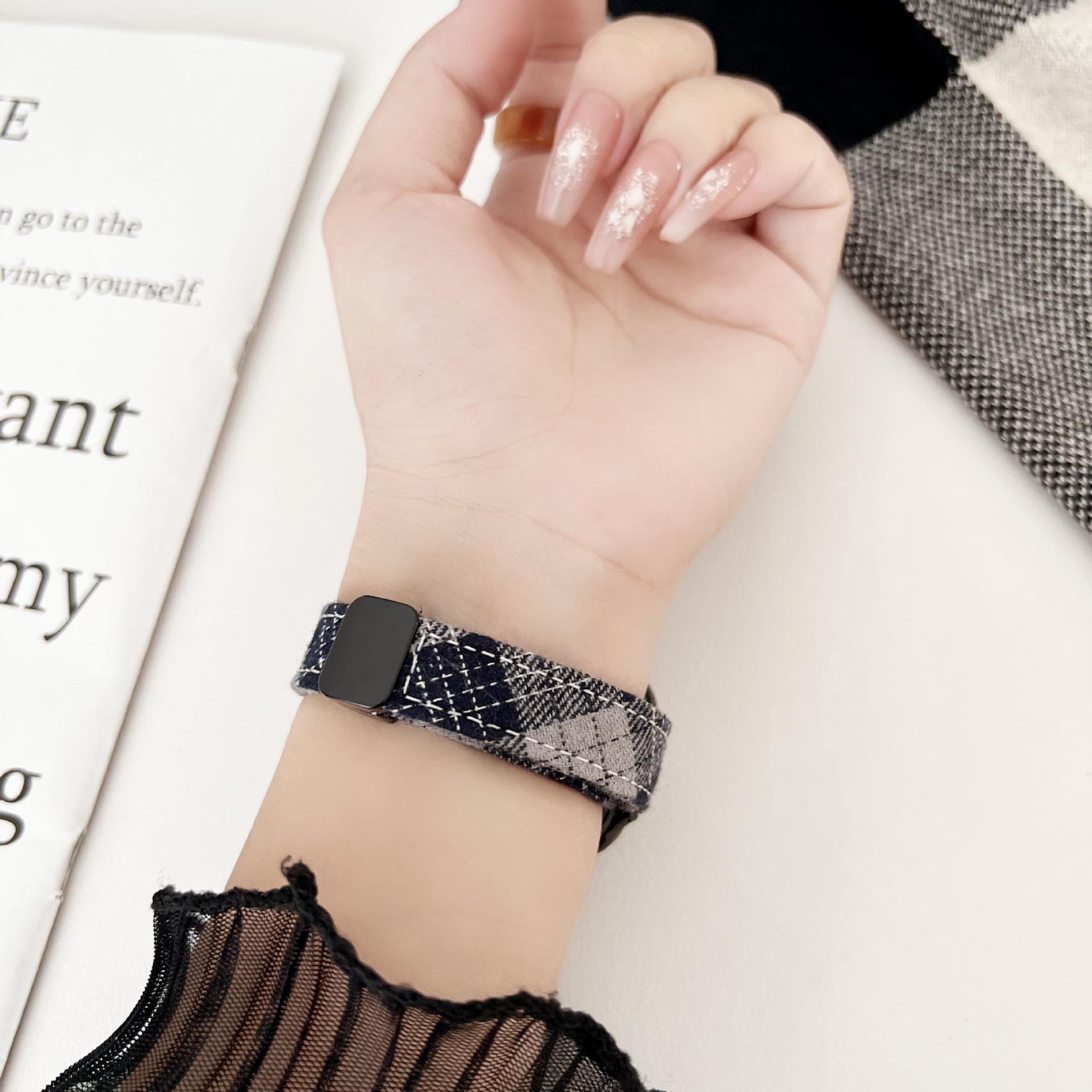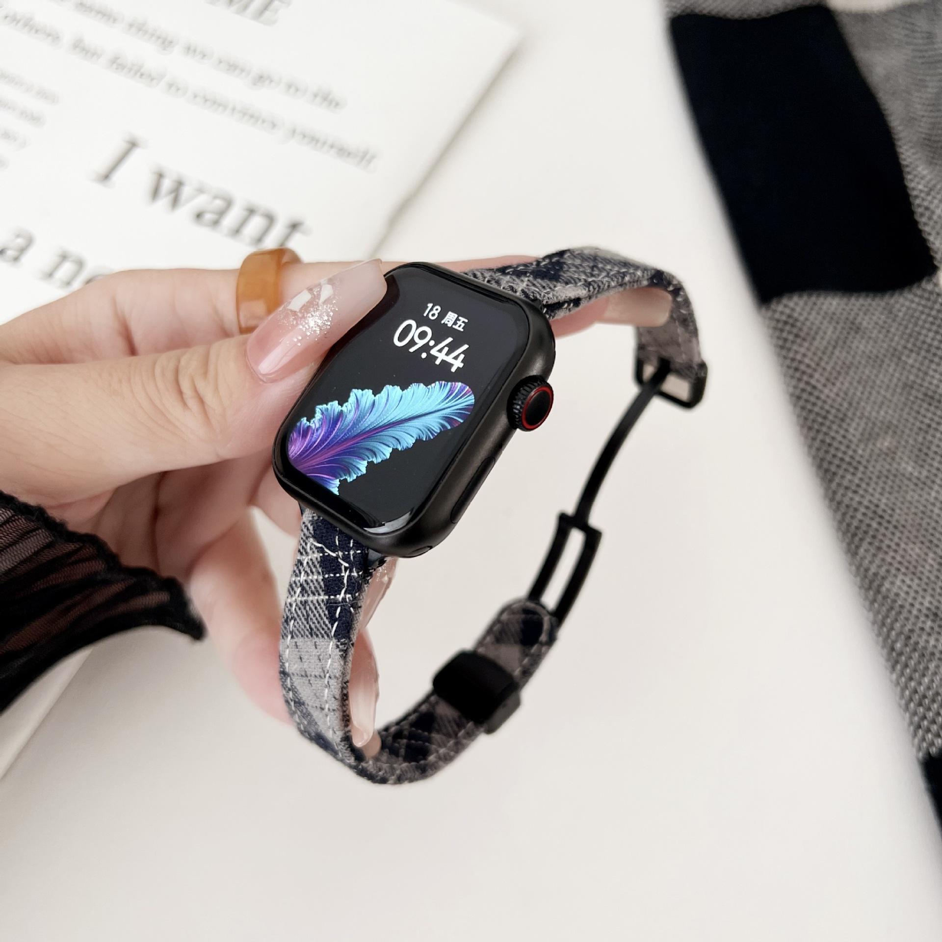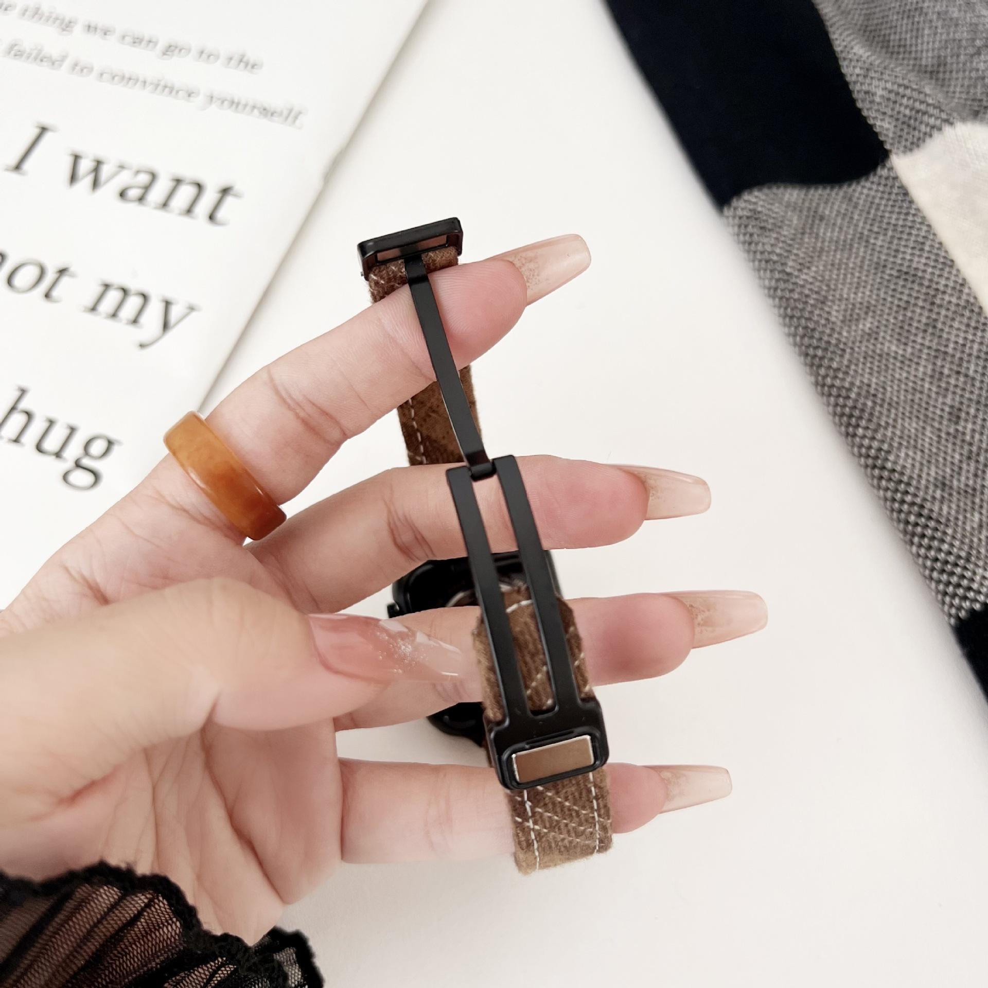 Correa de reloj Apple Watch 9 de lana a cuadros S8 otoño e invierno, iWatch 765 generación SE con succión magnética.