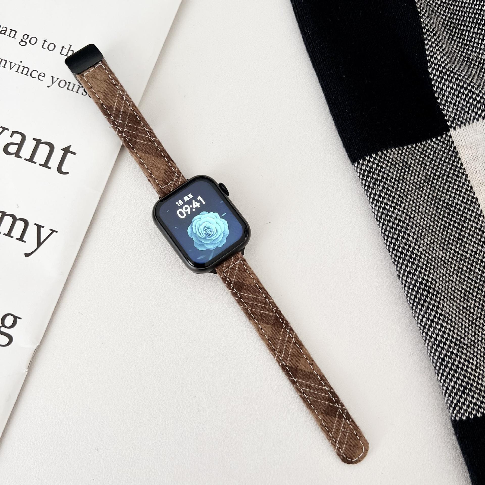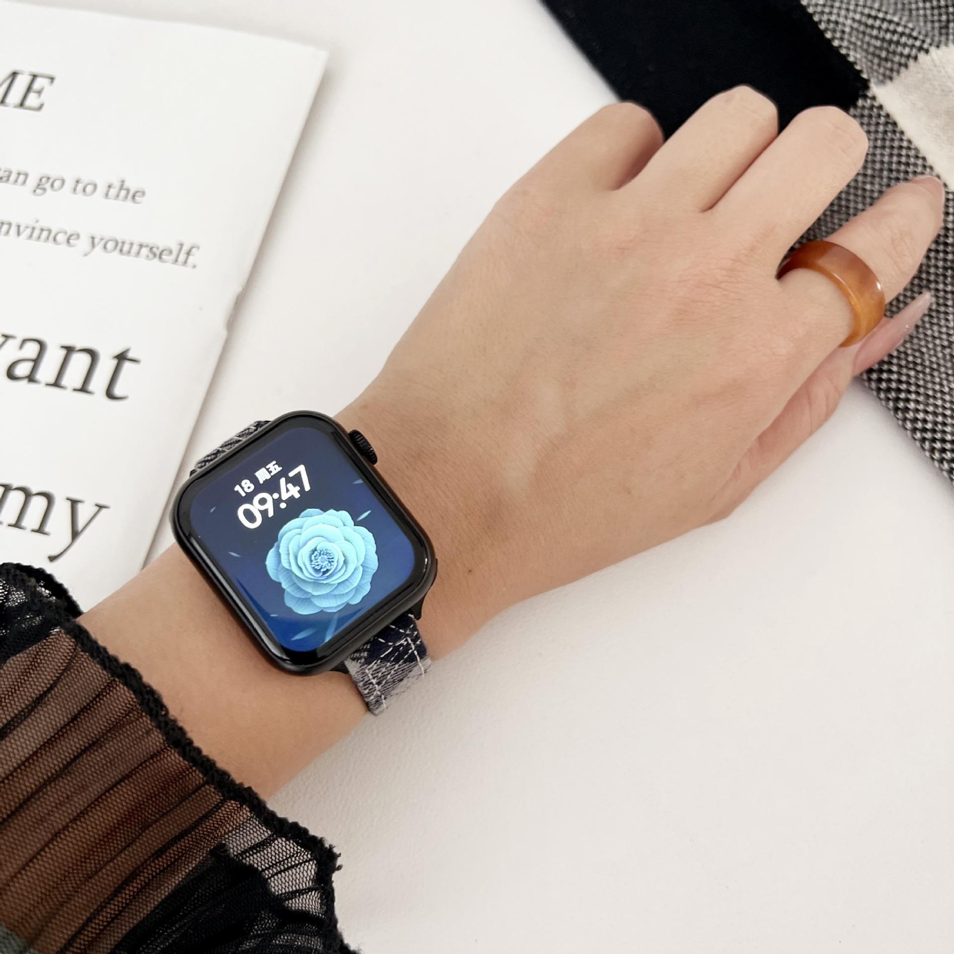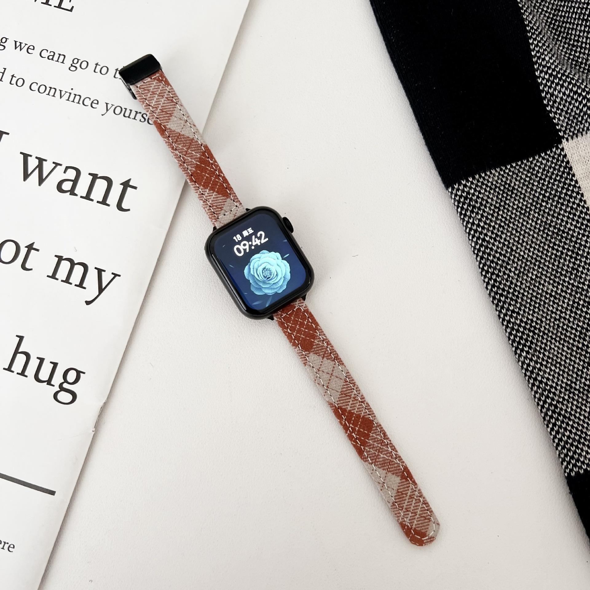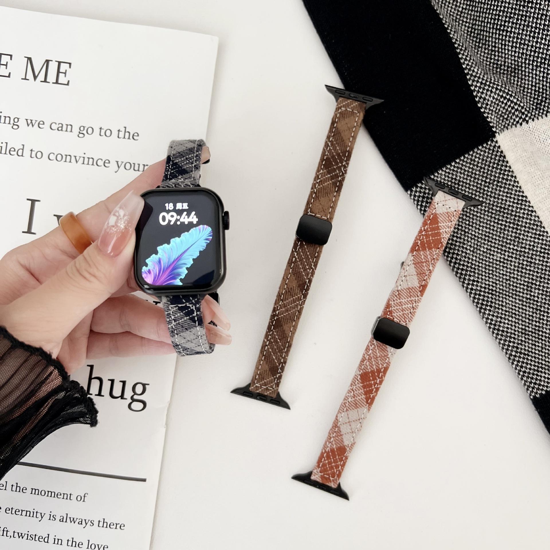 Correa de reloj Apple Watch 9 de lana a cuadros S8 otoño e invierno, iWatch 765 generación SE con succión magnética.