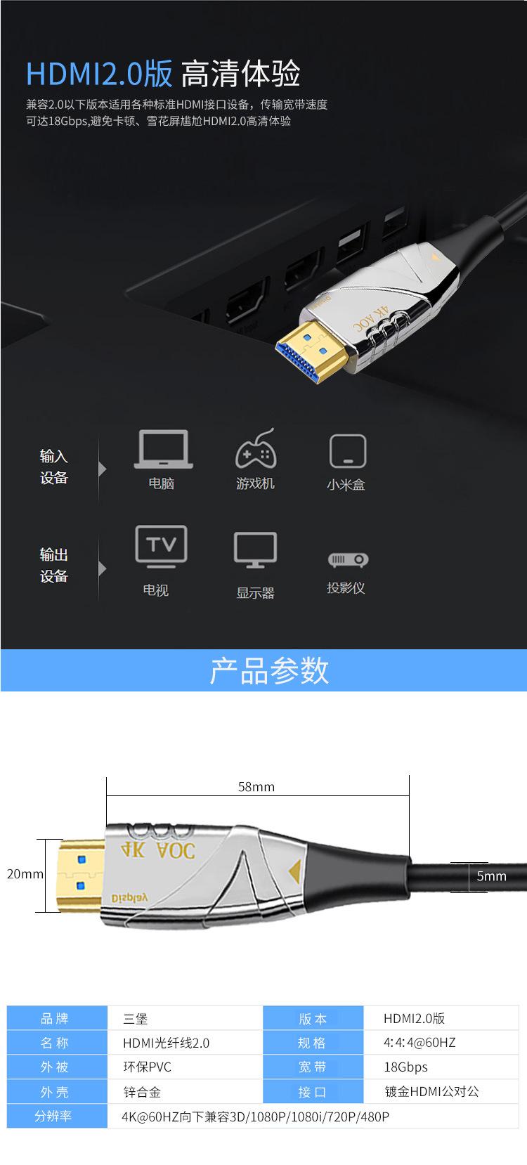 Cable HDMI HD versión 2.0 de Sanbao para monitor de TV, computadora, cable HDMI 4K HD, cable HDMI de fibra