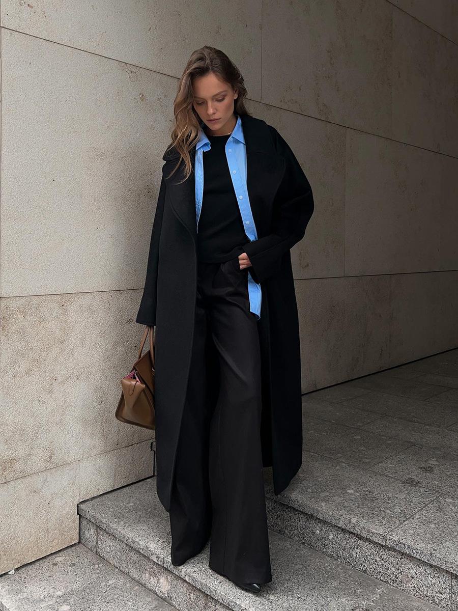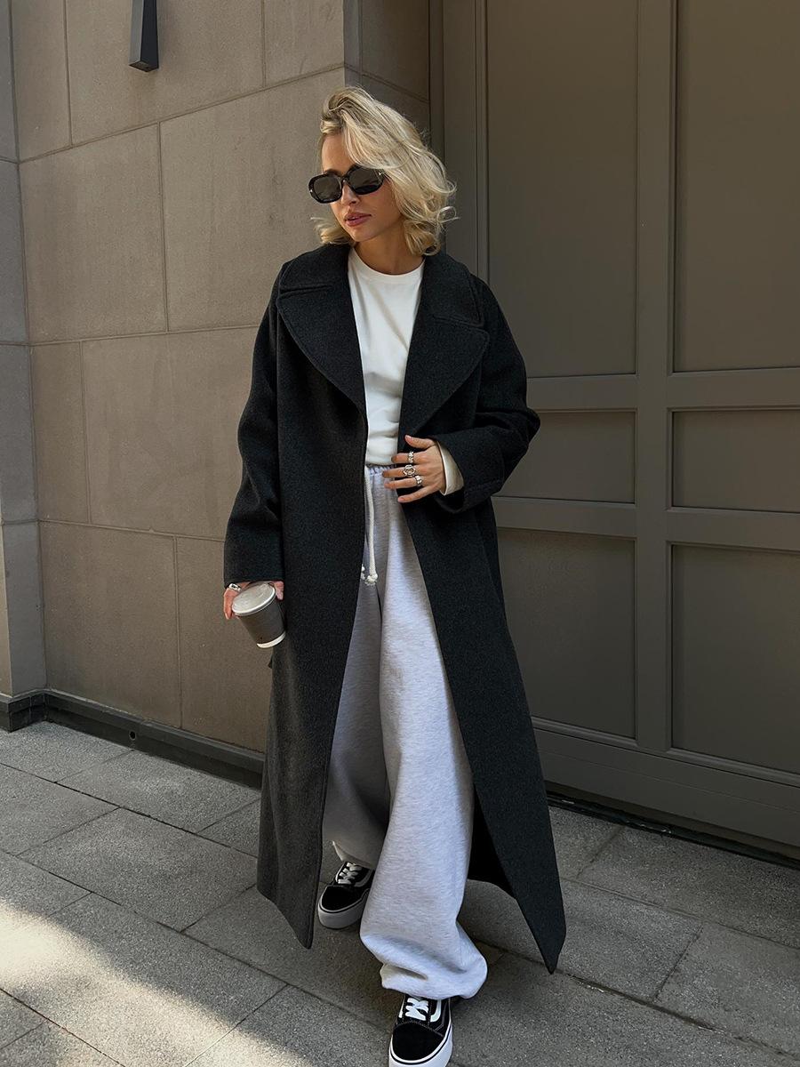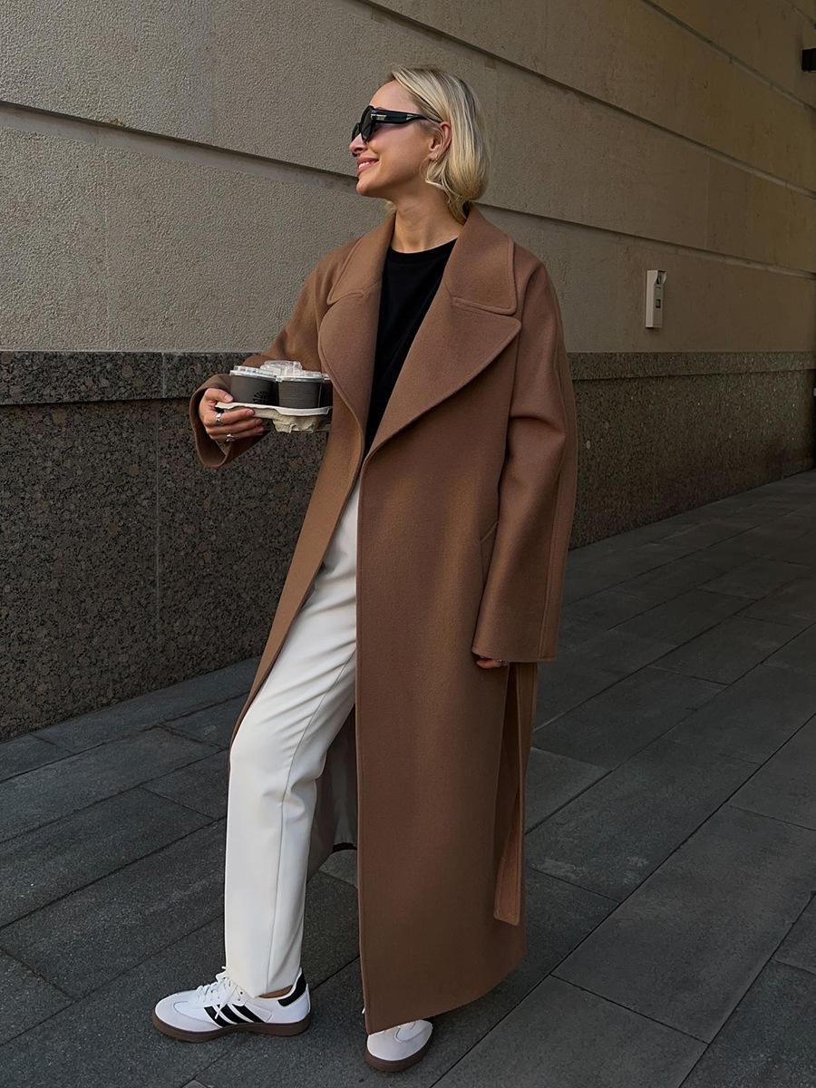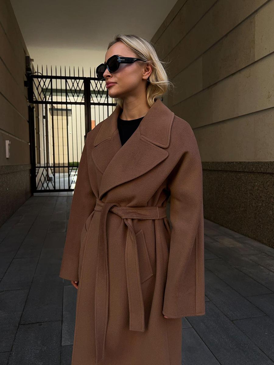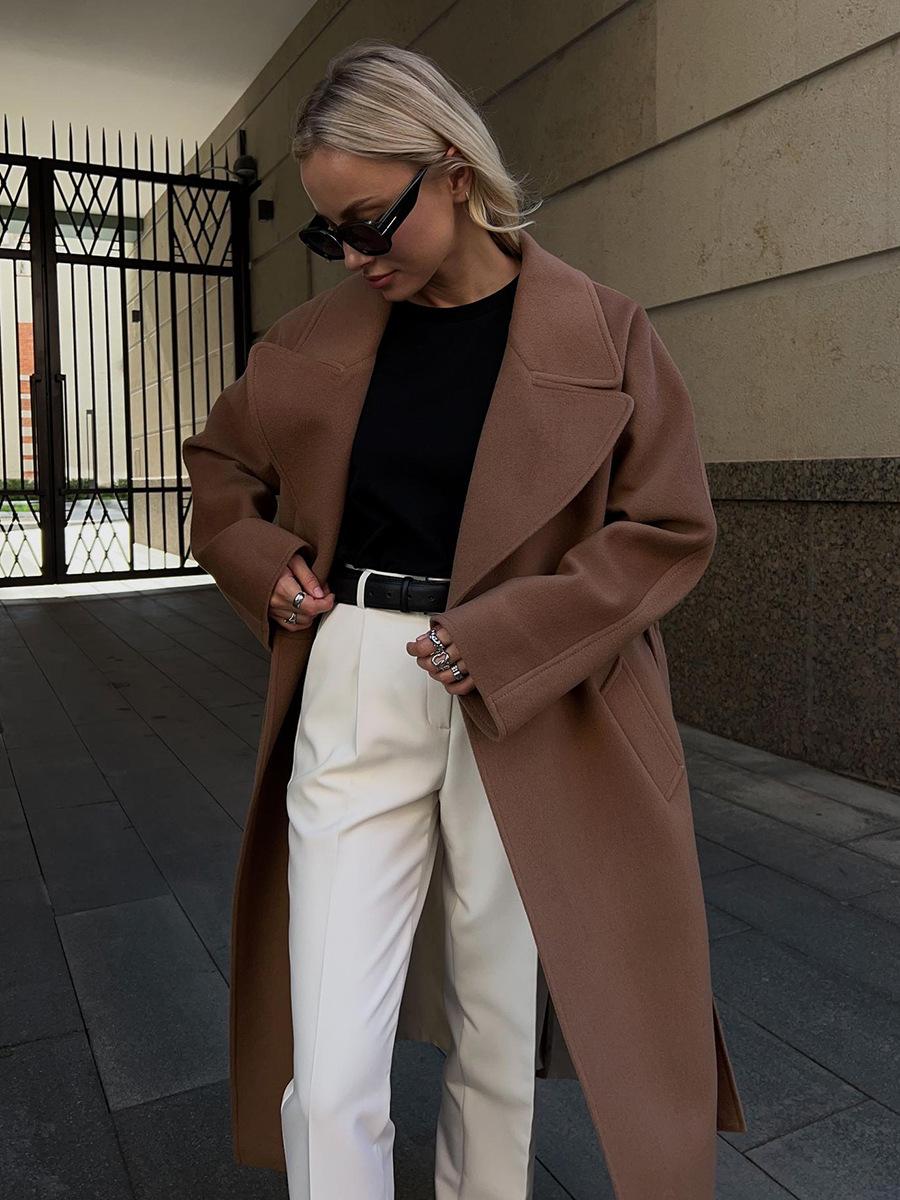 Abrigo de Lana Transfronterizo para Mujer Europeo y Americano Otoño e Invierno 2025 Holgado Manga Raglán Lana de Doble Cara Maillard