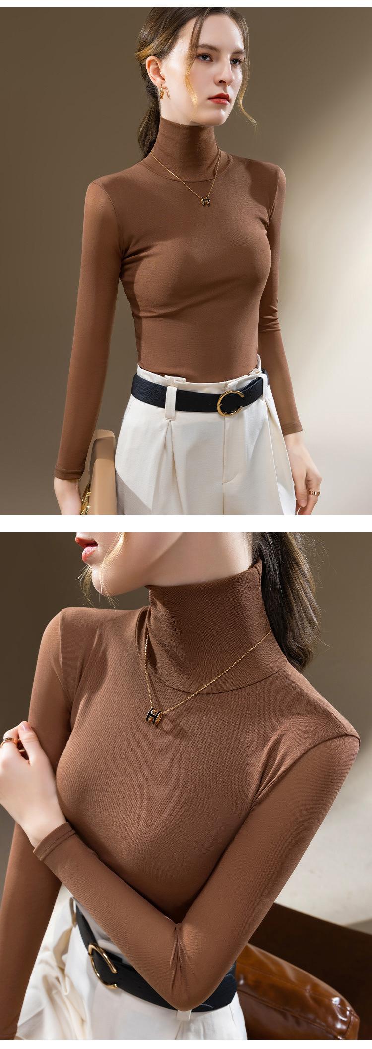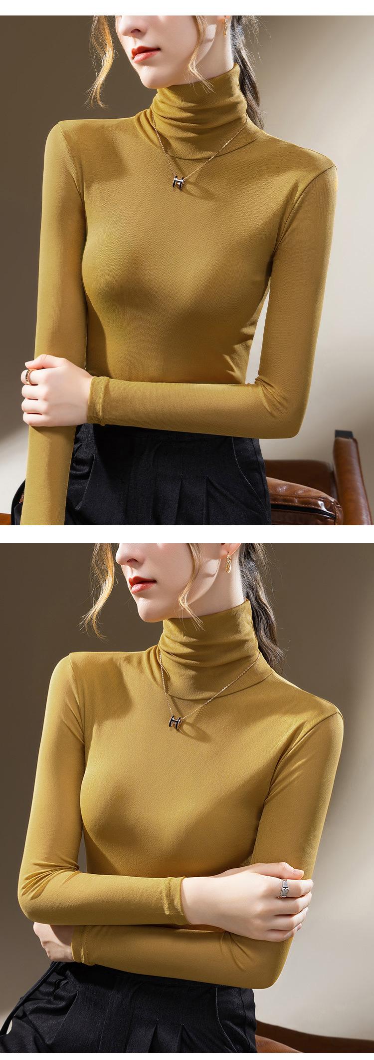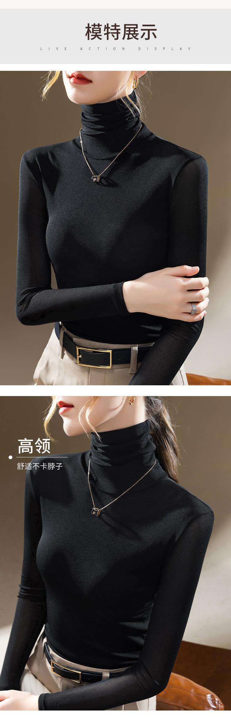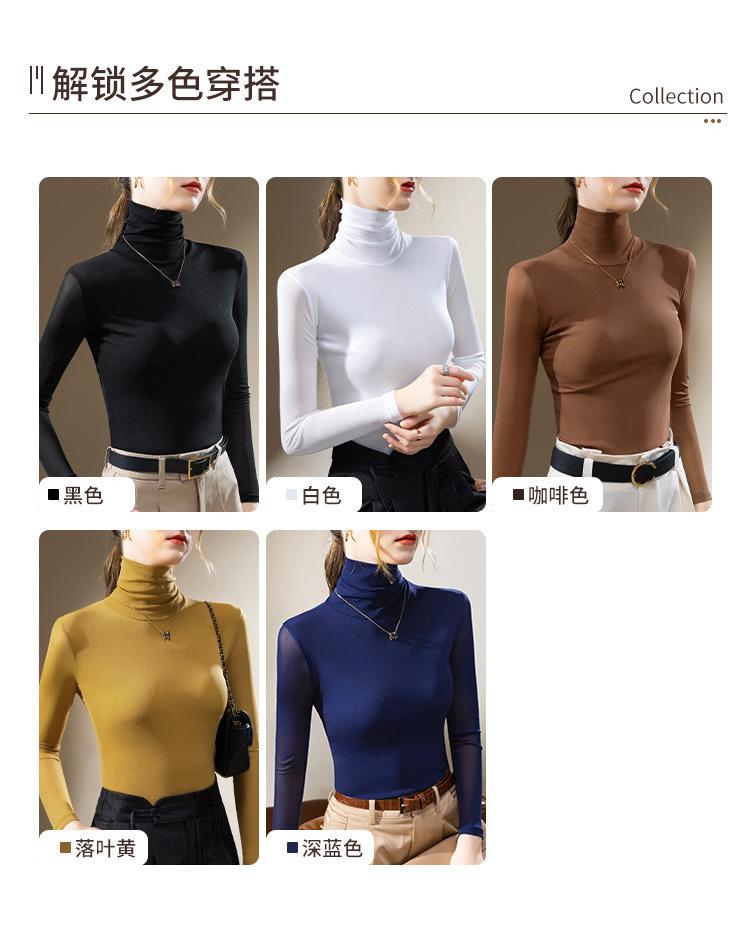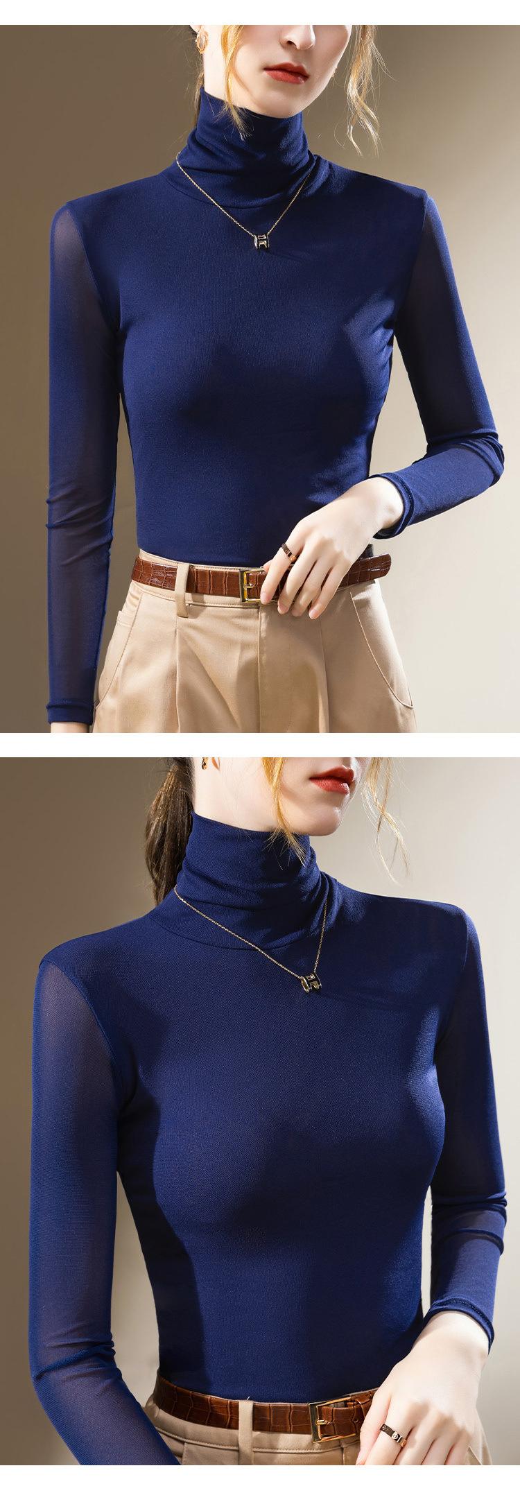 Compra Camisa Base de Malla de Cuello Alto para Mujer 2024 Nueva Ropa Europea para Mujer Elegante Camisa de Manga Larga Estilo Occidental Top Interior Elástico al por mayor en Joom.pro