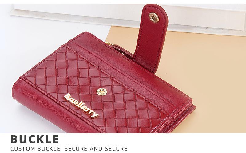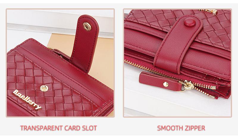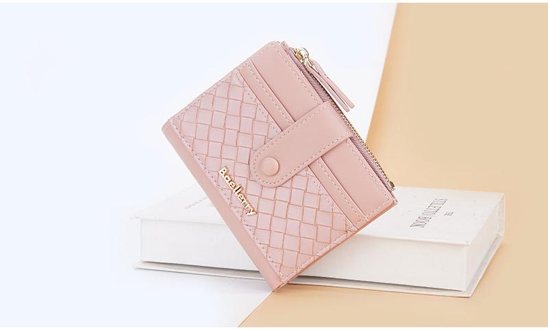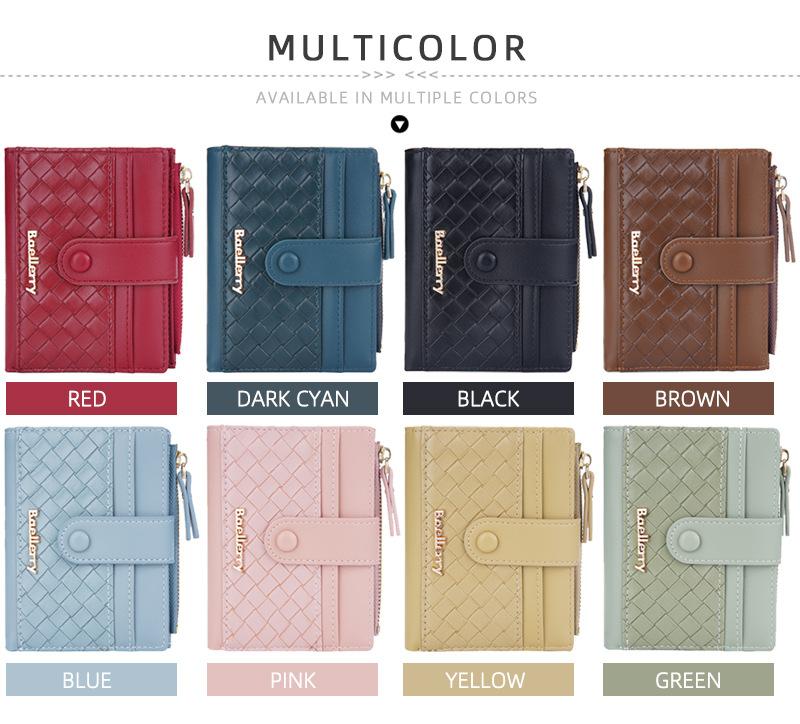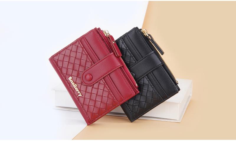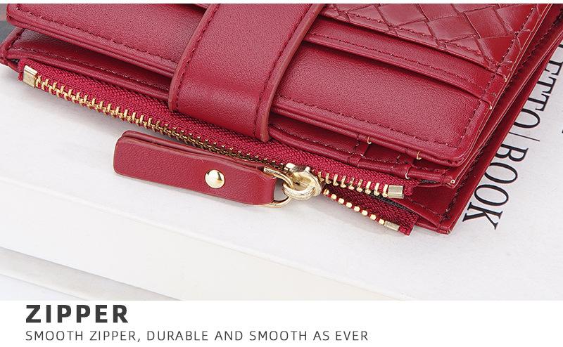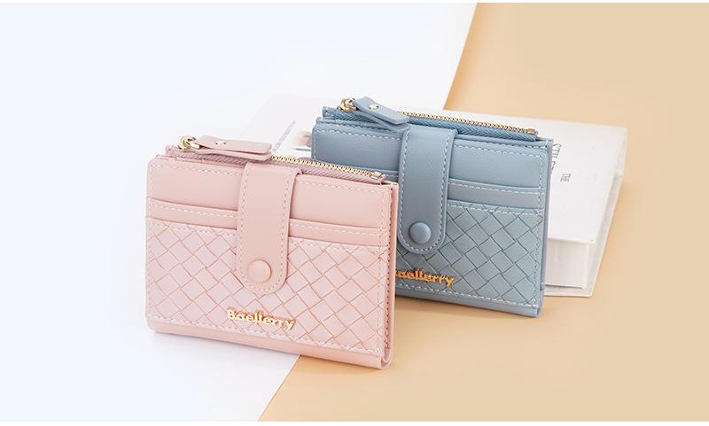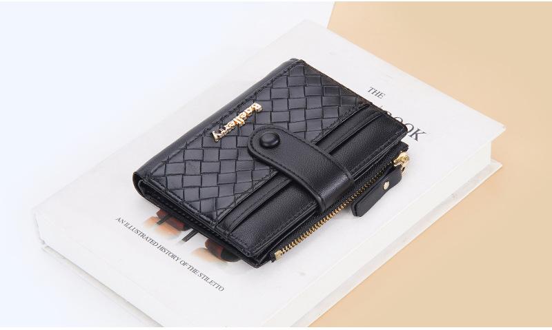 Cartera corta nueva para mujer, estilo coreano, con patrón tejido, hebilla, cremallera, monedero, tarjetero, billetera para mujer.