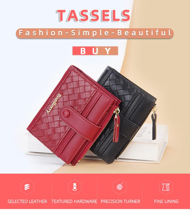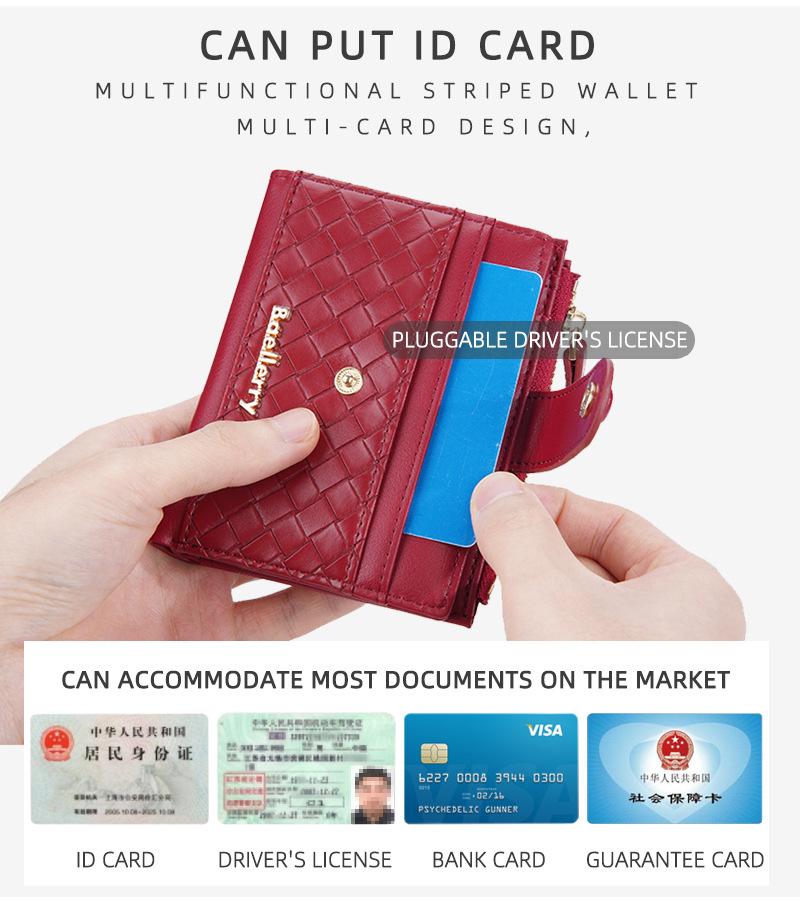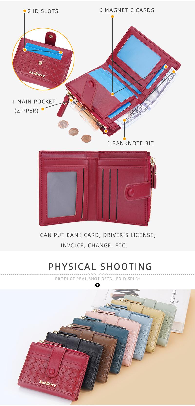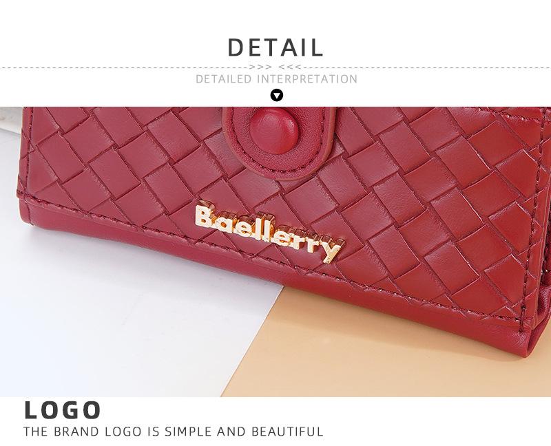 Cartera corta nueva para mujer, estilo coreano, con patrón tejido, hebilla, cremallera, monedero, tarjetero, billetera para mujer.