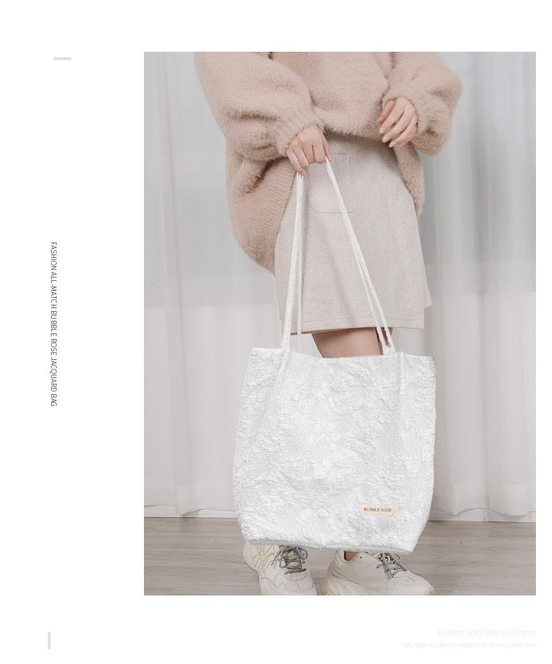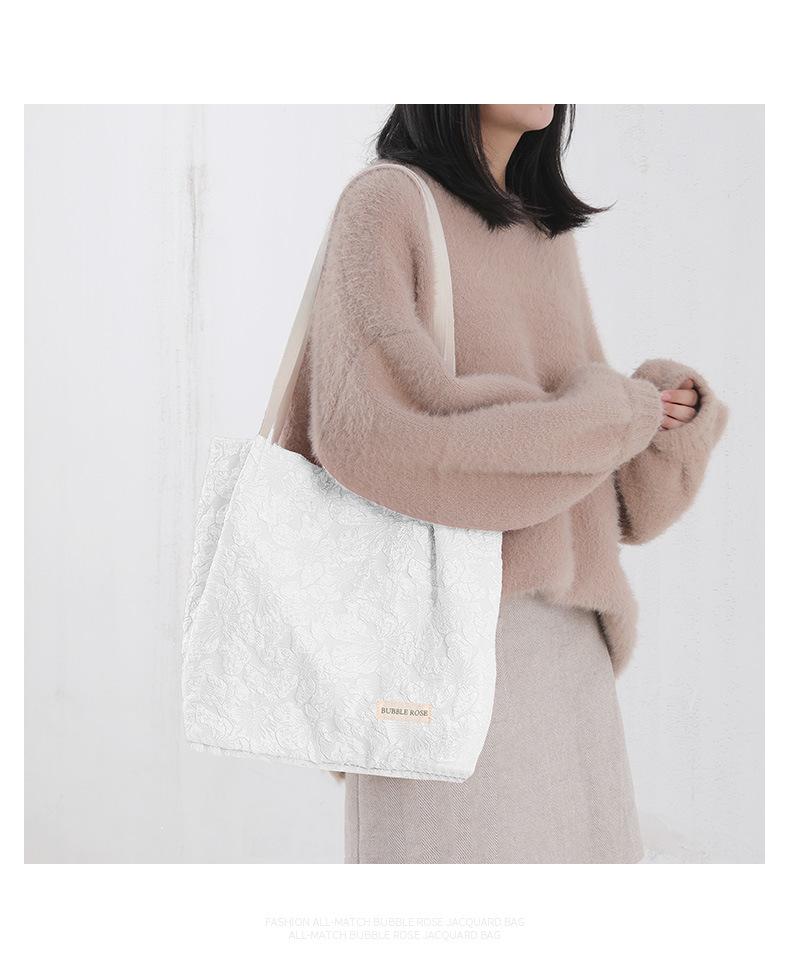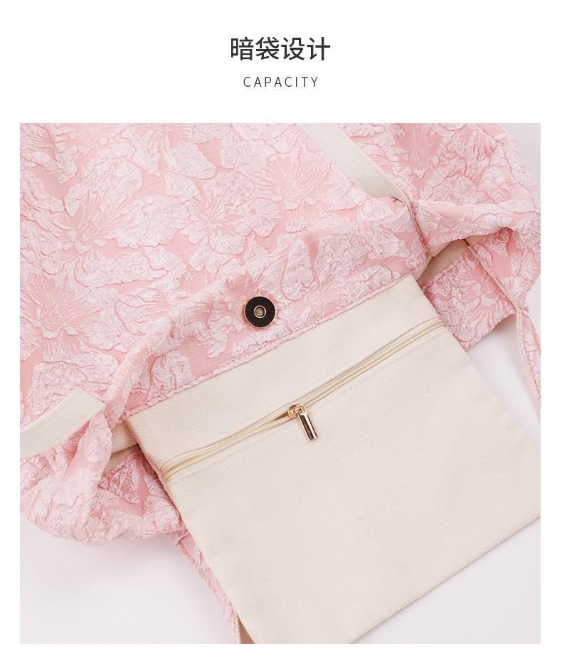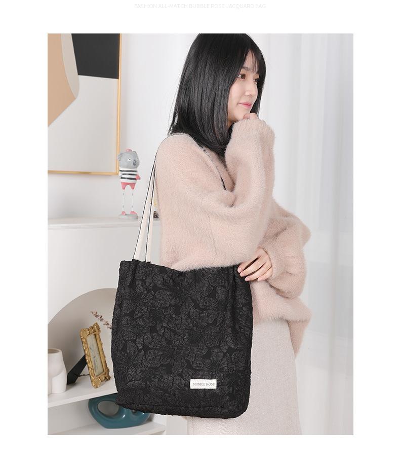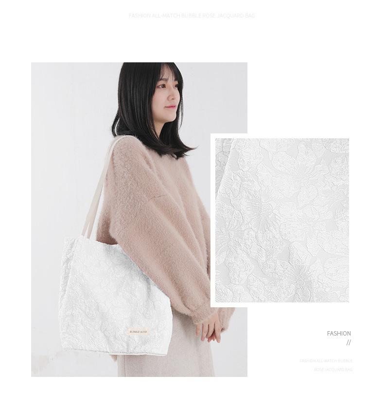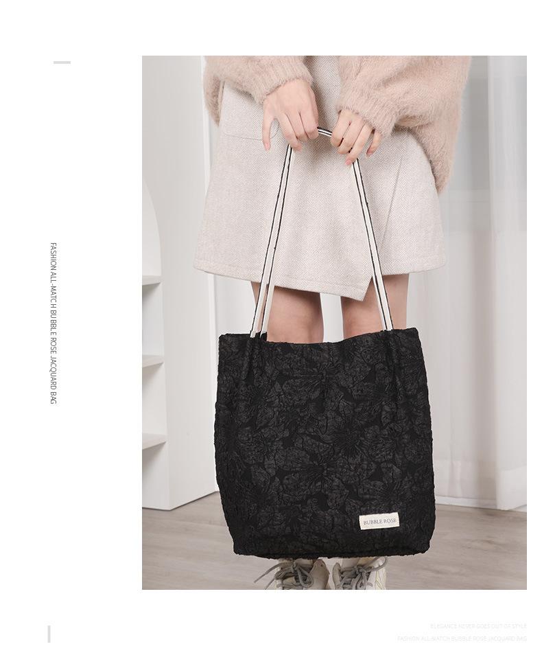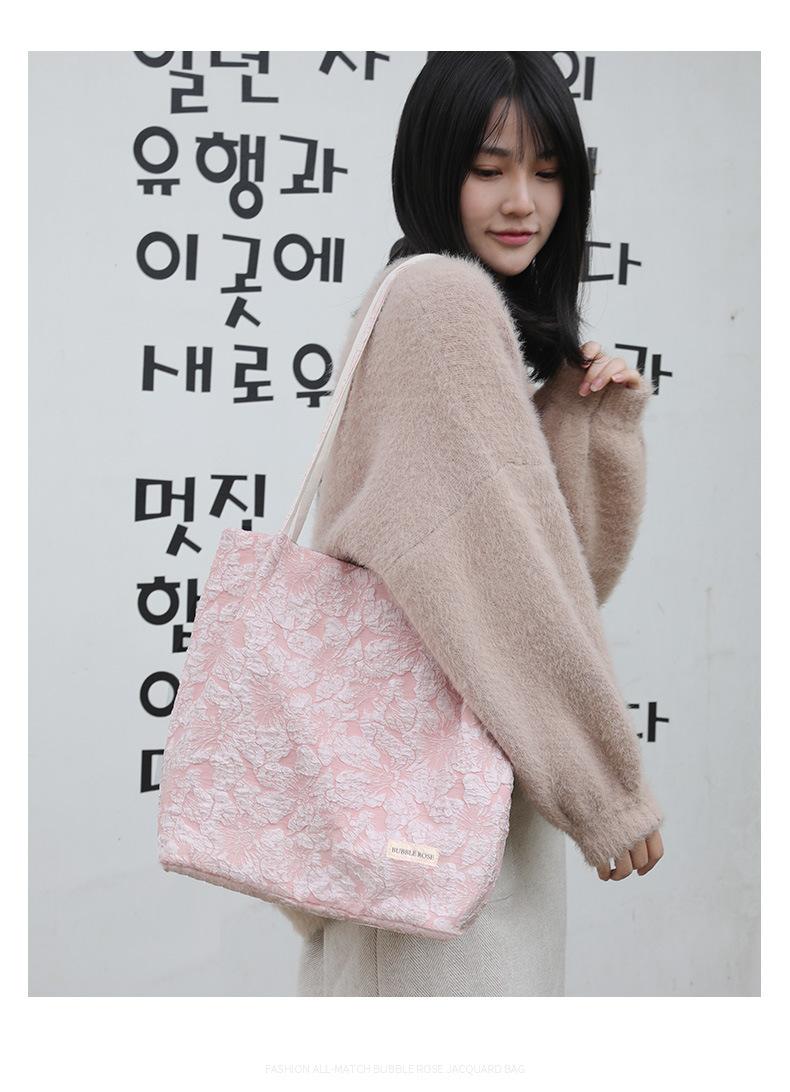 Bolso de hombro de jacquard de estilo coreano de celebridades de Internet, bolso de lona con diseño de nicho de gran capacidad y flores estéreo, bolso de mano para estudiantes.