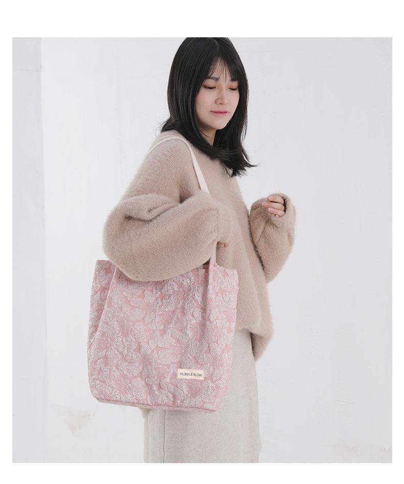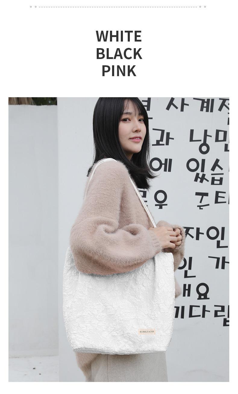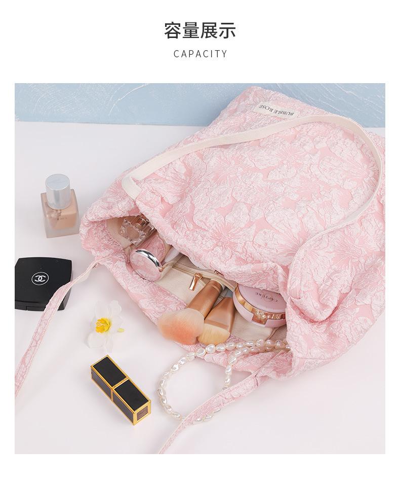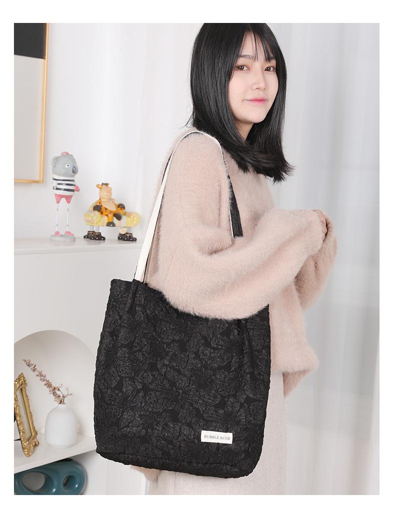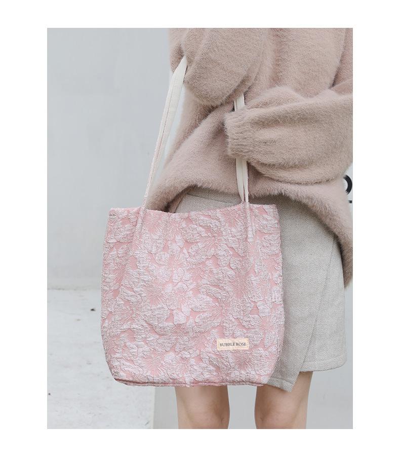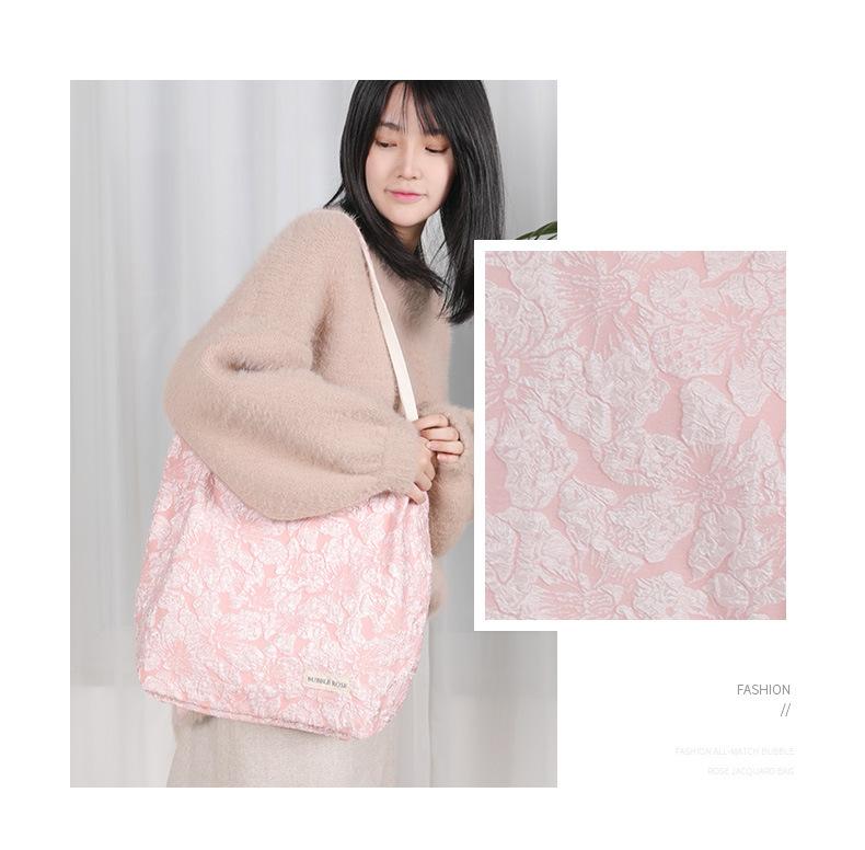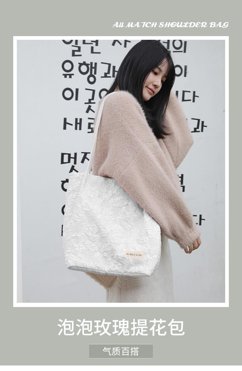Bolso de hombro de jacquard de estilo coreano de celebridades de Internet, bolso de lona con diseño de nicho de gran capacidad y flores estéreo, bolso de mano para estudiantes.