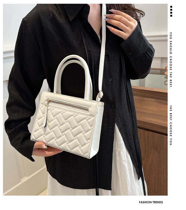 Bolso de Mano para Mujer Estilo Coreano 2025 Verano Nuevo Estilo Estilo Extranjero Bandolera de Un Hombro Color Puro Bolso Cuadrado Pequeño para Mujer