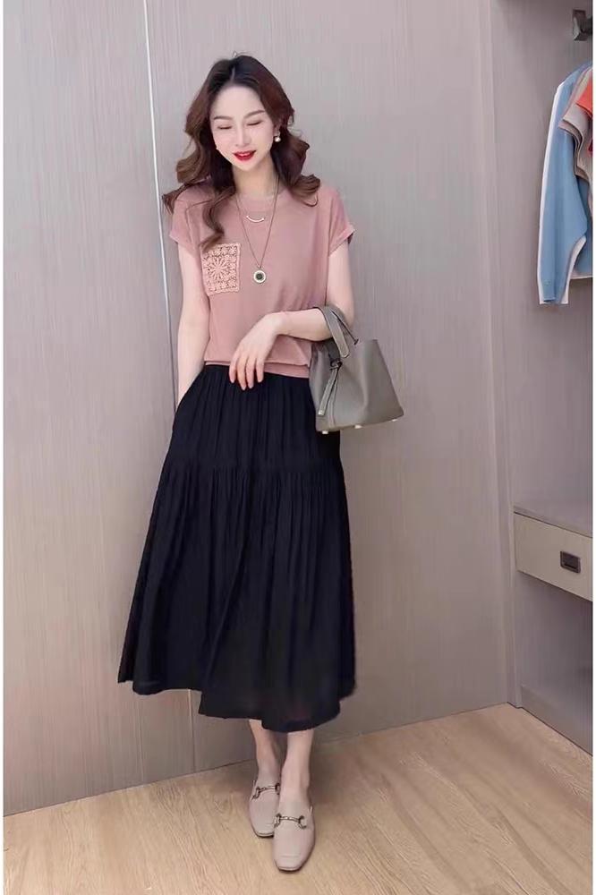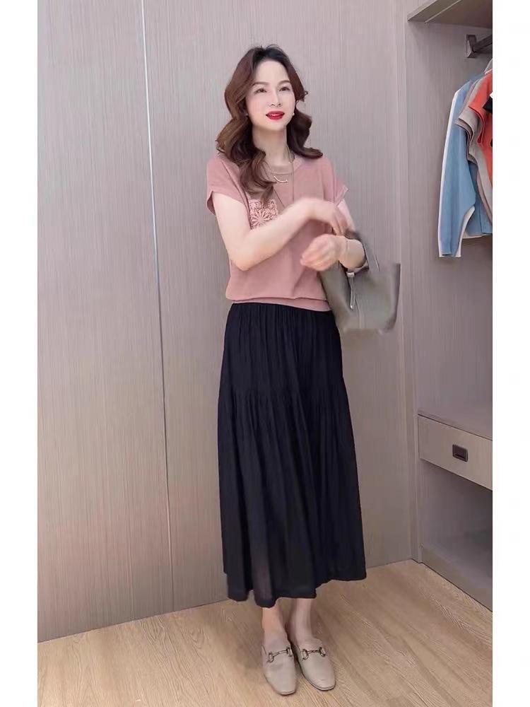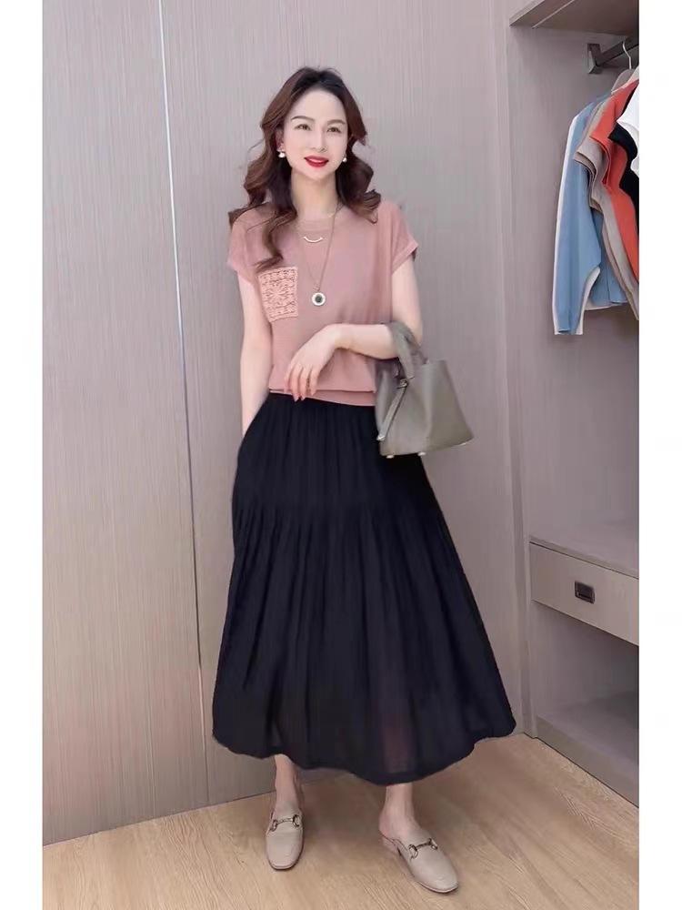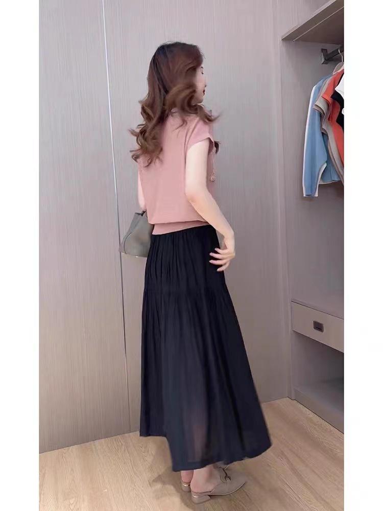 Verano 2024 nuevo moda de alta gama elegante retro estilo Hong Kong reductor de edad top rosa falda traje ajustado