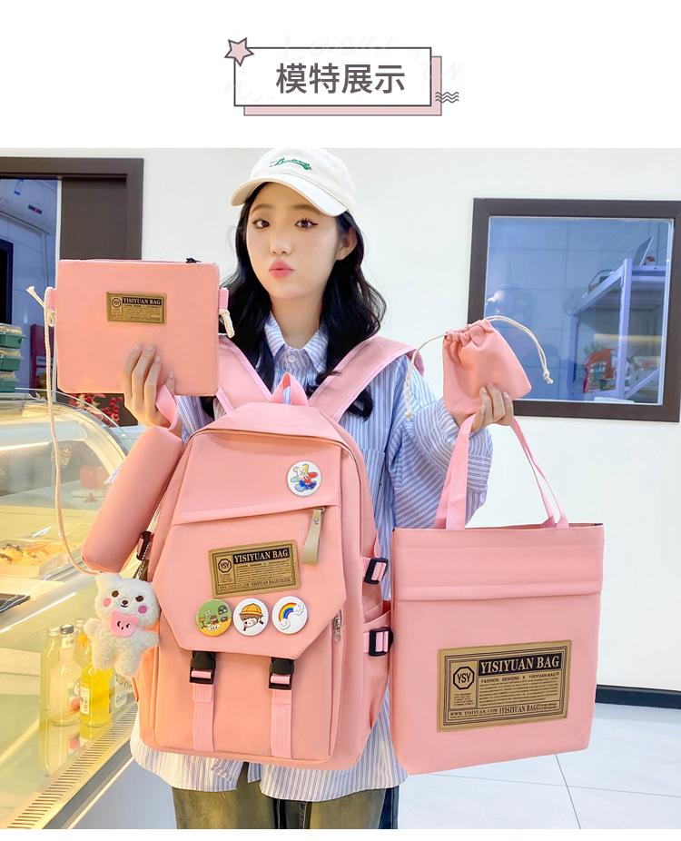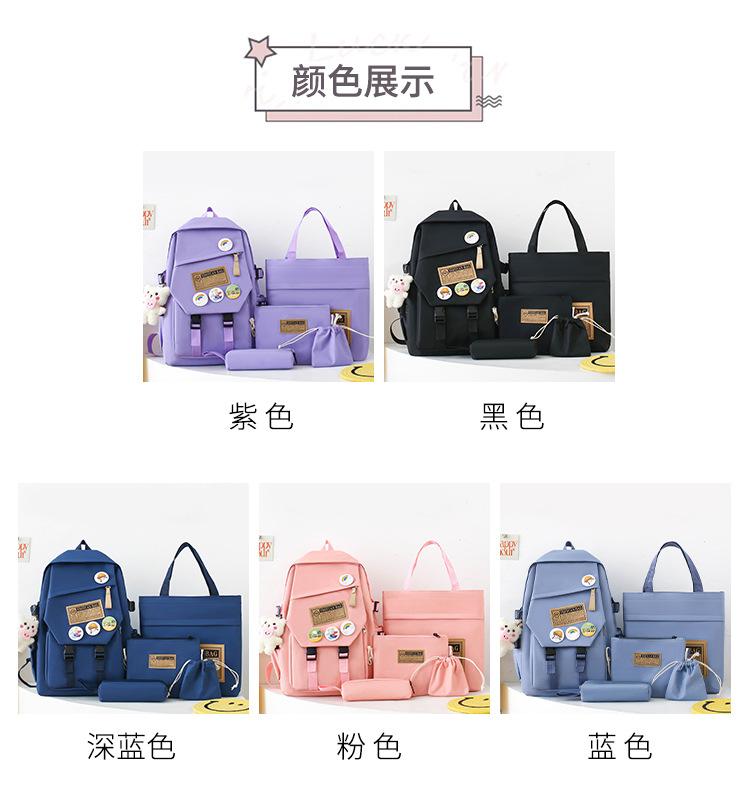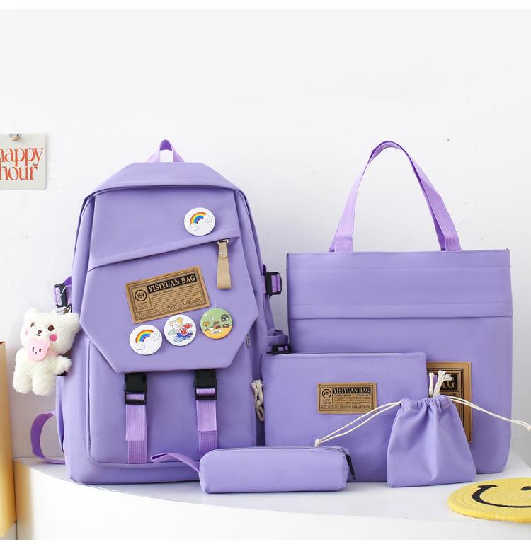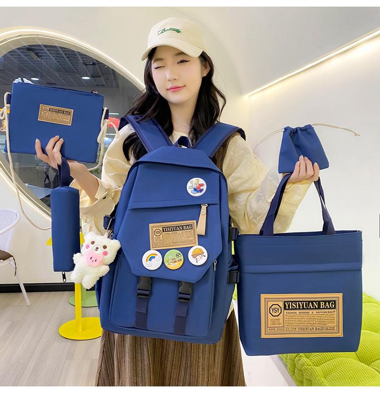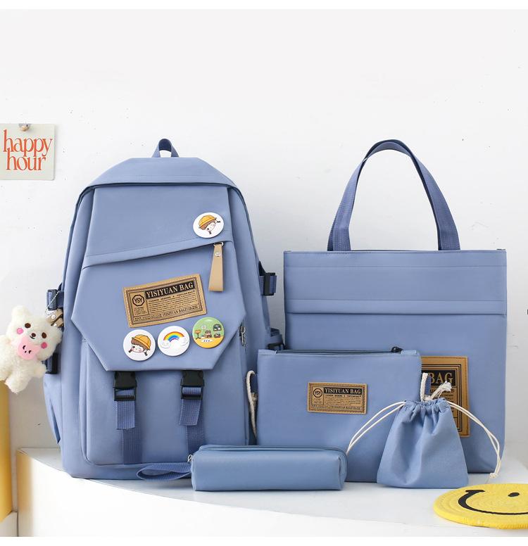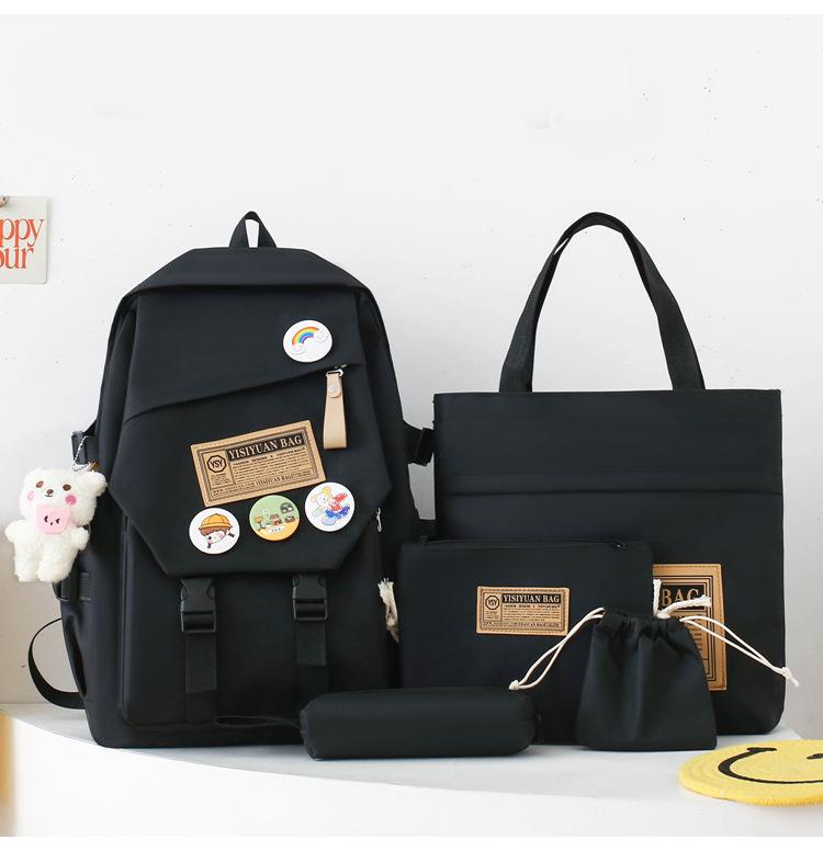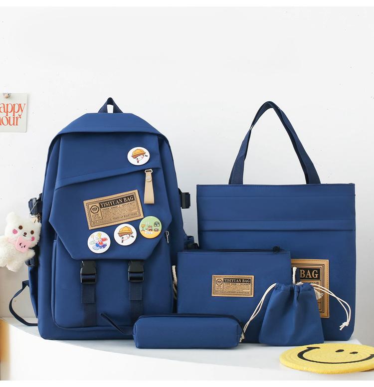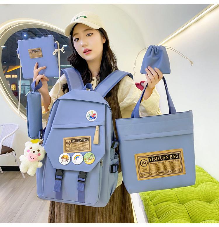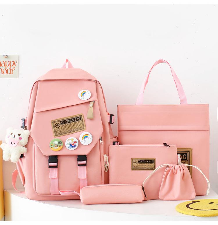 Nueva Mochila Escolar para Estudiante de Secundaria de Nailon Simple de Color Sólido, Mochila de Campus, Juego de Cinco Piezas, Mochila Multifuncional para Tutorías