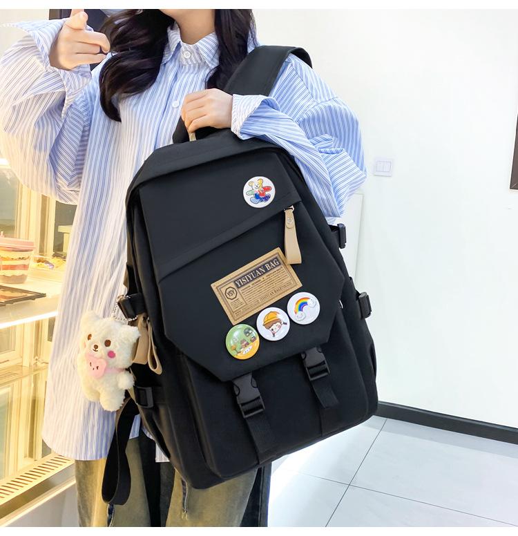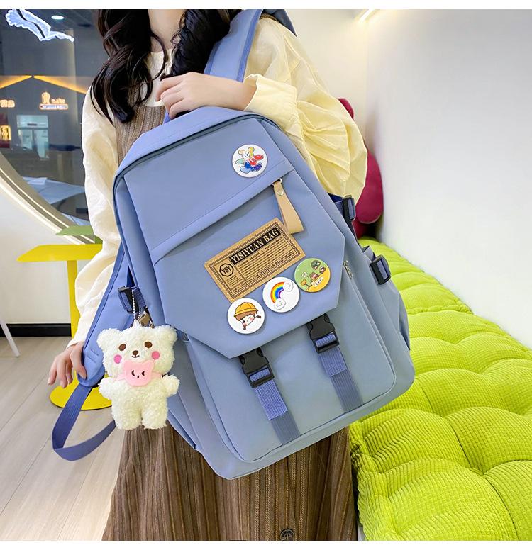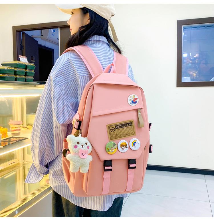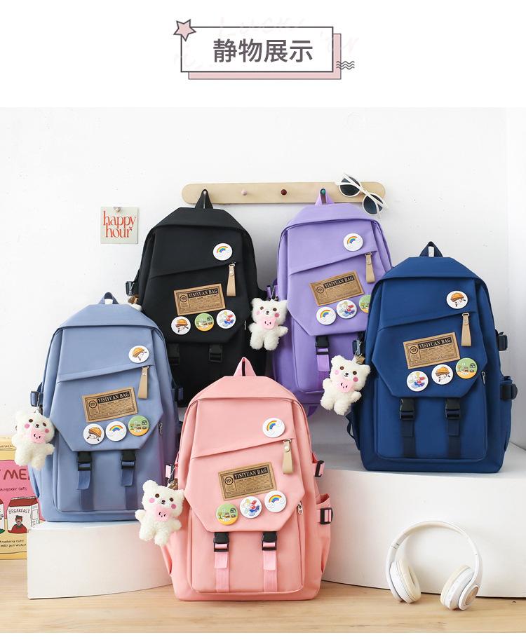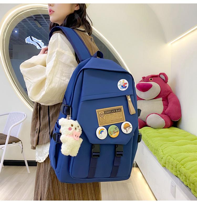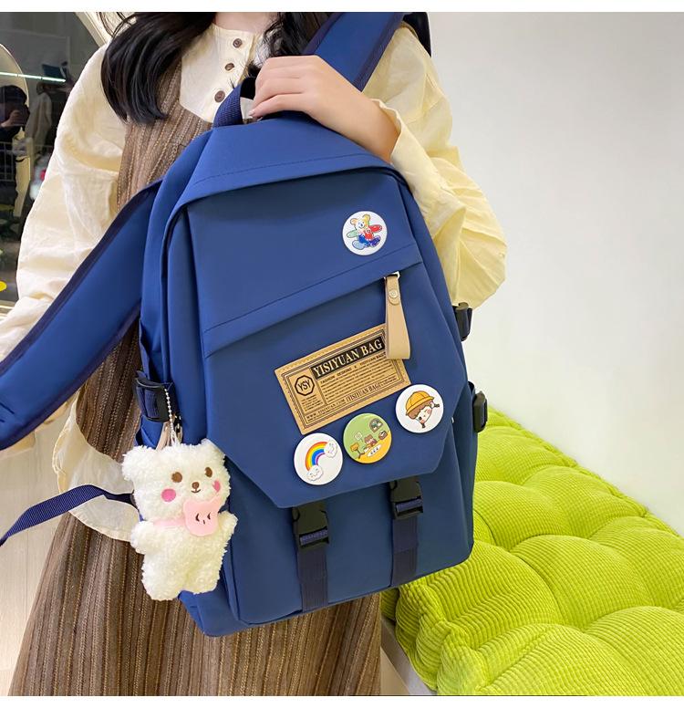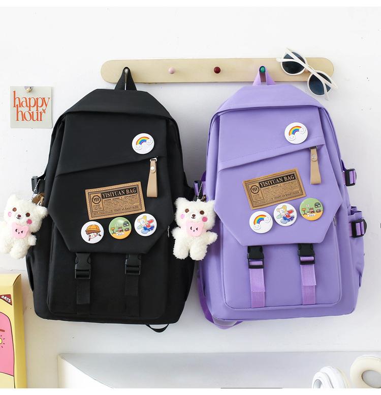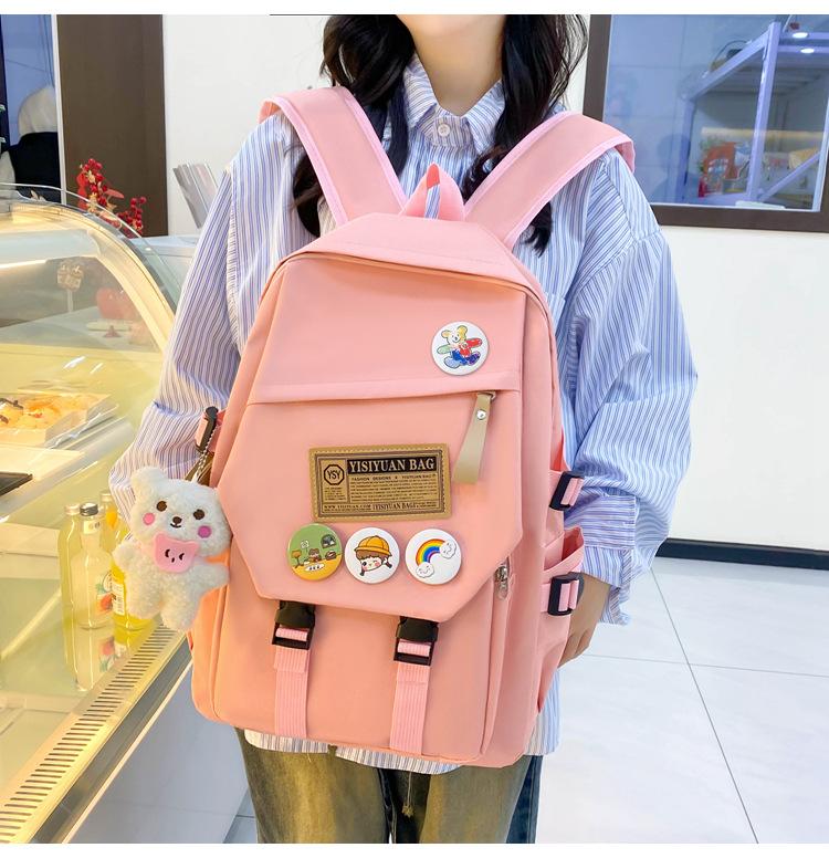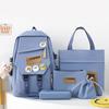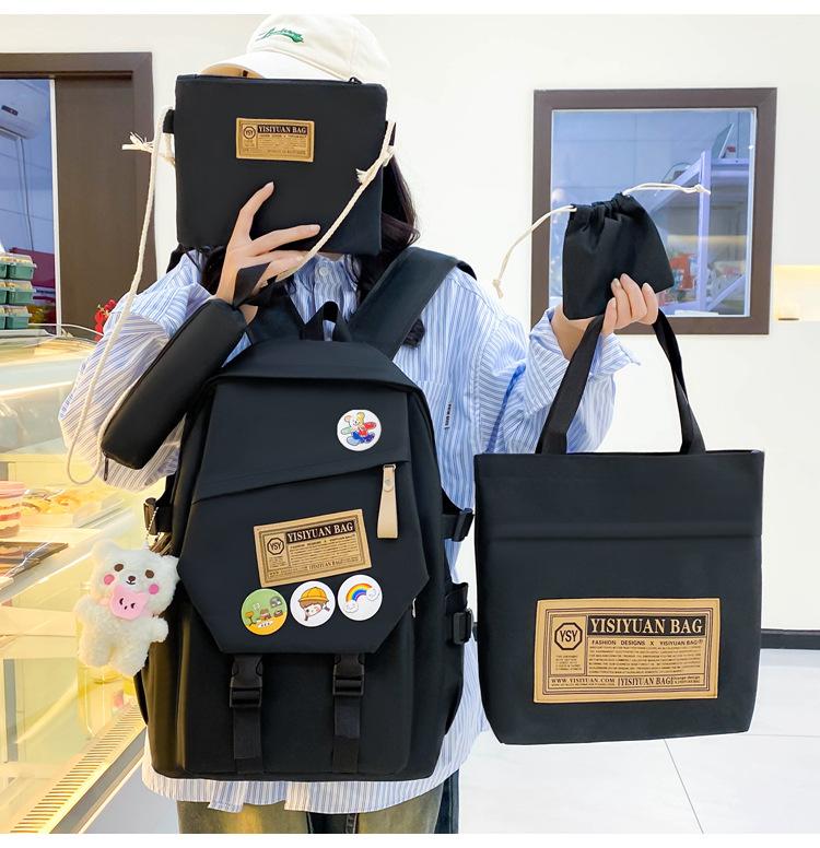 Nueva Mochila Escolar para Estudiante de Secundaria de Nailon Simple de Color Sólido, Mochila de Campus, Juego de Cinco Piezas, Mochila Multifuncional para Tutorías