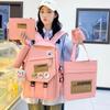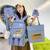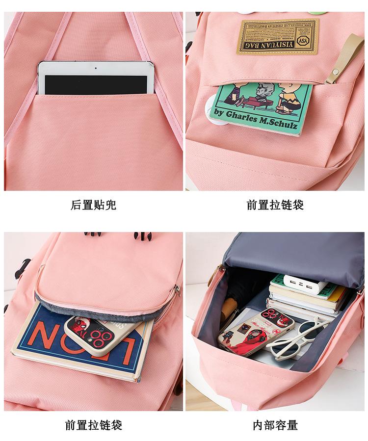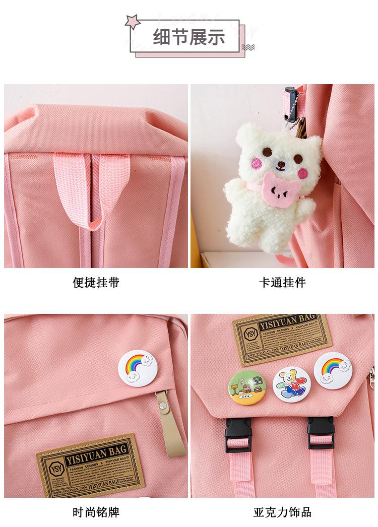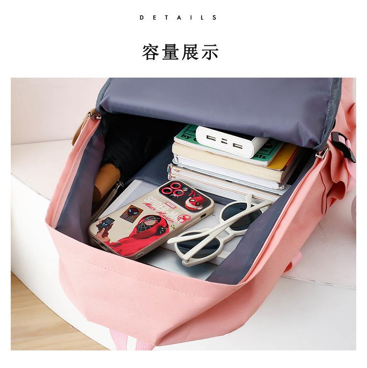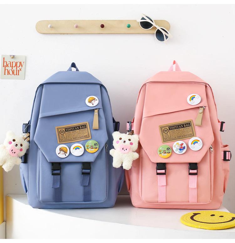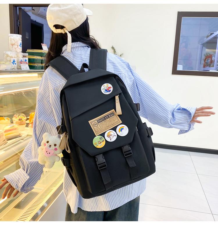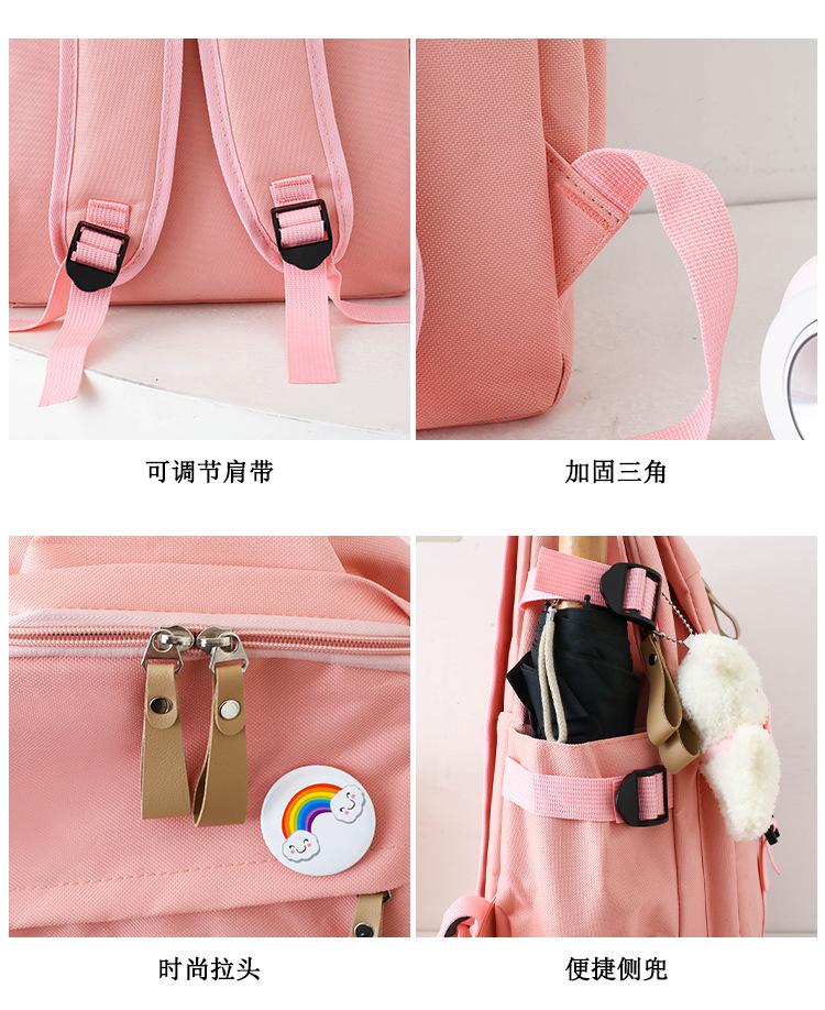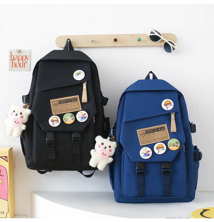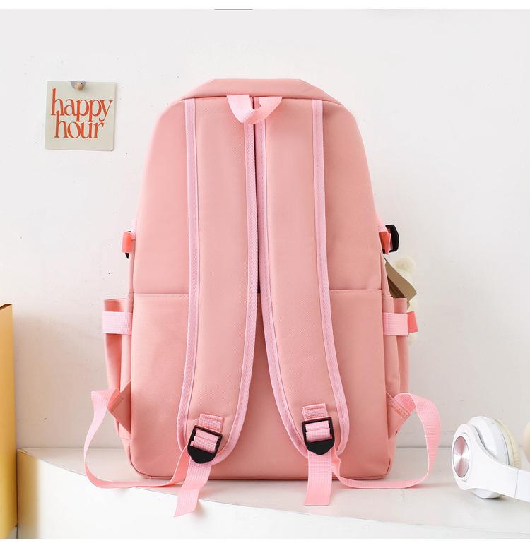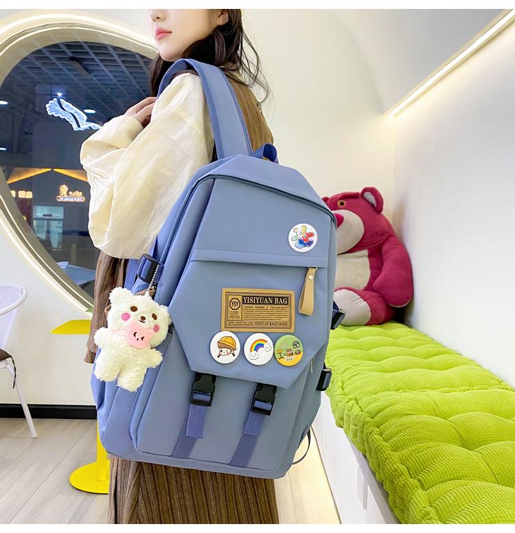 Nueva Mochila Escolar para Estudiante de Secundaria de Nailon Simple de Color Sólido, Mochila de Campus, Juego de Cinco Piezas, Mochila Multifuncional para Tutorías