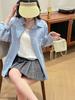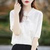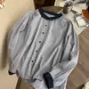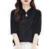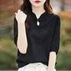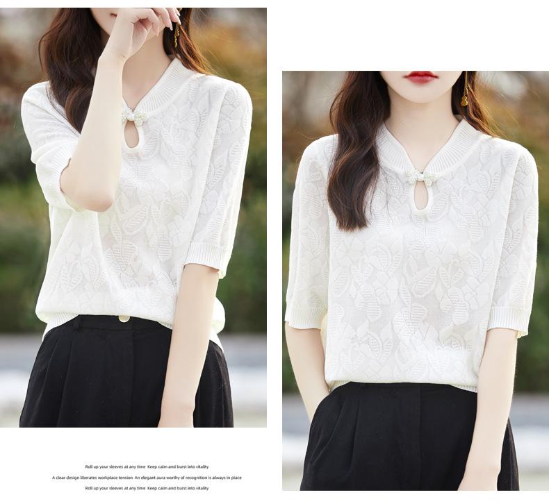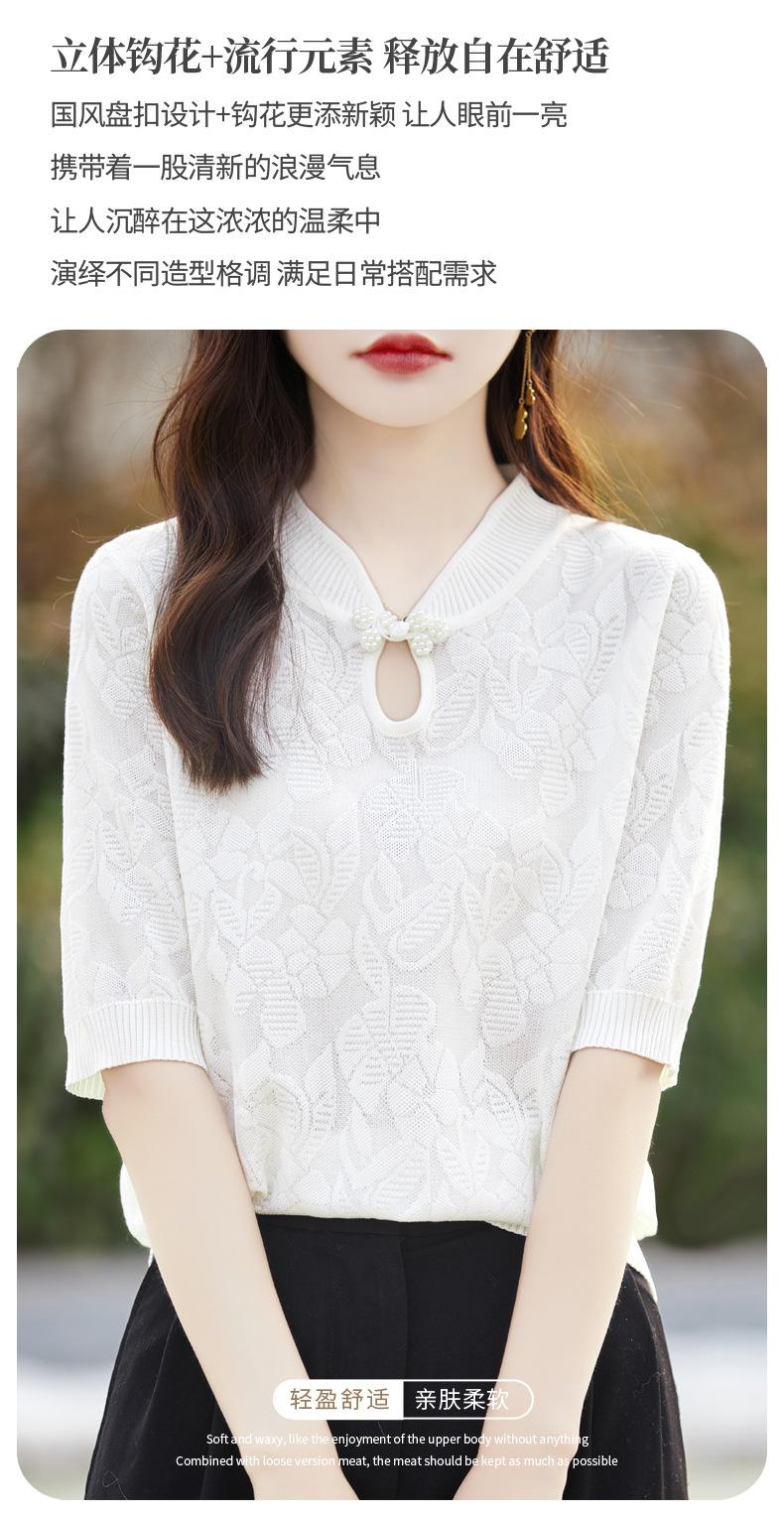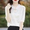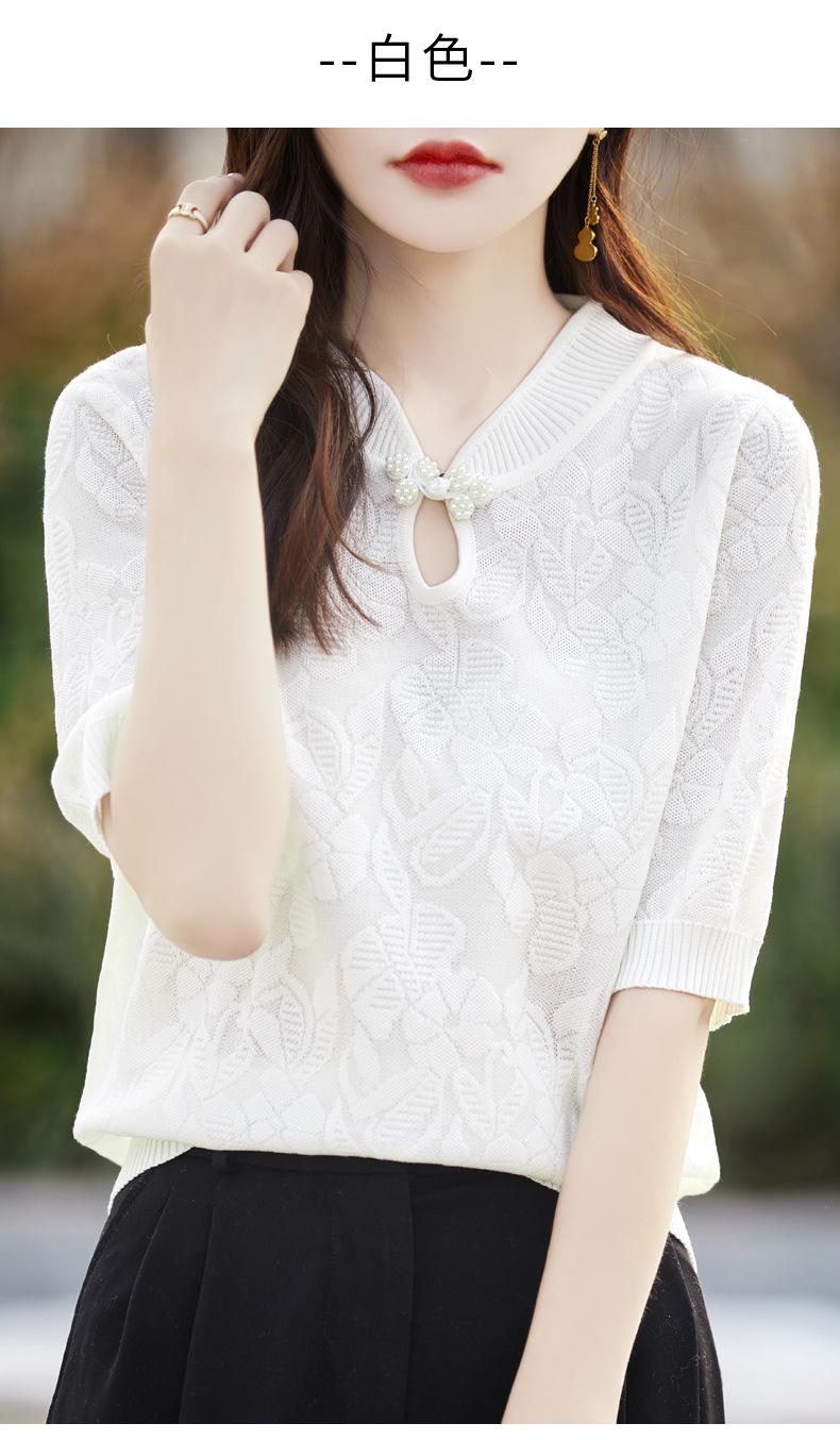 Camiseta de manga corta de lana peinada para mujer, suéter de color liso con hebilla de estilo nacional, top holgado y adelgazante de media manga, novedad de primavera y verano