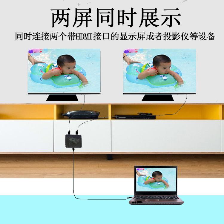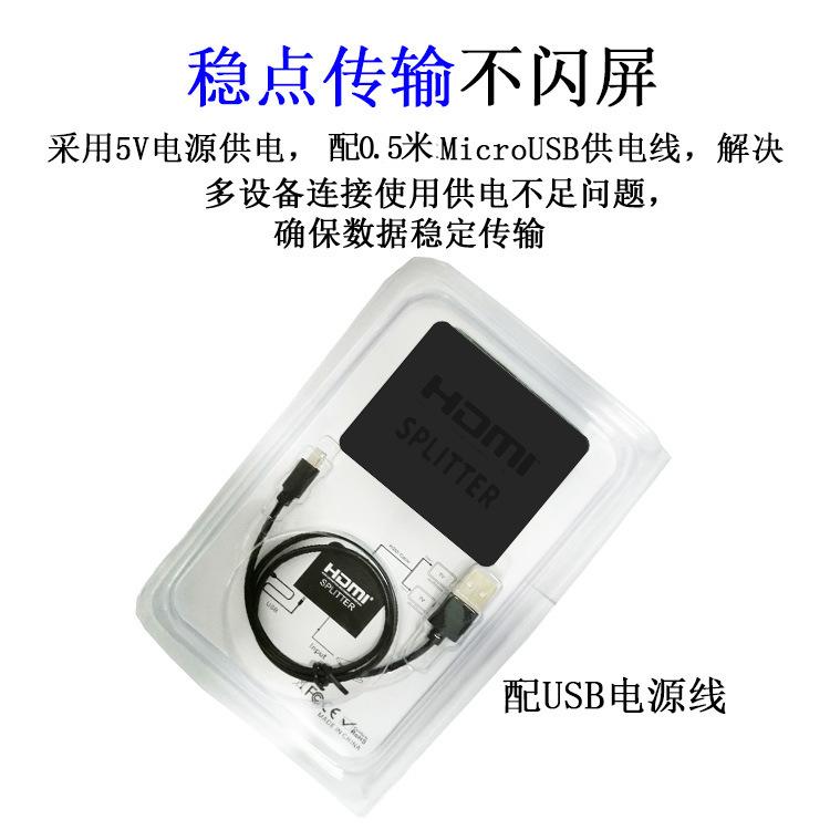 HDMIEl distribuidor permite que un puerto HDMI distribuya dos puertos HDMI de distribuidor de audio y video de alta definición. Puede distribuir la señal HDMI de decodificadores, reproductores de DVD, reproductores D-VHS y otros dispositivos HDTV en dos salidas de señal HDMI consistentes y síncronas. Los usuarios pueden emitir la señal y conectarla a proyectores de alta definición, DLP, televisores LCD de alta definición y otros dispositivos de impacto al mismo tiempo.