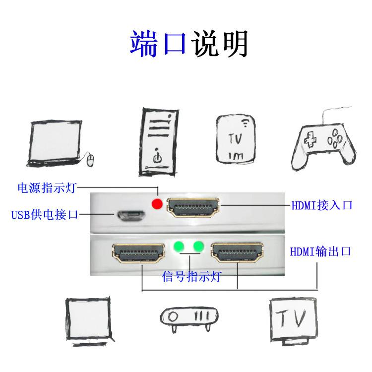 Además de las funciones básicas de un distribuidor HDMI, también tiene una función de amplificación HDMI, que puede extender la señal HDMI de entrada en 30 metros.