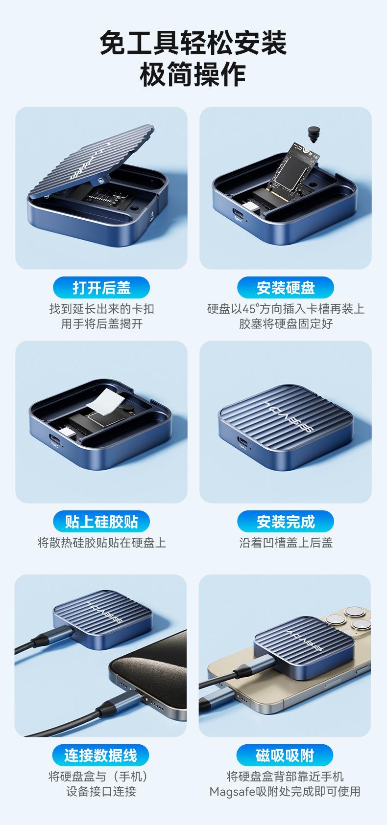 Caja de disco duro 2230 magnética Tipo-C de estado sólido NVMe/M.2 Pingguo 15pr teléfono móvil tableta caja de disco duro