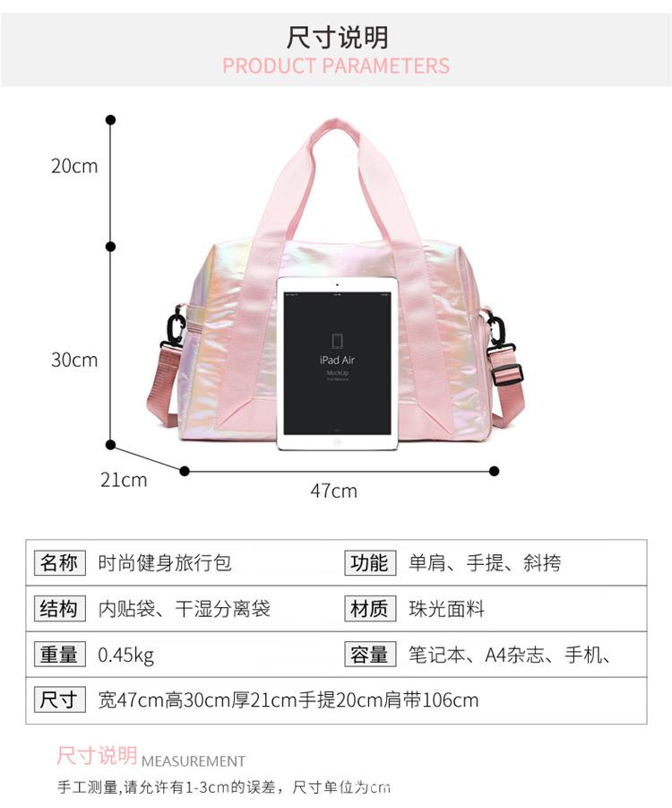 Nueva bolsa de gimnasio de moda, bolsa de viaje con cara brillante, bolsa de equipaje para viajes de corta distancia, bolsa de yoga portátil de gran capacidad, bolsa de hombro