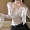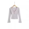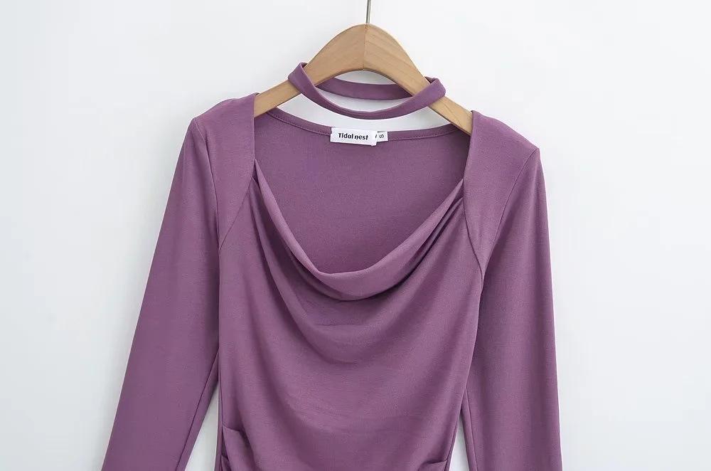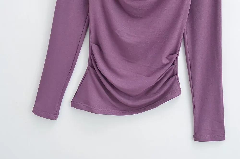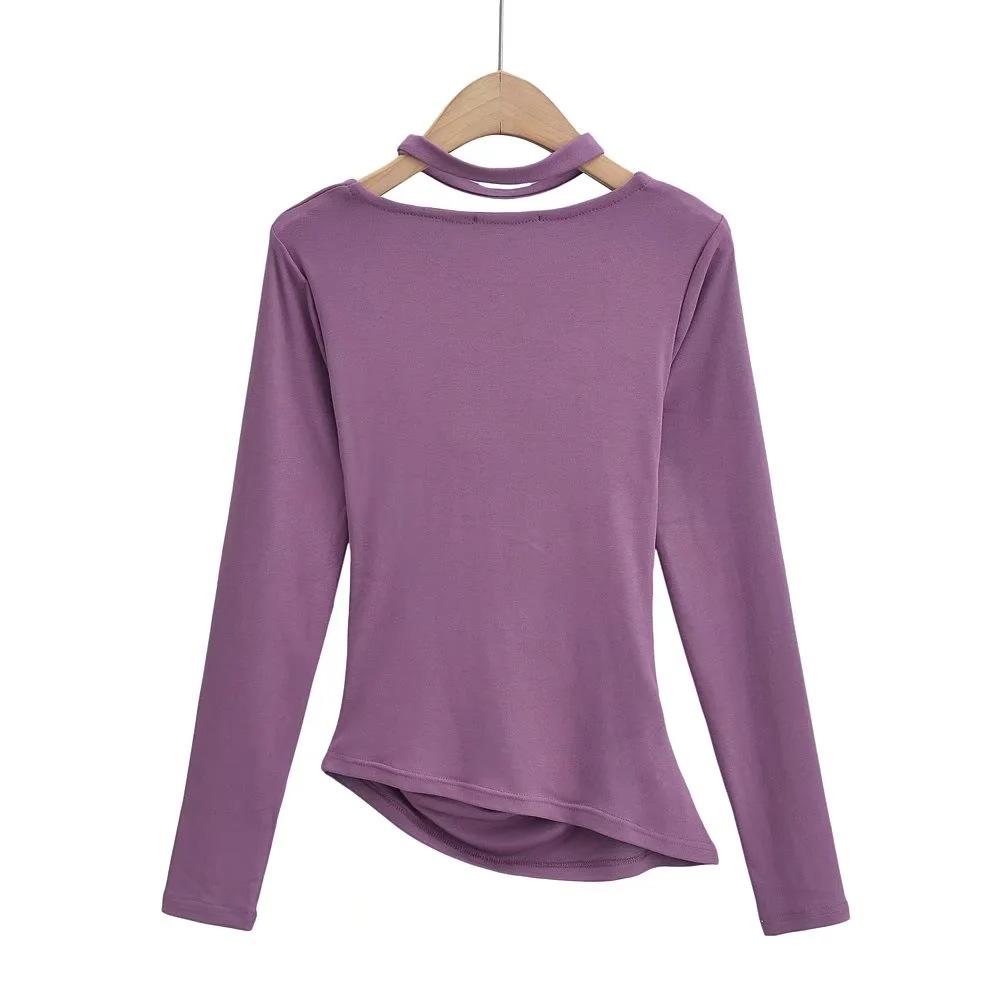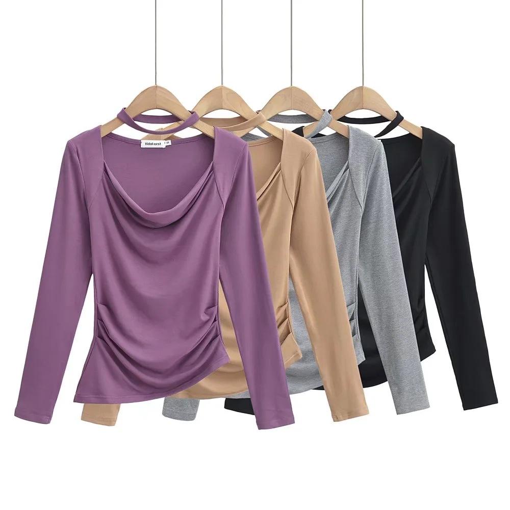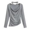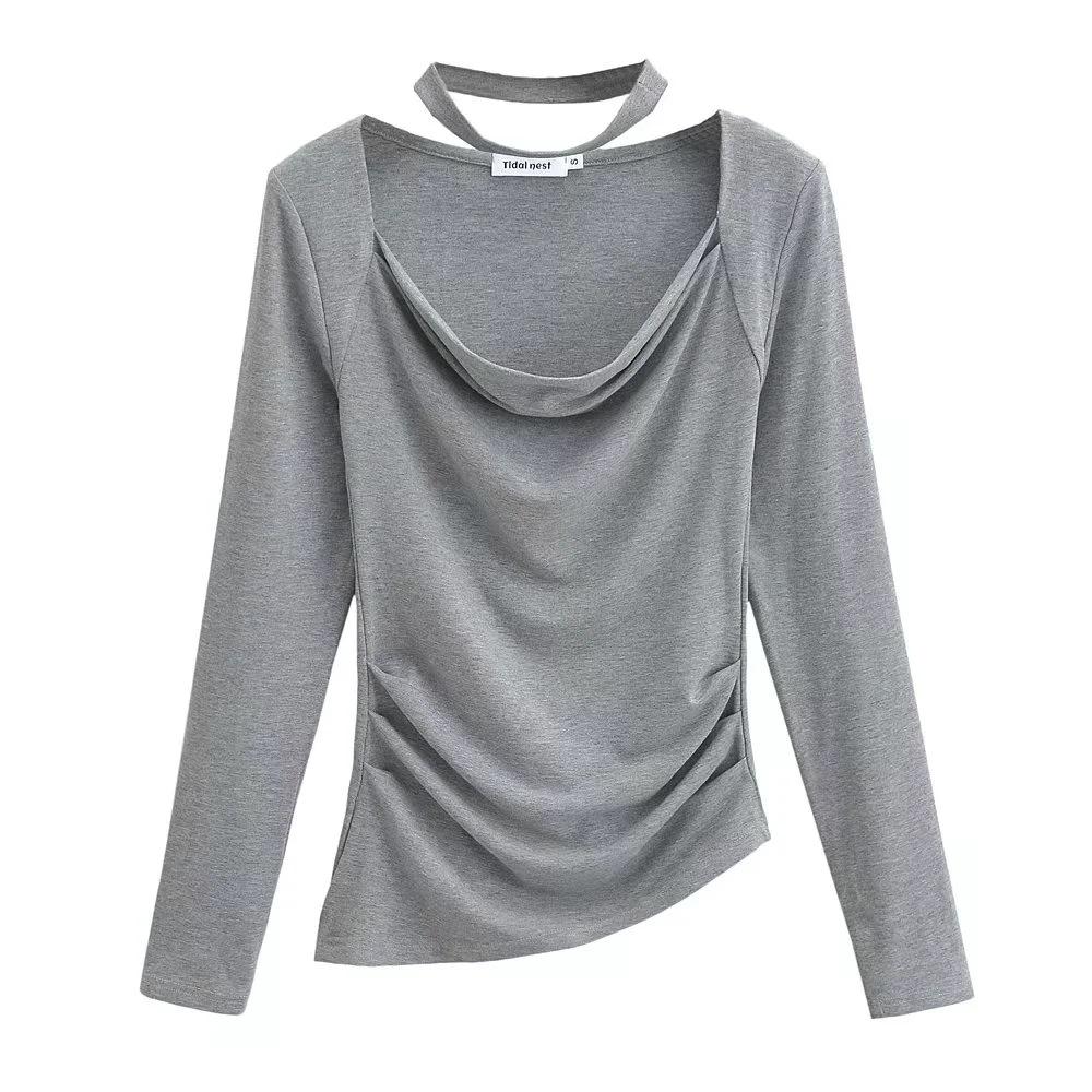 Camiseta de cuello alto estilo Spice Girl Pure Desire, nueva primavera 2023, pequeña, sexy, con un solo hombro, escote en V, manga larga