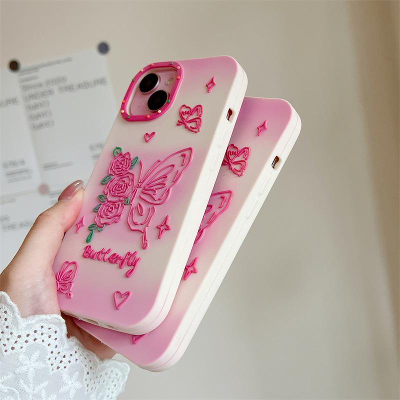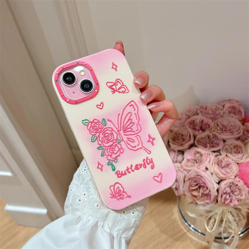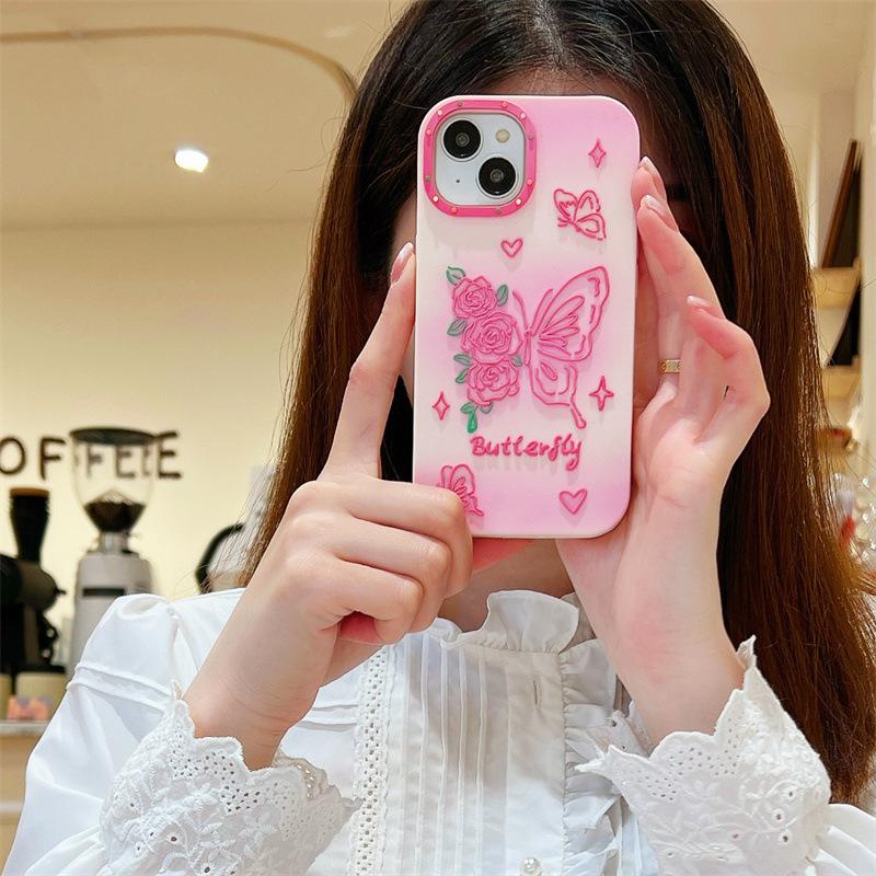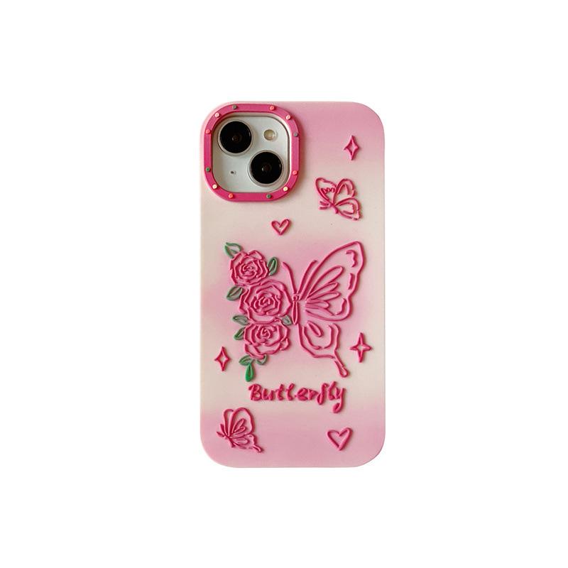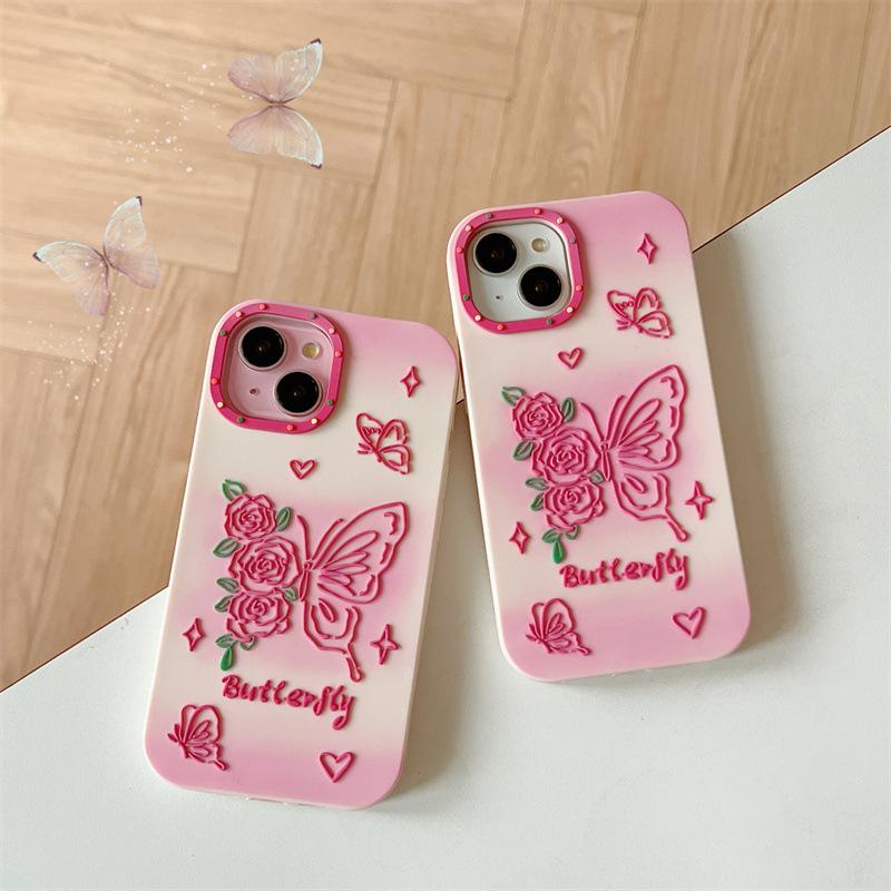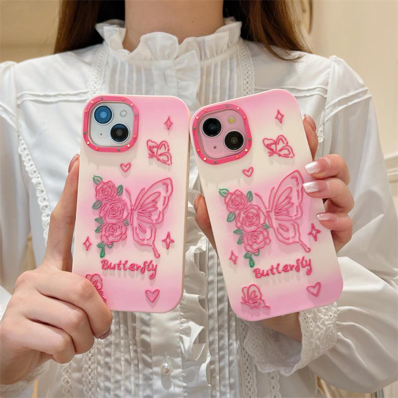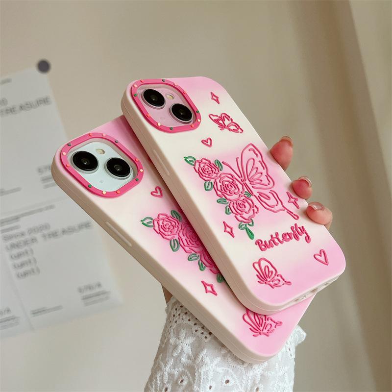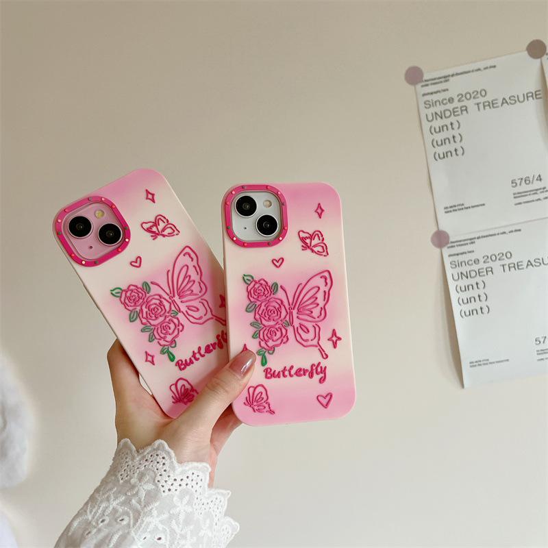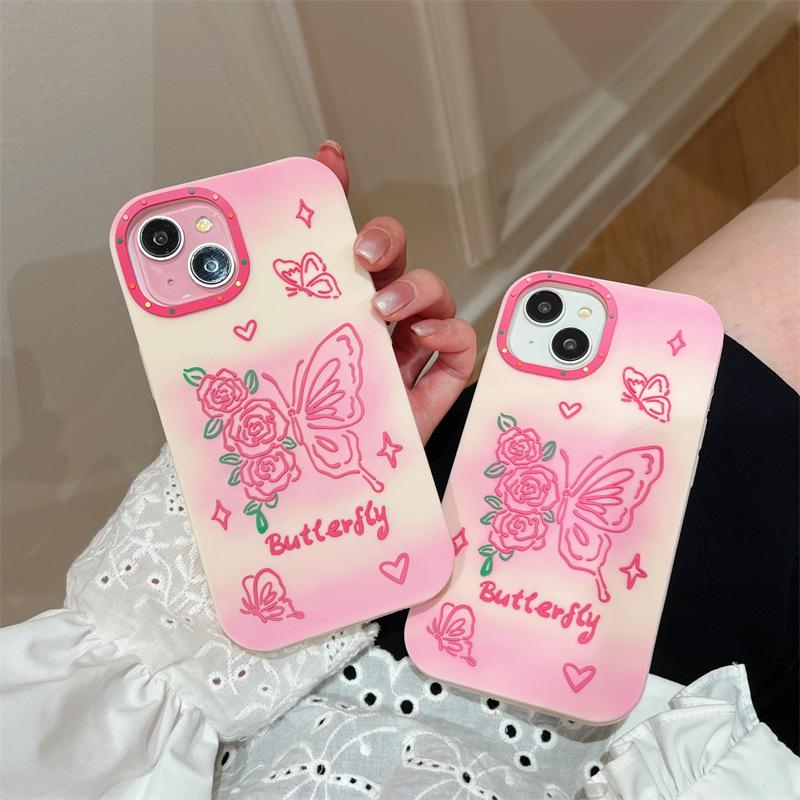 Funda con diseño de mariposa rosa coreana para iPhone 14 Pro Max, anticaída, para Apple 15 Pro Max, 13/12 Pro Max, suave, para mujer de 11 pulgadas